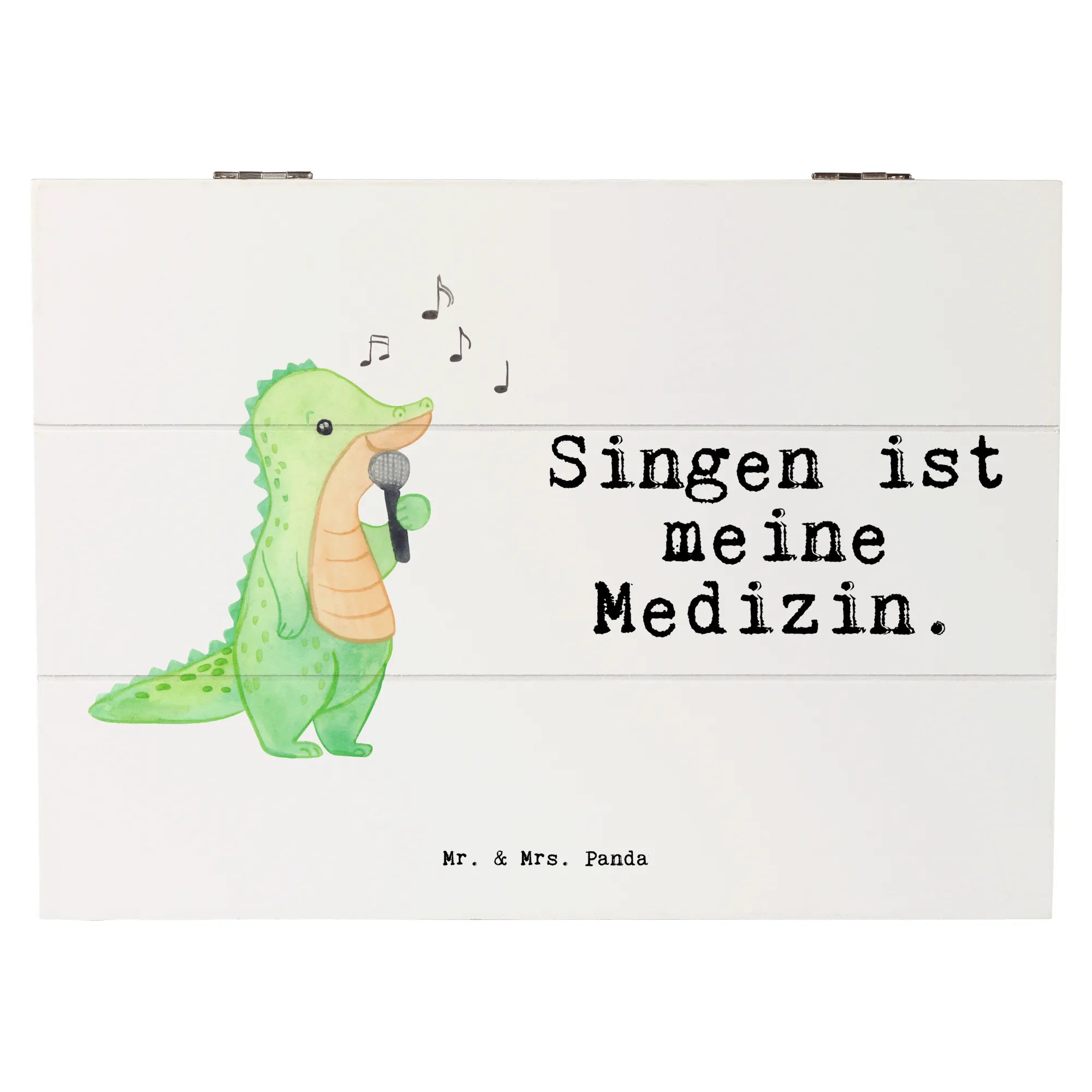 Die wunderschöne Holzkiste "Krokodil Singen Medizin" von Mr. & Mrs. Panda ist das perfekte Geschenk für jeden Hobbysänger und Musikliebhaber. Jedes Detail dieser einzigartigen Kiste wurde mit viel Liebe zum Detail von Mrs. Panda handgezeichnet, und der Spruch "Singen ist meine Medizin" bringt die Leidenschaft für das Singen außergewöhnlich zum Ausdruck.