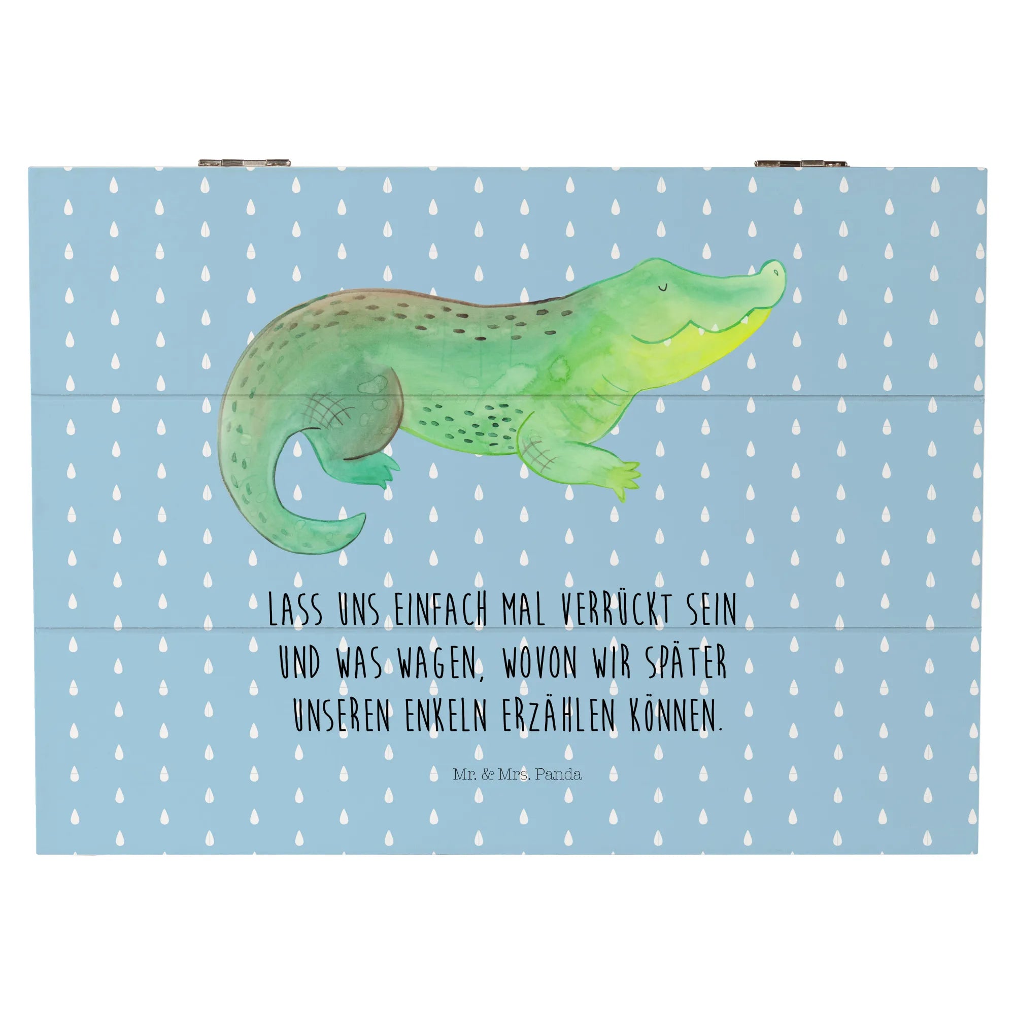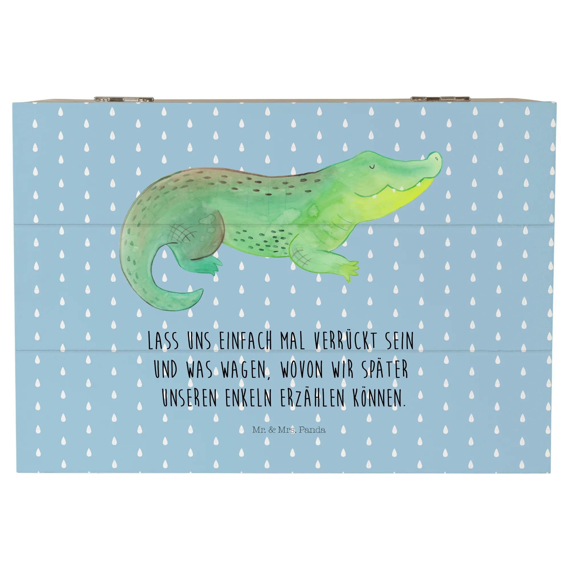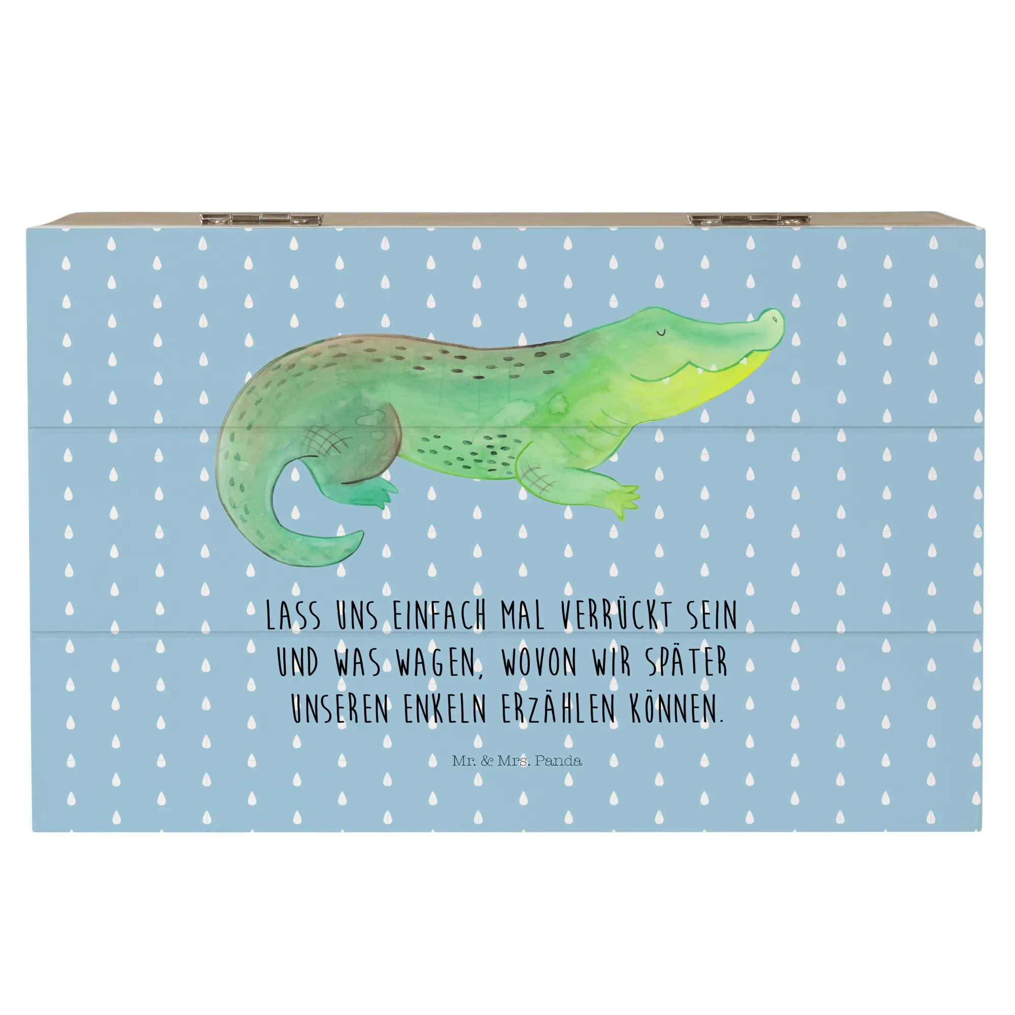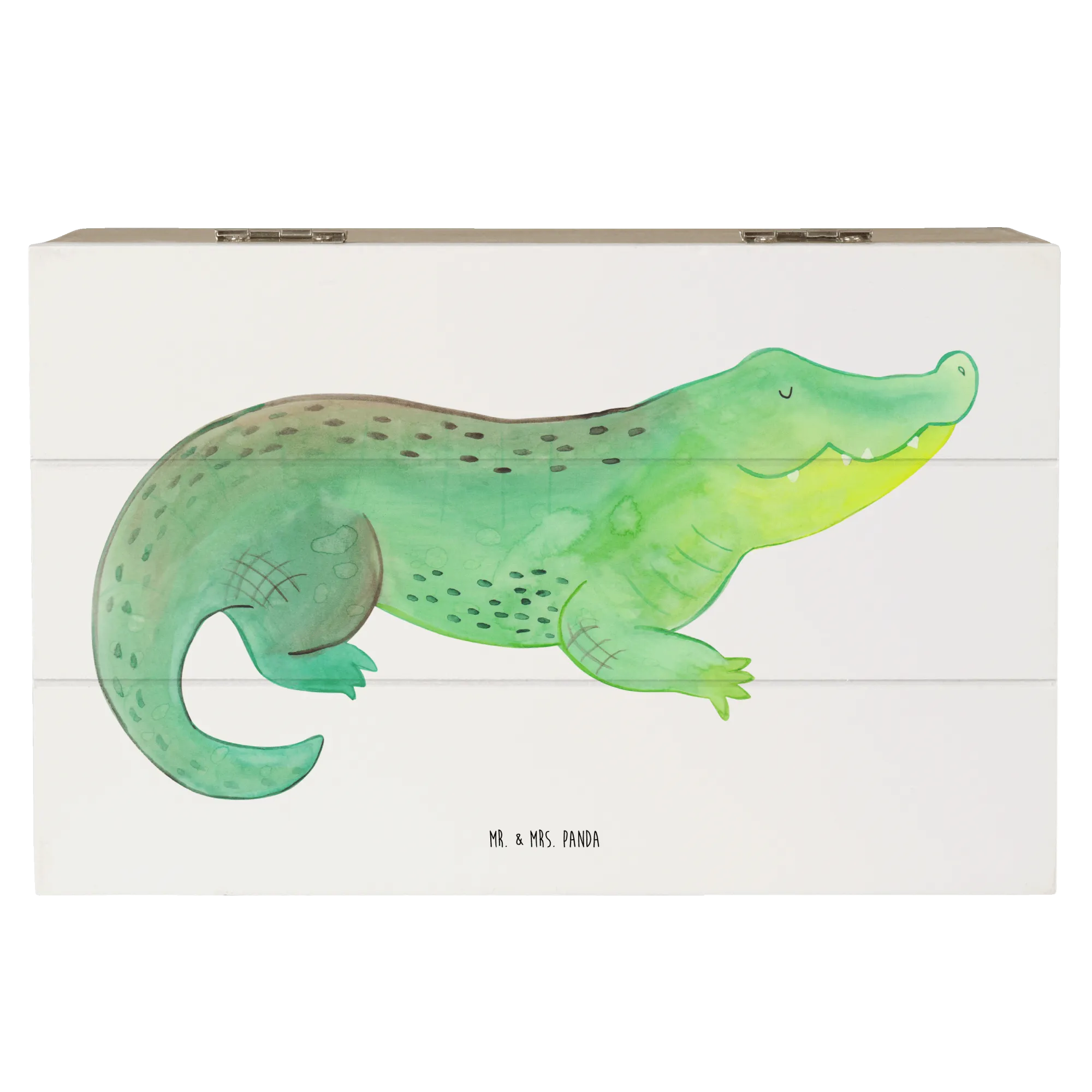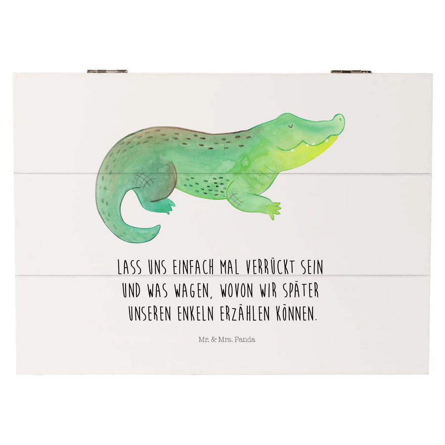 Entdecke die bezaubernde Holzkiste mit dem süßen Krokodil-Motiv aus der Meerestiere-Kollektion von Mr. & Mrs. Panda! Diese wunderschöne Holzkiste ist nicht nur ein toller Aufbewahrungsort für all deine Schätze, sondern auch ein wunderbares Geschenk für die speziellen Menschen in deinem Leben.