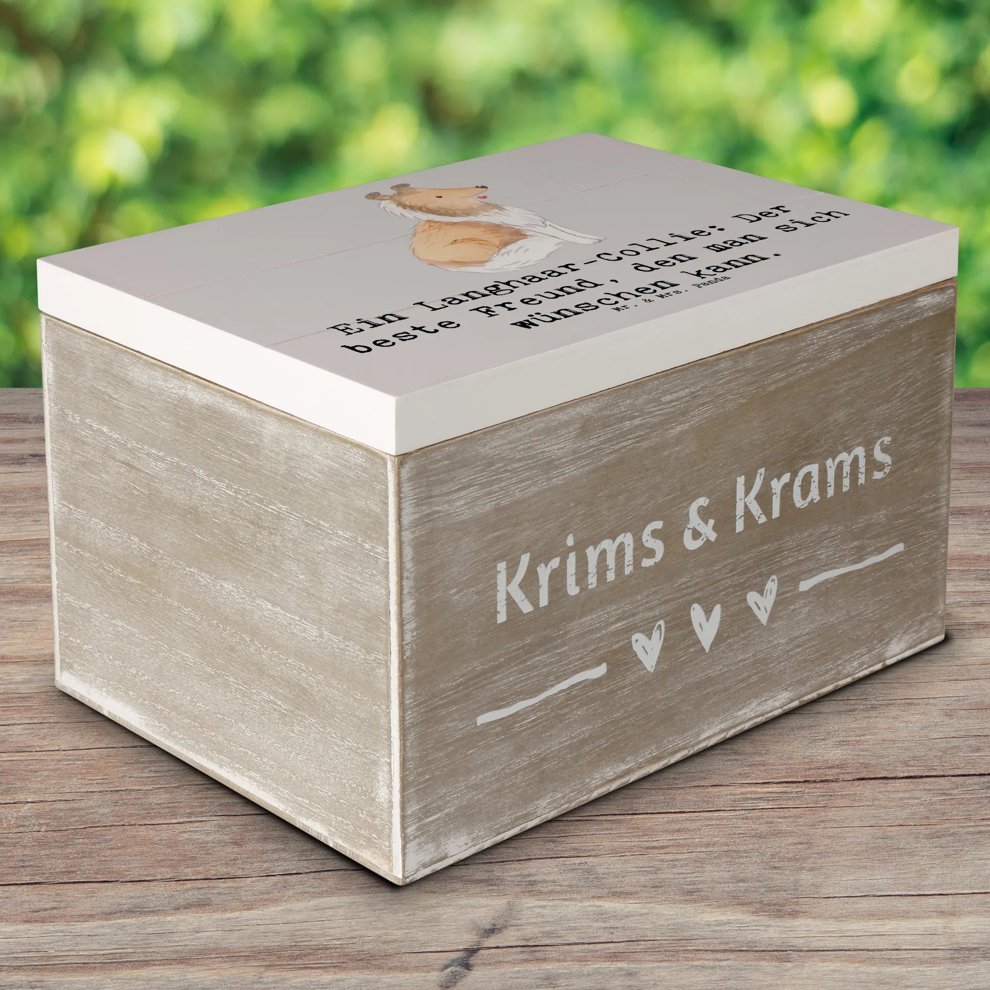 Die Kiste wird mit dem herzerwärmenden Spruch "Ein Langhaar-Collie: Der beste Freund, den man sich wünschen kann." bedruckt, was sie zu einem unverwechselbaren Hingucker macht!