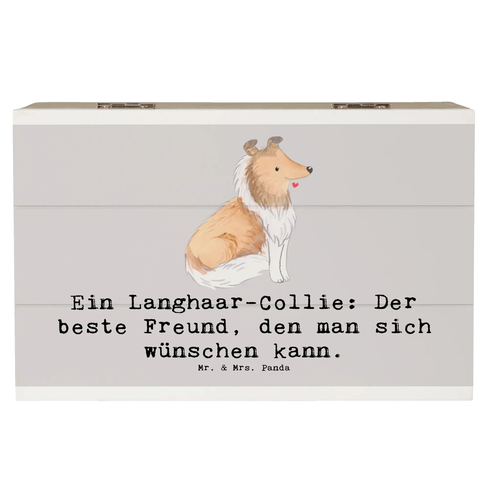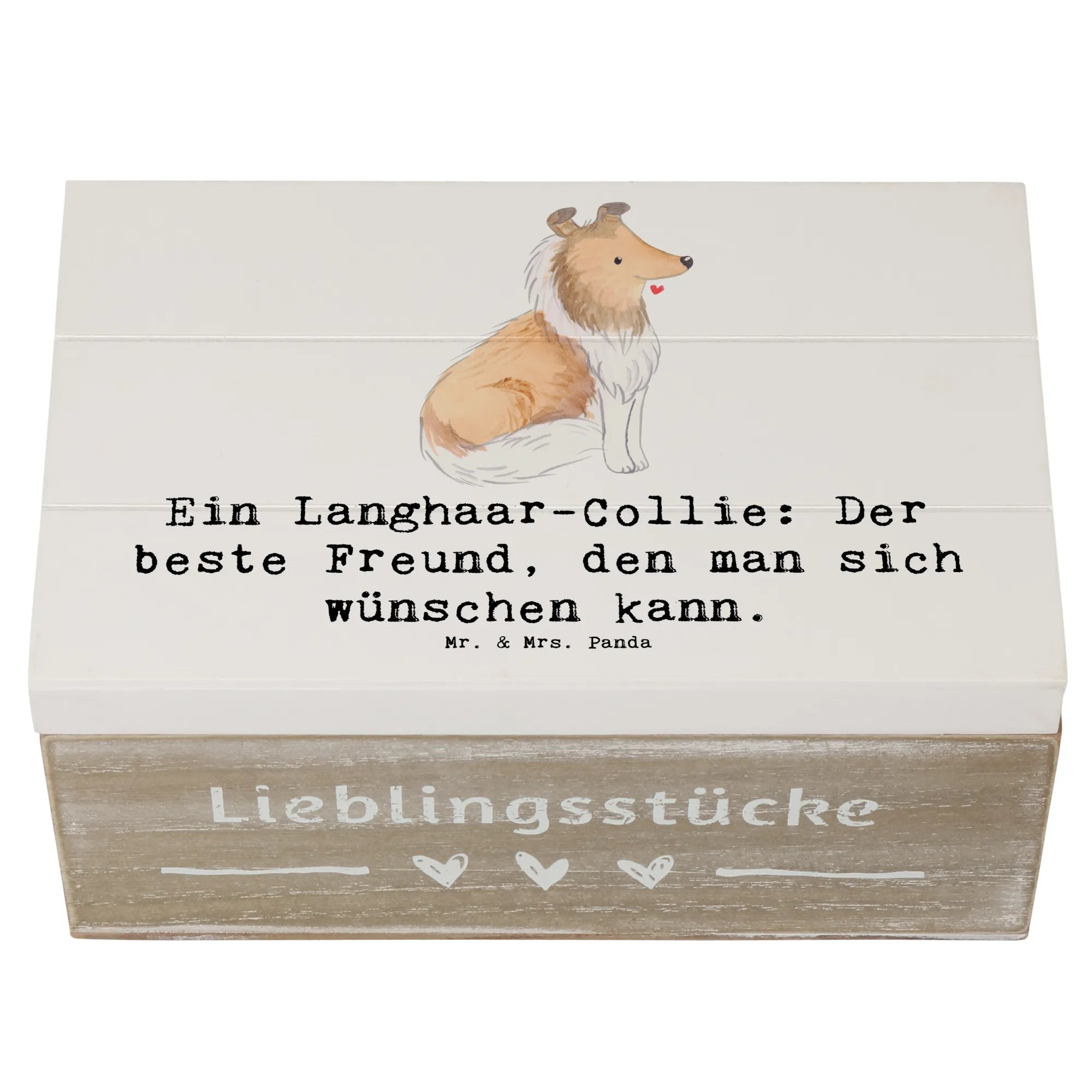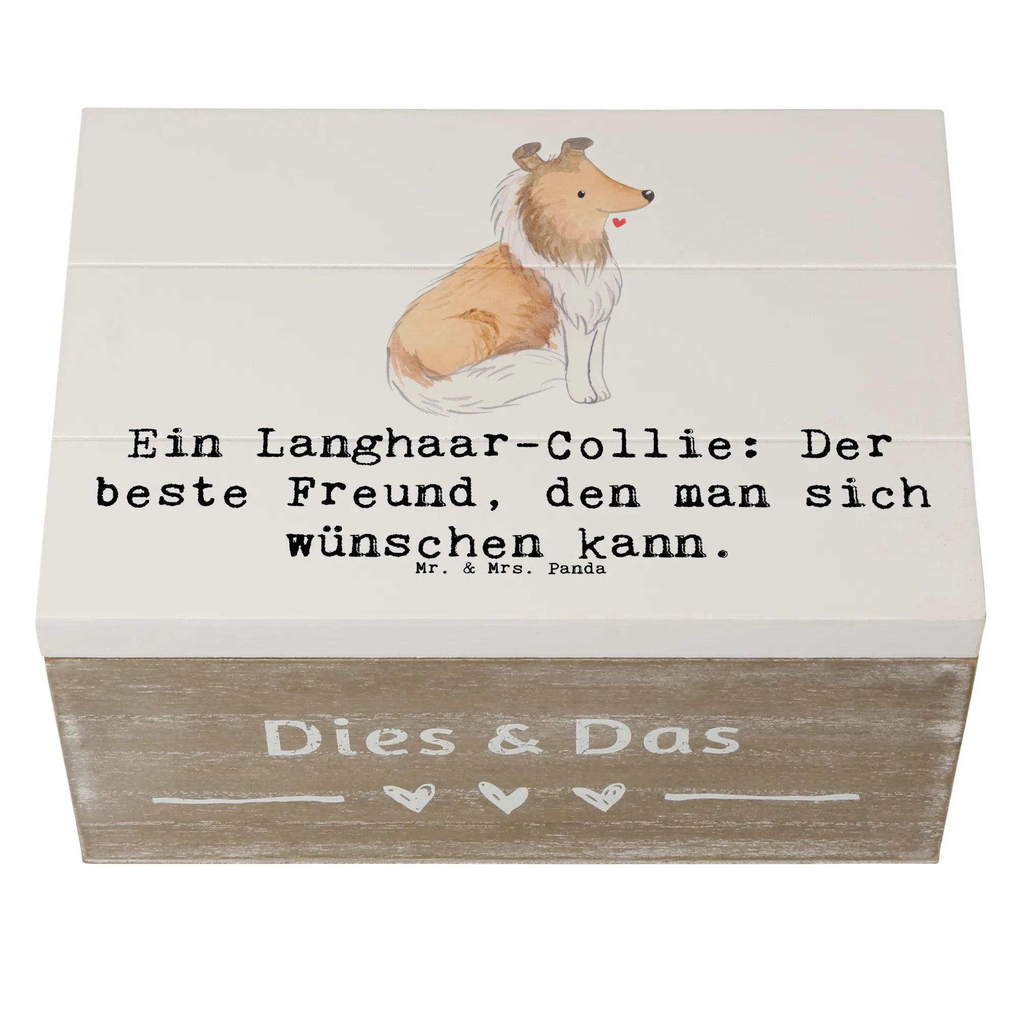 Entdecke die wunderschöne Holzkiste von Mr. & Mrs. Panda, die mit einem liebevollen Motiv des Langhaar-Collies verziert ist! Diese zauberhafte Kiste ist nicht nur ein praktischer Aufbewahrungsort für all deine Schätze, sondern auch ein hervorragendes Geschenk für jeden Hundefan.