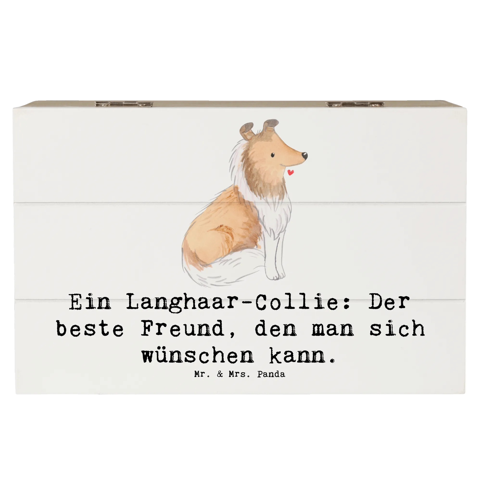 Die wunderschöne Holzkiste von Mr. & Mrs. Panda mit dem niedlichen Motiv des Langhaar-Collies ist das perfekte Geschenk für Hundeliebhaber und Hundefans! Diese einzigartige Erinnerungskiste ist nicht nur praktisch, sondern auch ein echter Hingucker.