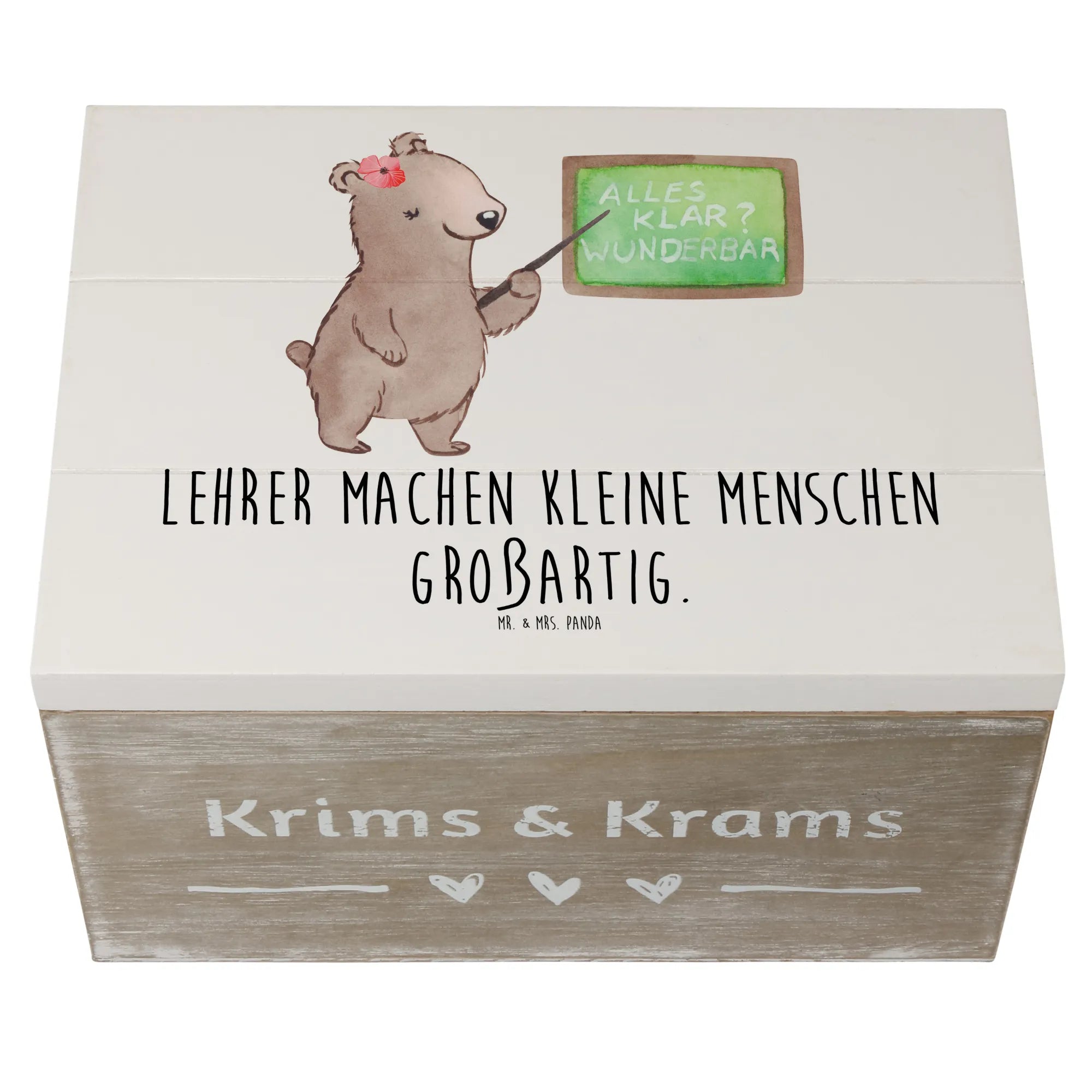 Entdecke die bezaubernde Holzkiste von Mr. & Mrs. Panda mit dem wunderschönen Motiv "Lehrer machen kleine Menschen großartig." aus der besonderen "Danke"-Kollektion! Diese hübsche Schatzkiste ist nicht nur ein praktischer Aufbewahrungsort, sondern auch ein liebevolles Geschenk, um deine Dankbarkeit auszudrücken.