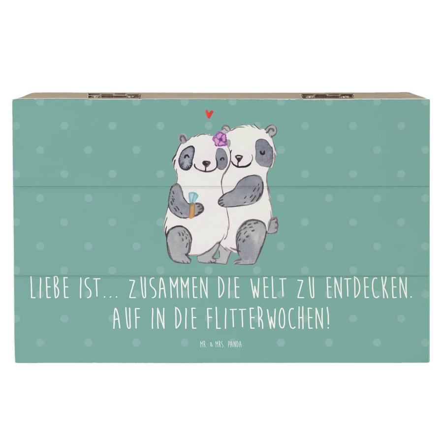 Die wunderschöne Holzkiste von Mr. & Mrs. Panda ist das perfekte Geschenk für frischvermählte Paare, die ihre unvergesslichen Momente aus den Flitterwochen sicher aufbewahren möchten. Diese liebevoll gestaltete Erinnerungskiste, bedruckt mit dem entzückenden Motiv "Flitterwochen" und dem romantischen Slogan "Liebe ist... zusammen die Welt zu entdecken. Auf in die Flitterwochen!", ist nicht nur praktisch, sondern auch ein zauberhaftes Dekorationsstück.