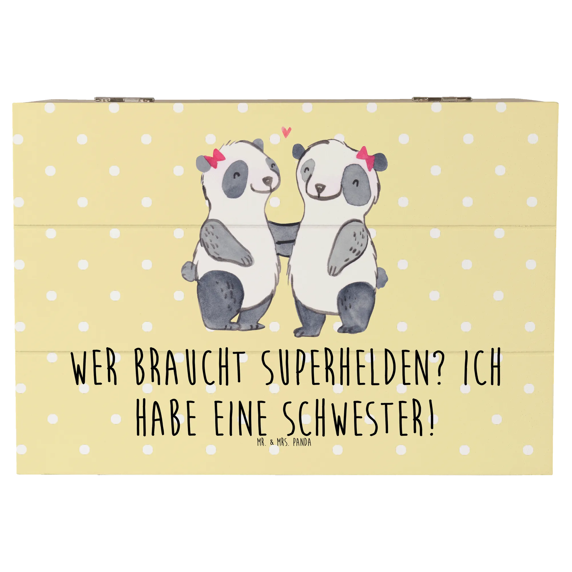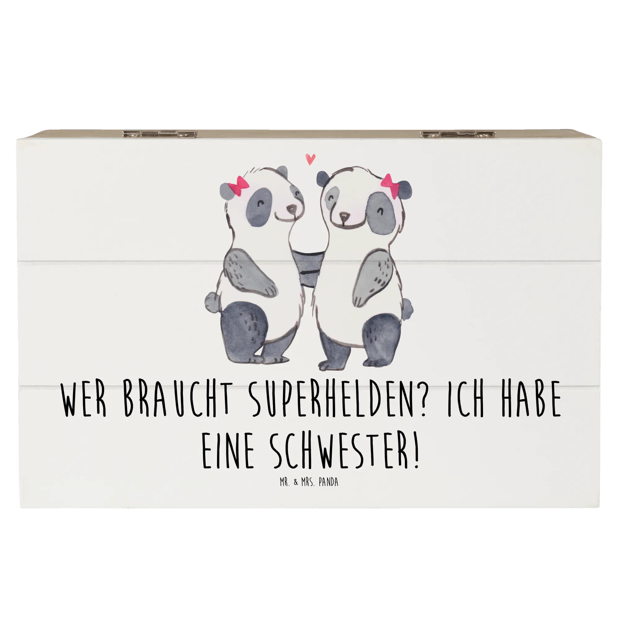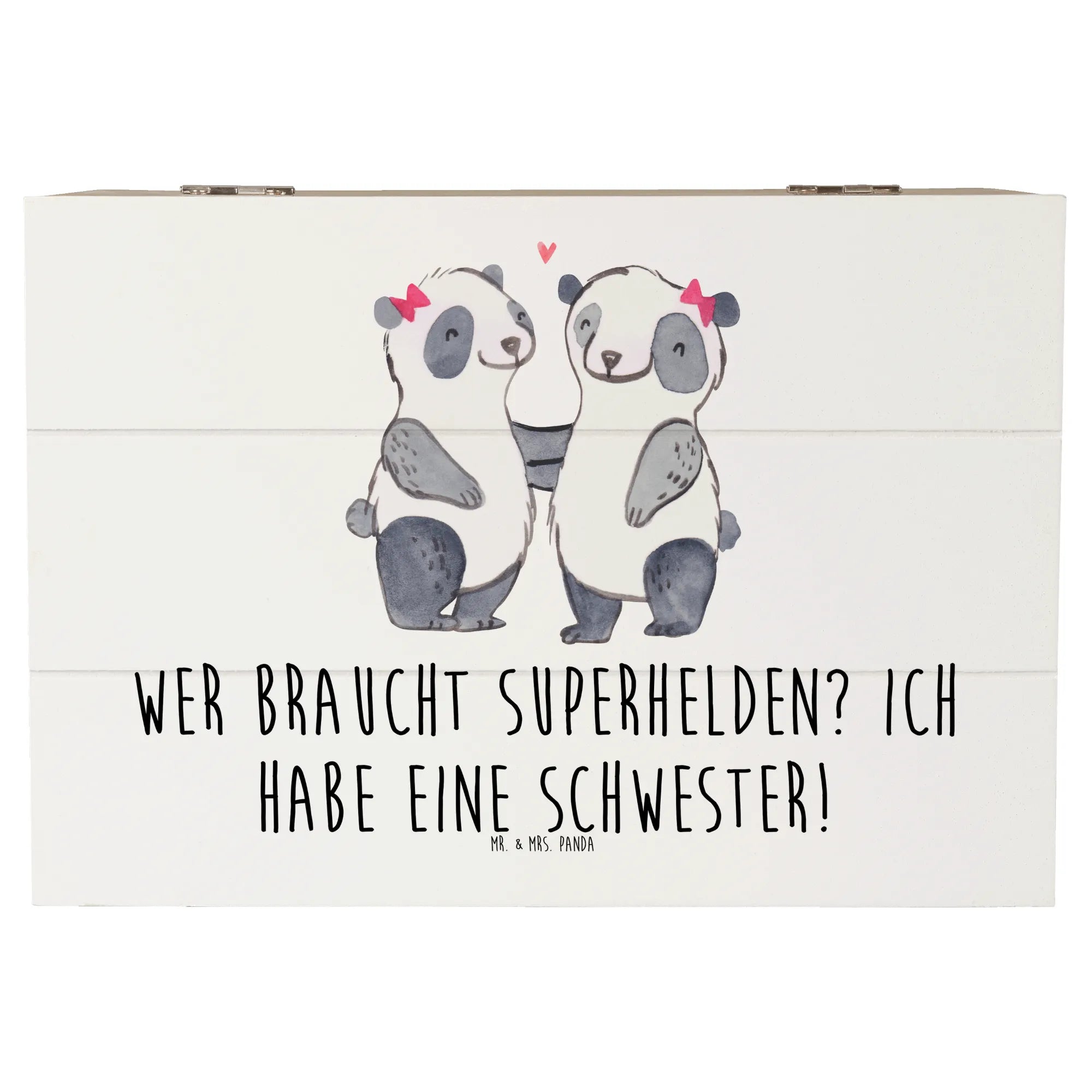 Die wunderschöne Holzkiste von Mr. & Mrs. Panda mit dem liebevollen Motiv "Wer braucht Superhelden? Ich habe eine Schwester!" ist das perfekte Geschenk für alle, die eine besondere Beziehung zu ihrer Schwester haben. Diese Erinnerungskiste ist nicht nur ein eleganter Aufbewahrungsort für deine wertvollsten Schätze, sondern auch ein wunderbares Geschenk, das deine Zuneigung und Wertschätzung zeigt. Egal ob zum Geburtstag, zu Weihnachten oder einfach als kleine Aufmerksamkeit – diese Schatzkiste bringt Freude und ein Lächeln ins Gesicht.