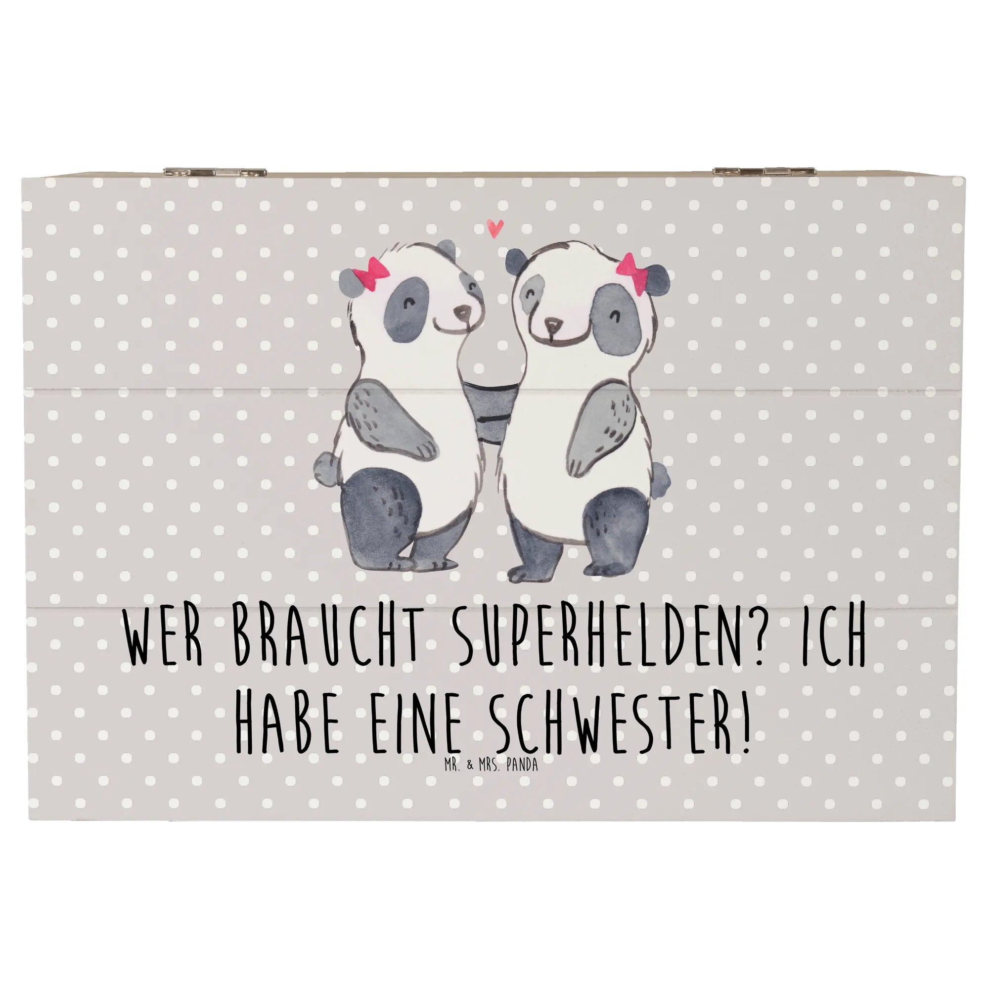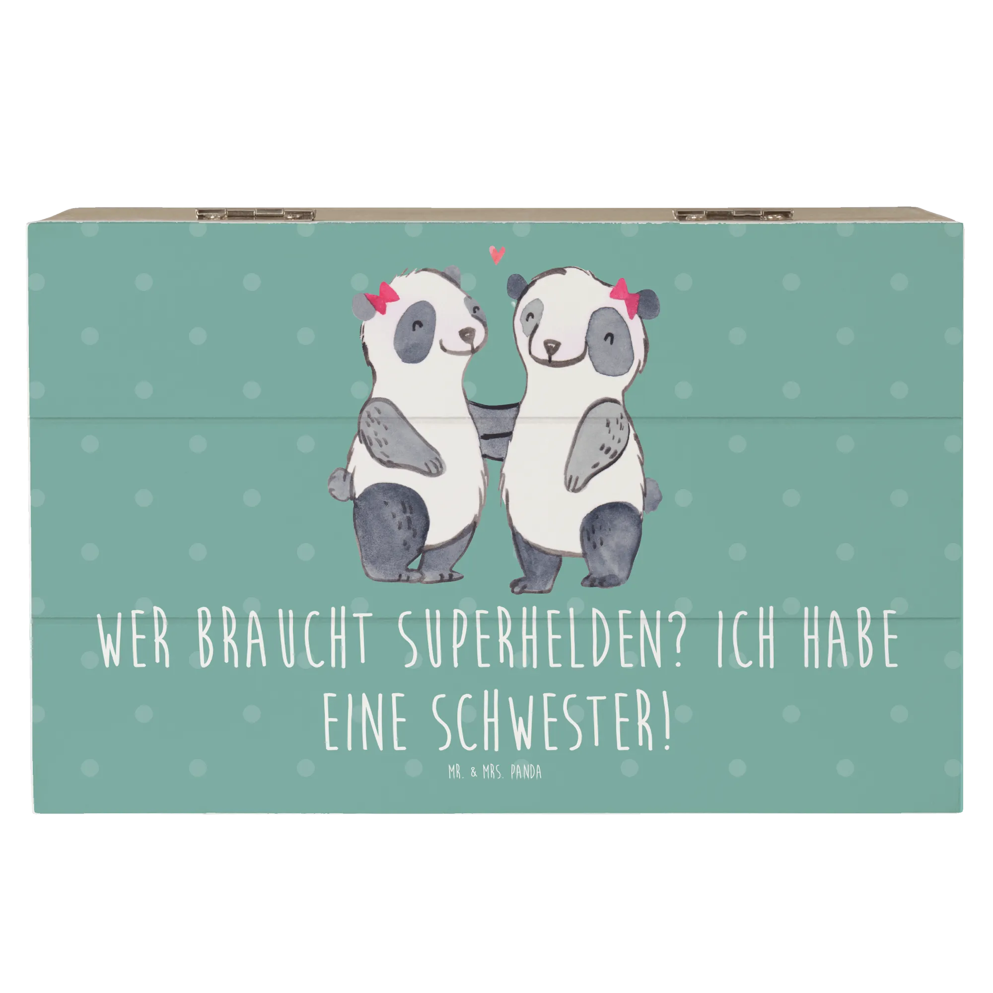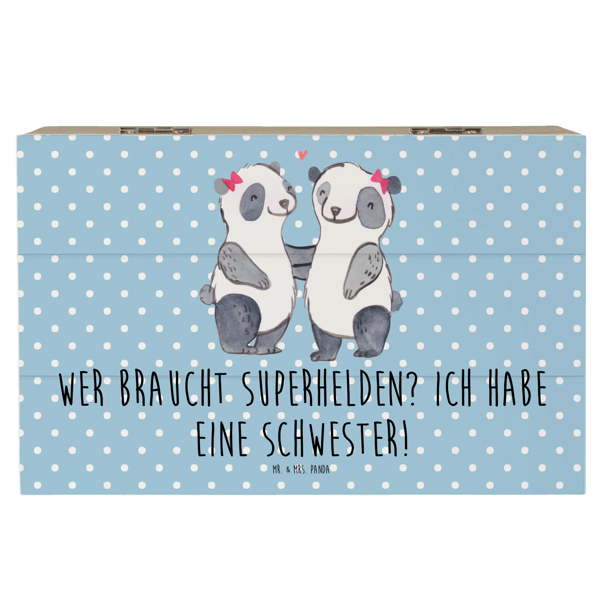 Die wunderschöne Holzkiste von Mr. & Mrs. Panda mit dem liebevollen Motiv "Wer braucht Superhelden? Ich habe eine Schwester!" ist das perfekte Geschenk für alle, die eine besondere Beziehung zu ihrer Schwester haben. Diese Erinnerungskiste ist nicht nur ein eleganter Aufbewahrungsort für deine wertvollsten Schätze, sondern auch ein wunderbares Geschenk, das deine Zuneigung und Wertschätzung zeigt. Egal ob zum Geburtstag, zu Weihnachten oder einfach als kleine Aufmerksamkeit – diese Schatzkiste bringt Freude und ein Lächeln ins Gesicht.