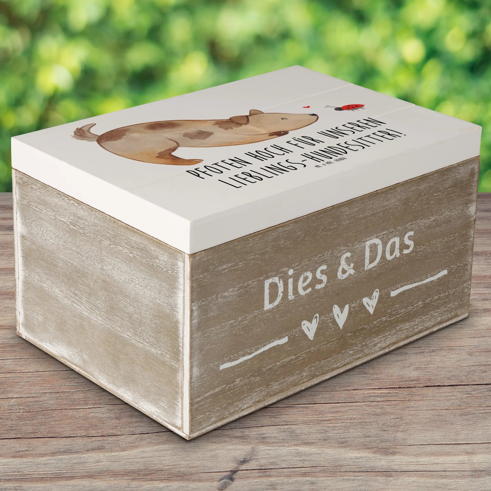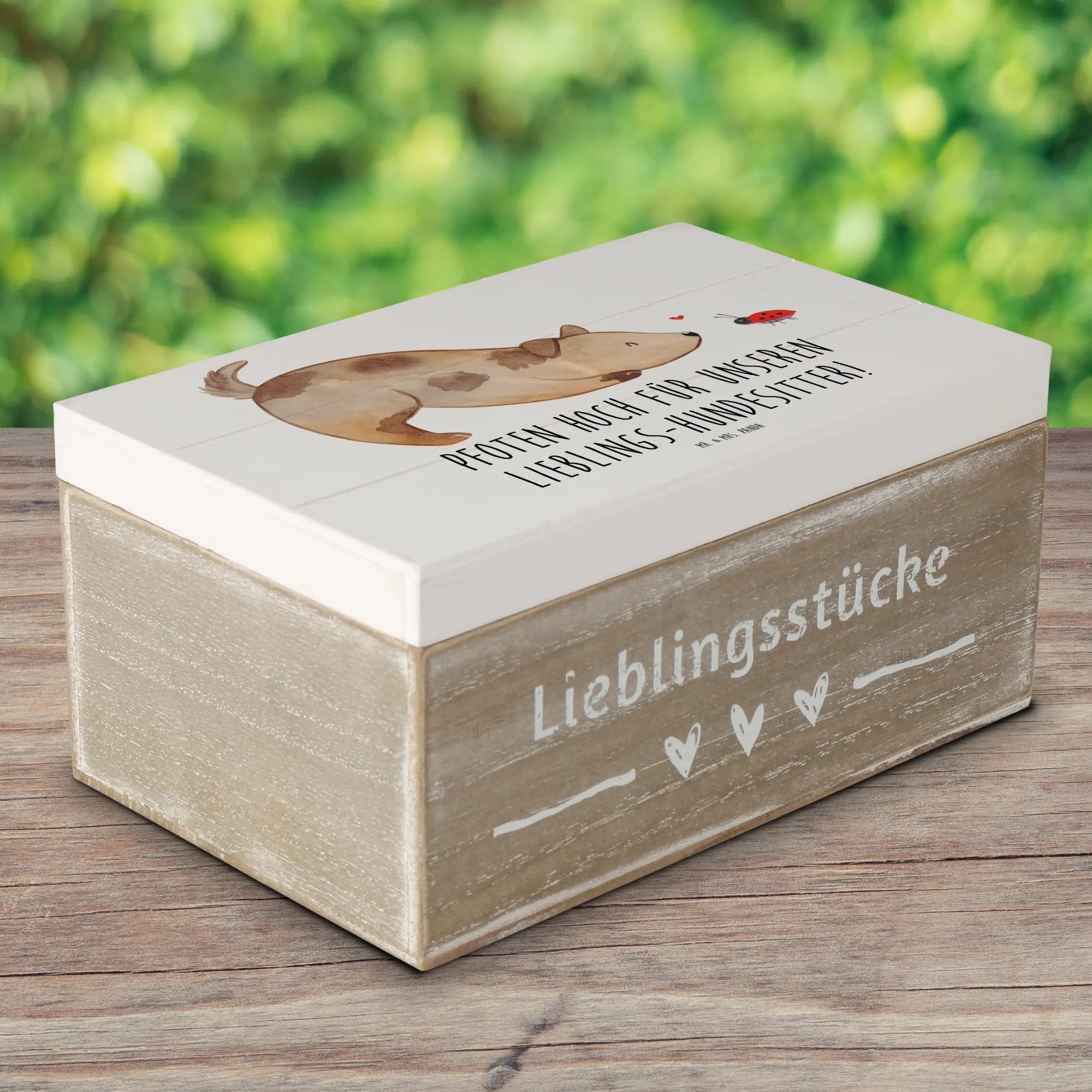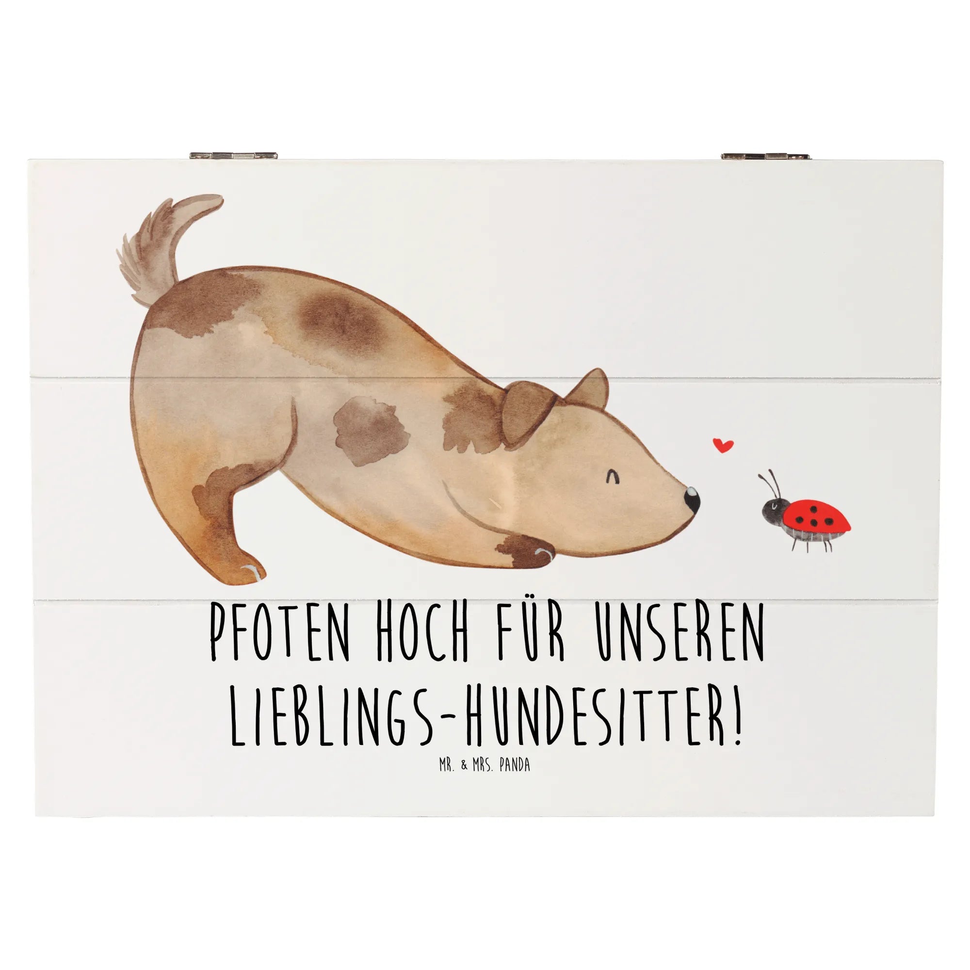 Die wunderschöne Holzkiste von Mr. & Mrs. Panda mit dem Motiv "Pfoten hoch für unseren Lieblings-Hundesitter!" ist das ideale Geschenk, um Deiner Dankbarkeit Ausdruck zu verleihen.