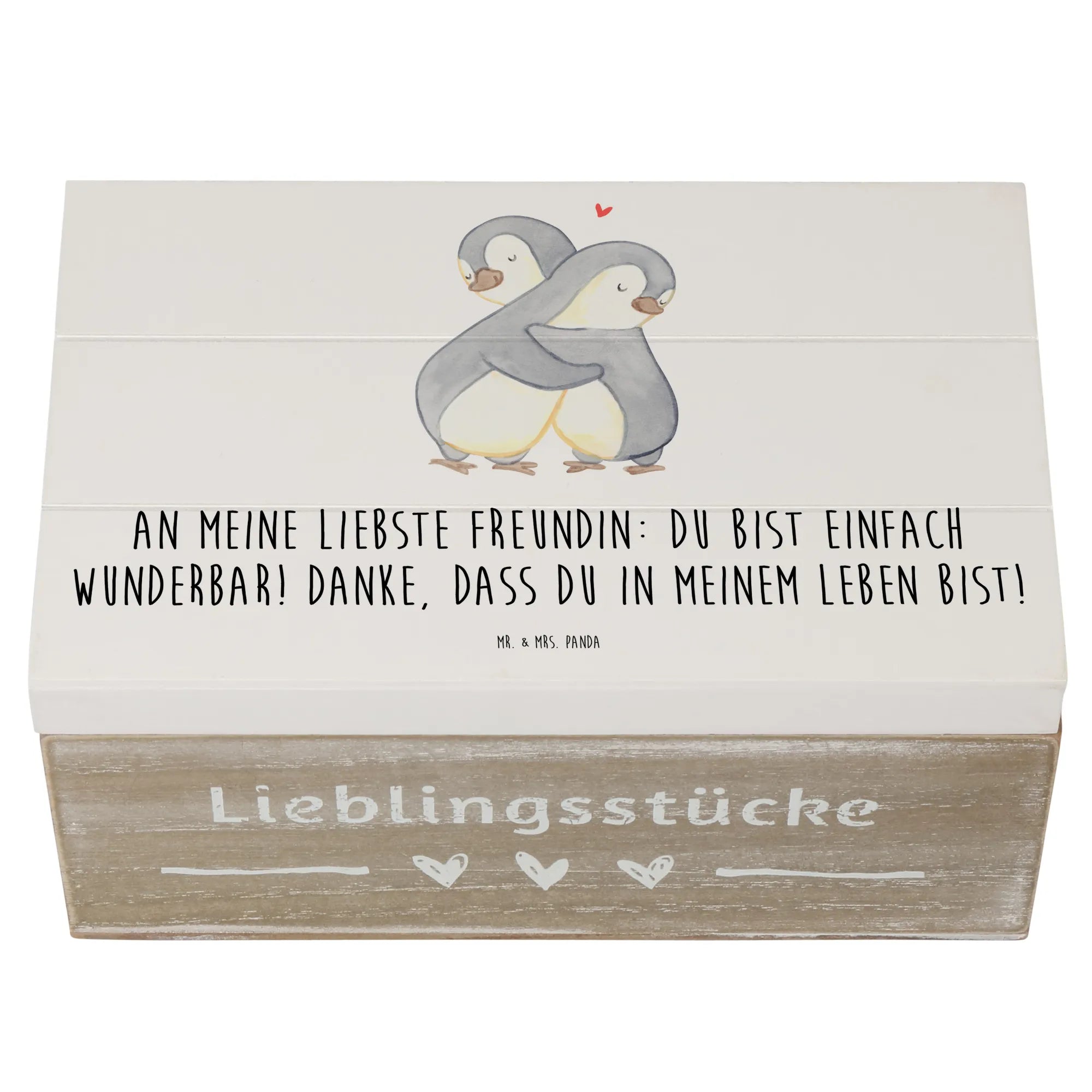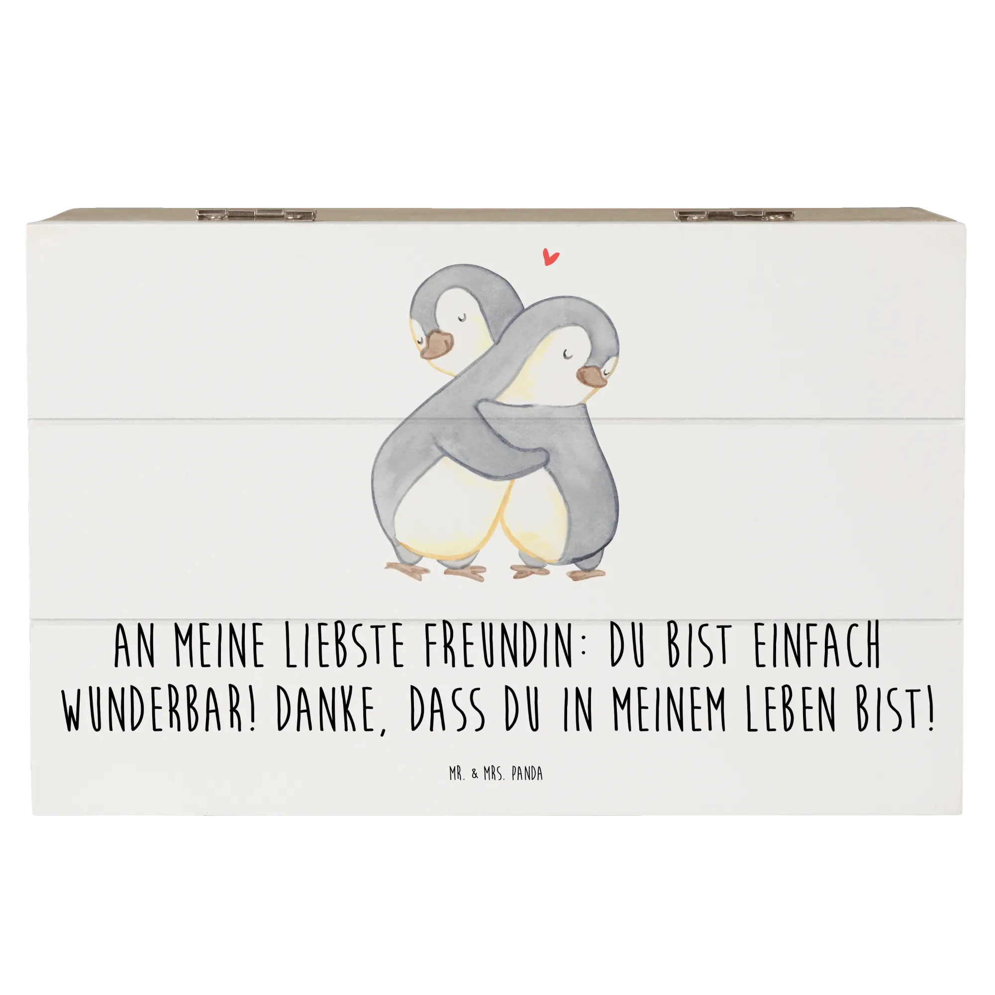 Die wunderschöne Holzkiste von Mr. & Mrs. Panda ist das perfekte Geschenk für deine liebste Freundin. Mit dem herzlichen Slogan "An meine liebste Freundin: Du bist einfach wunderbar! Danke, dass du in meinem Leben bist!" wird diese Kiste zu einem besonderen Erinnerungsstück.