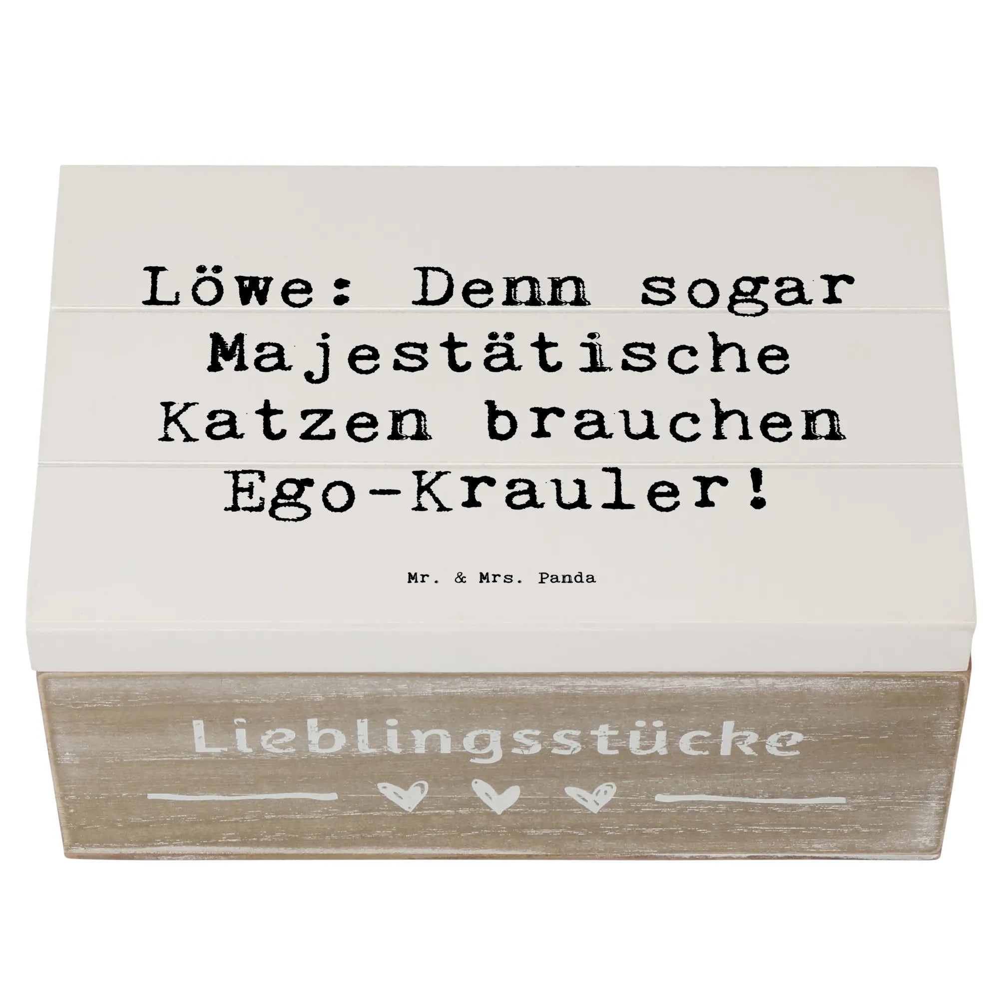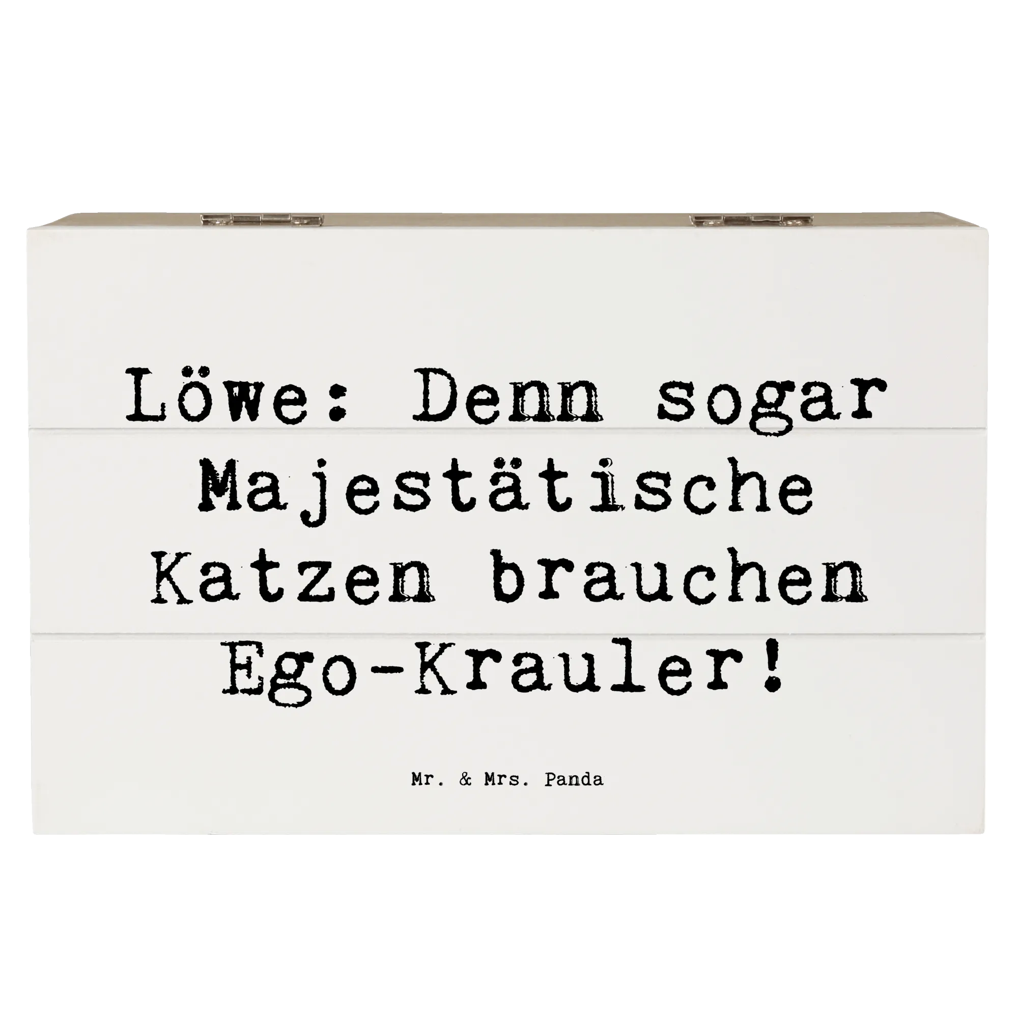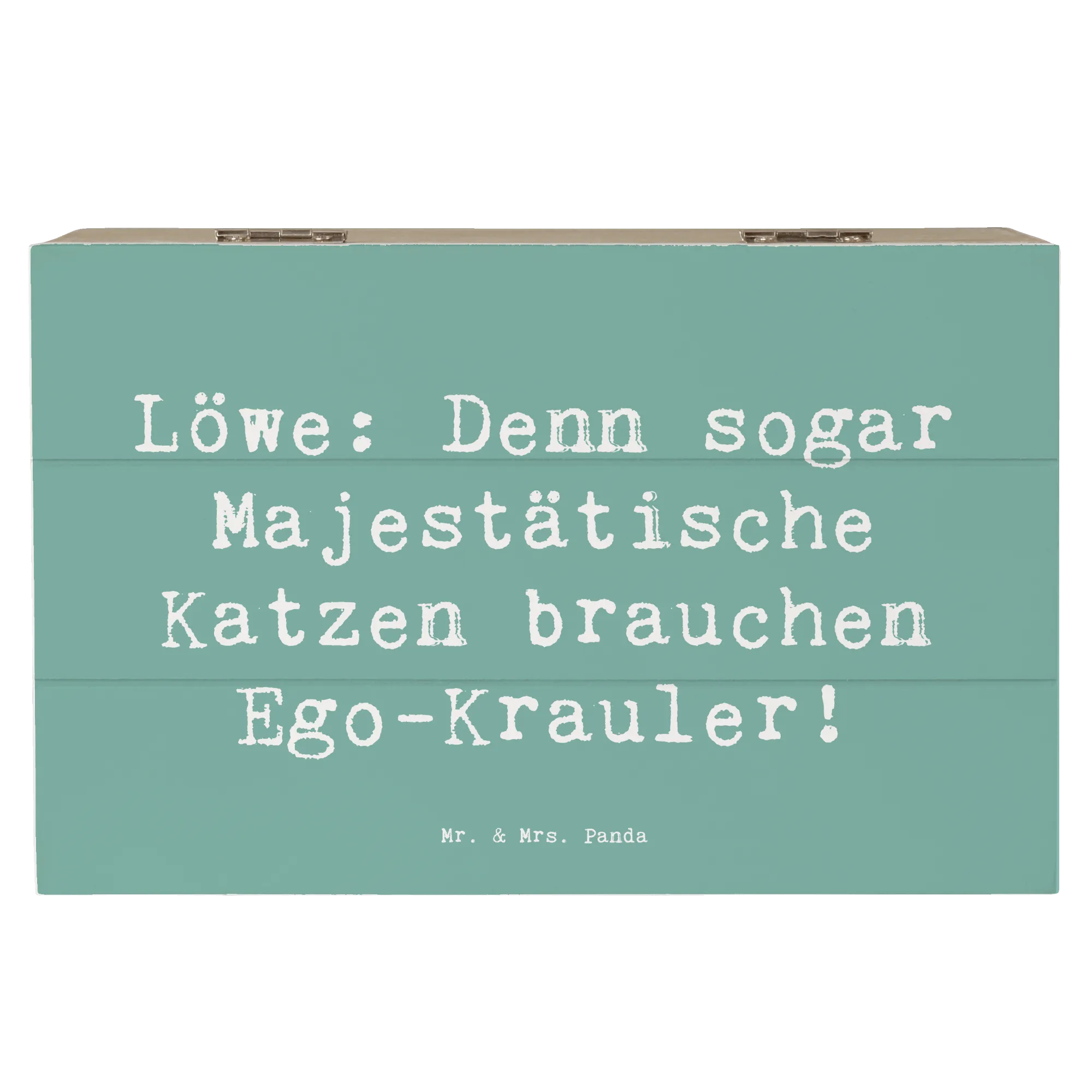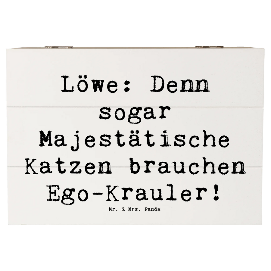 Der eingravierte Slogan "Löwe: Denn sogar Majestätische Katzen brauchen Ego-Krauler!" bringt nicht nur ein Lächeln auf die Lippen, sondern macht die Kiste zu einem ganz besonderen Hingucker.