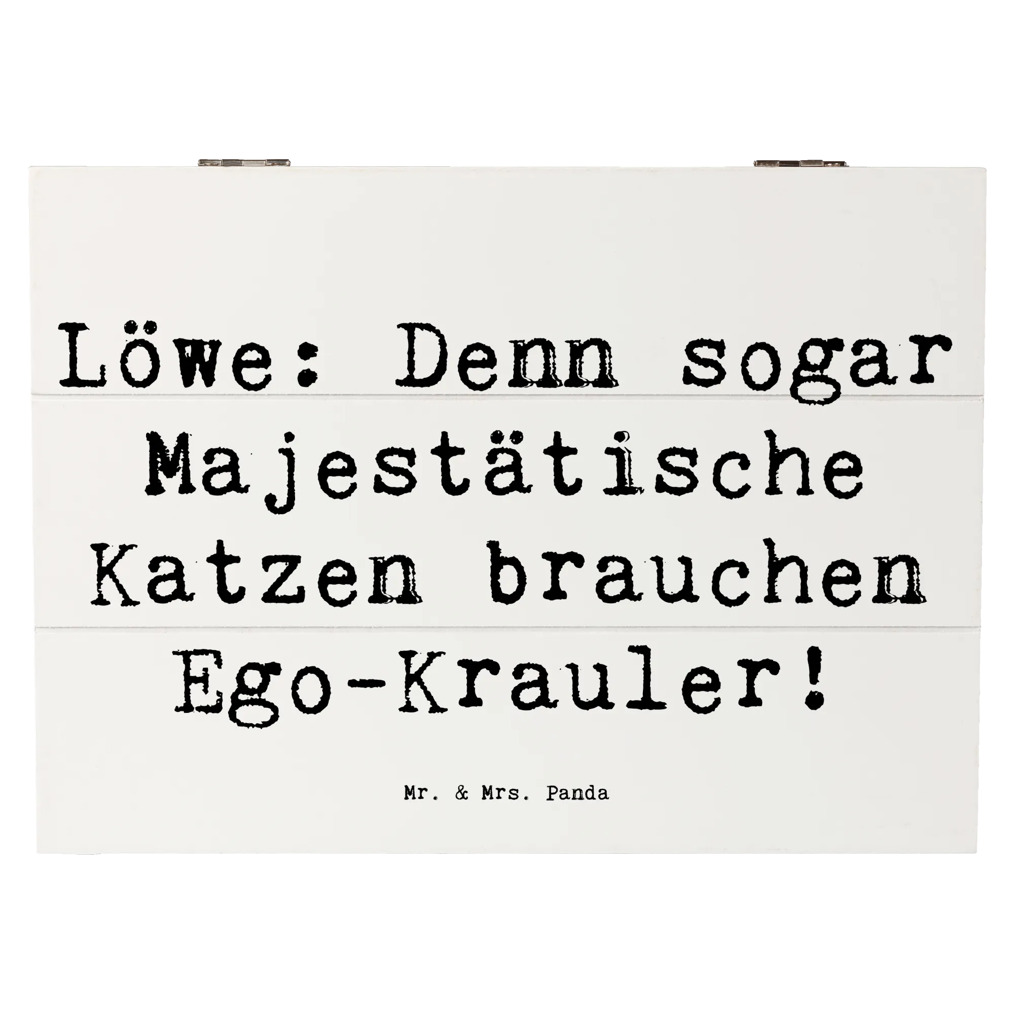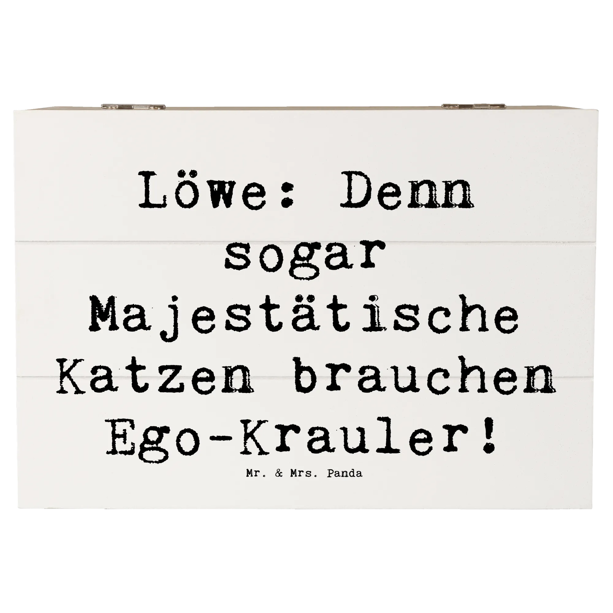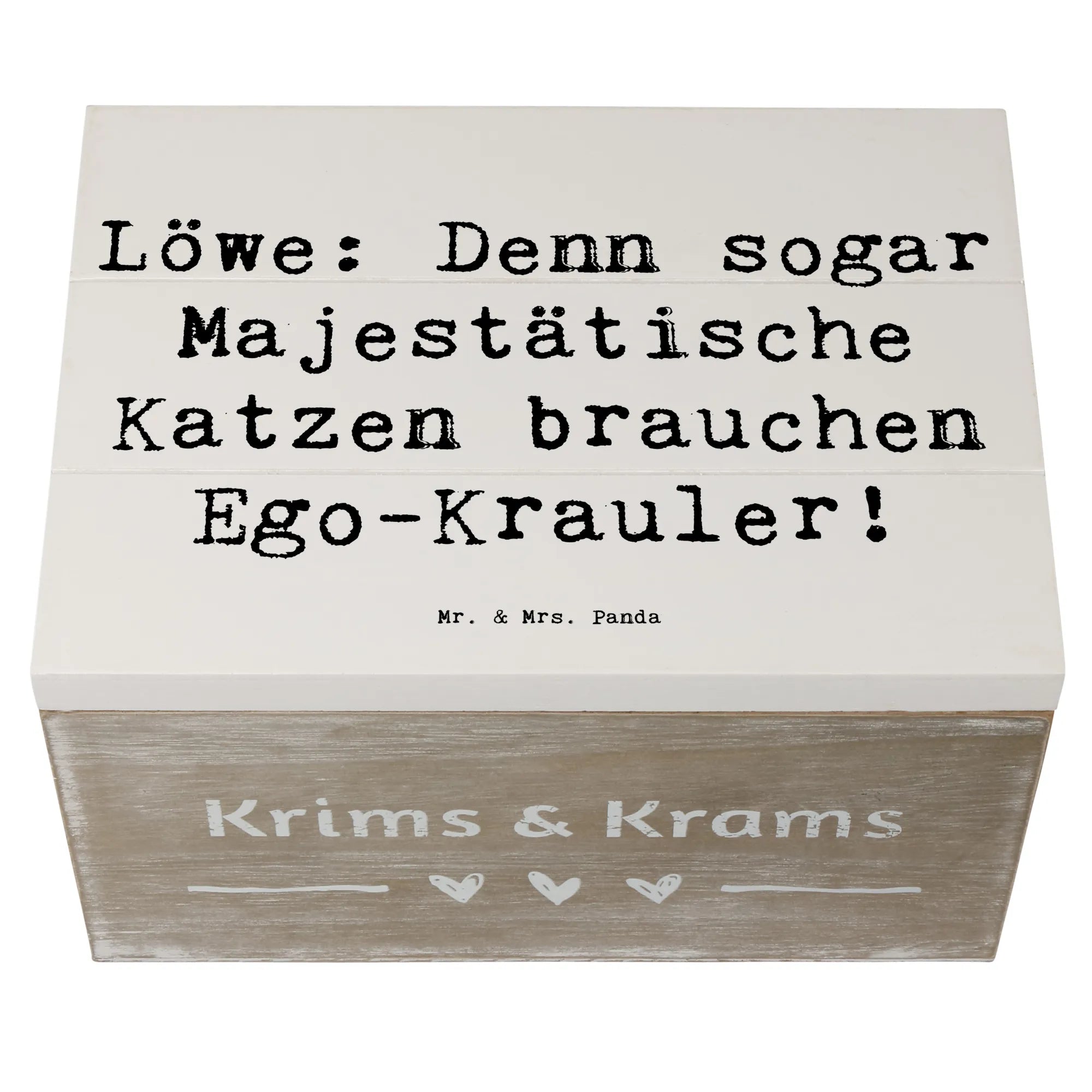 Der eingravierte Slogan "Löwe: Denn sogar Majestätische Katzen brauchen Ego-Krauler!" bringt nicht nur ein Lächeln auf die Lippen, sondern macht die Kiste zu einem ganz besonderen Hingucker.