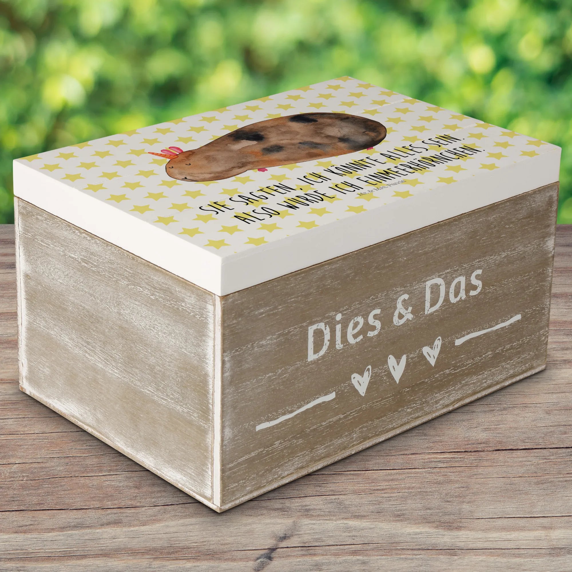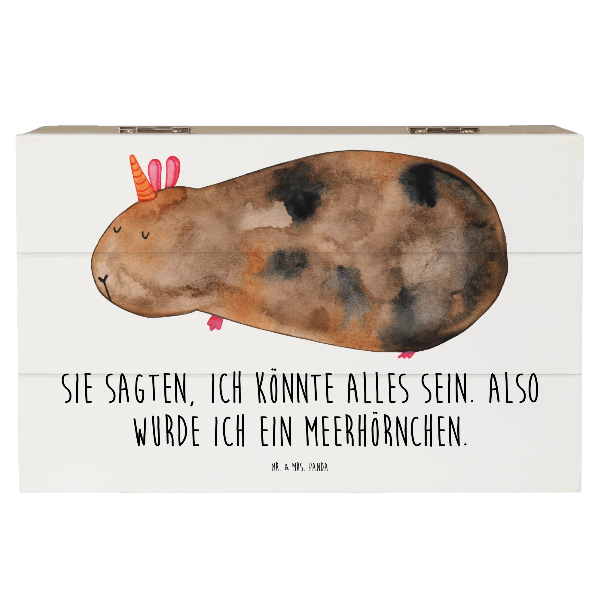 Entdecke die zauberhafte Holzkiste mit dem süßen Meerhörnchen-Motiv aus der Einhorn-Kollektion von Mr. & Mrs. Panda! Diese wunderschöne Holzkiste ist nicht nur ein echter Blickfang, sondern auch der perfekte Ort, um deine wertvollsten Erinnerungen und Schätze aufzubewahren.