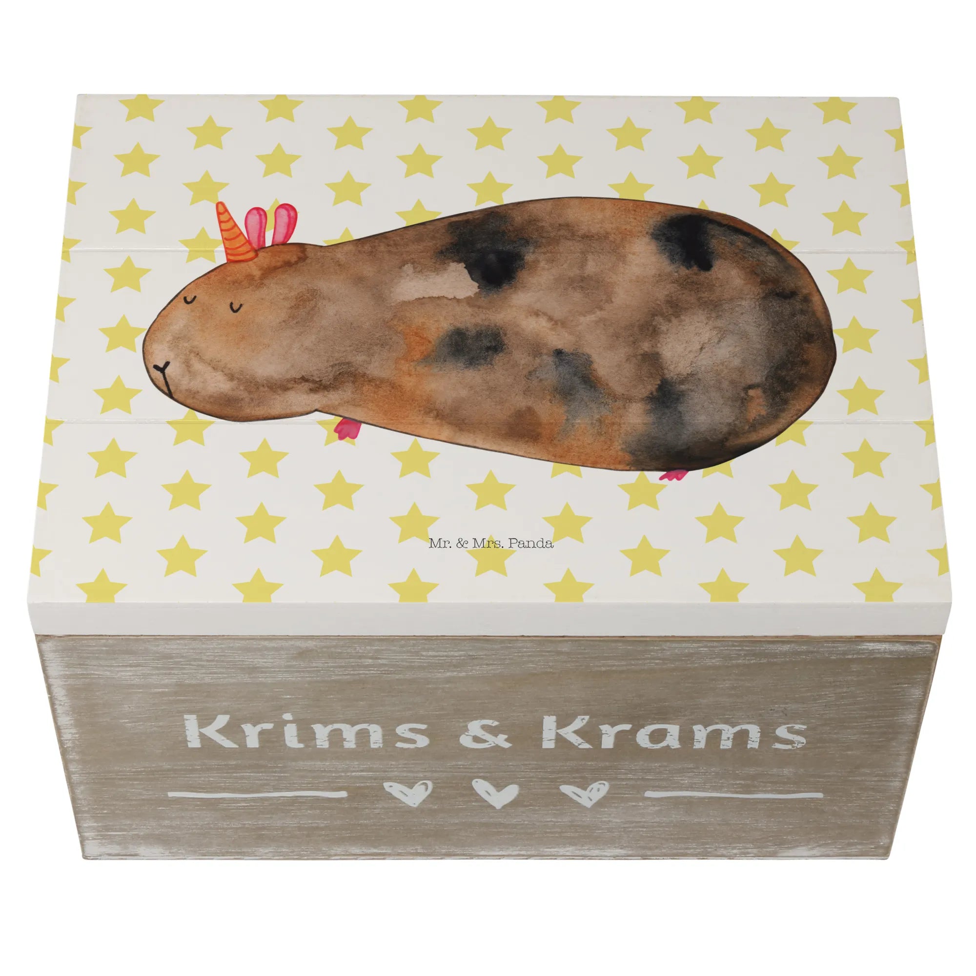 Die Holzkiste Meerhörnchen aus der zauberhaften Einhorn-Kollektion von Mr. & Mrs. Panda ist das perfekte Geschenk für alle, die das Besondere lieben! Diese wunderschöne Holzkiste, liebevoll bedruckt mit einem süßen Meerschweinchen, das ein Horn auf dem Kopf trägt, ist nicht nur ein echter Hingucker, sondern auch praktisch. Mit den Maßen von 25 x 18 cm bietet sie ausreichend Platz, um all deine wertvollen Schätze zu bewahren.