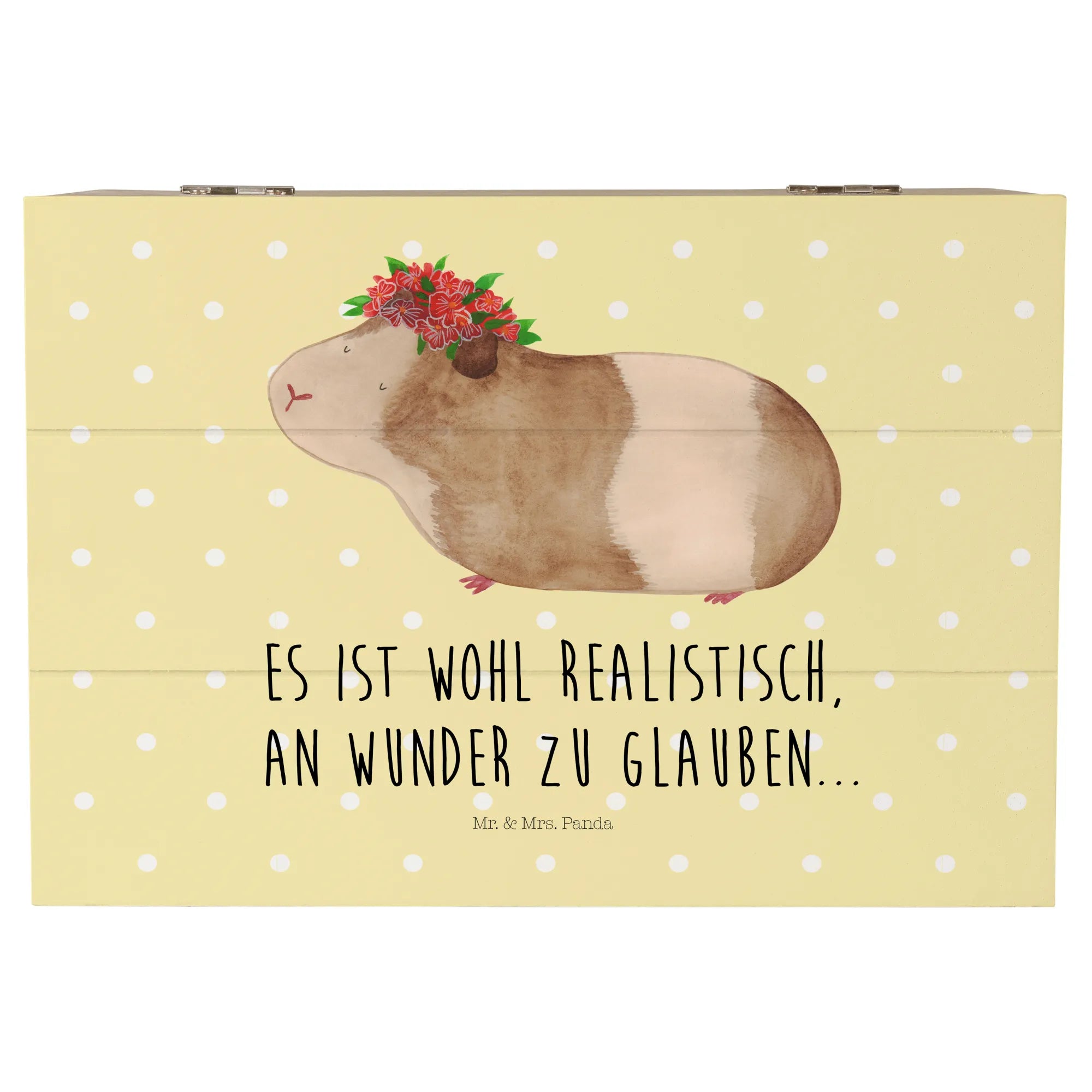 Die wunderschöne Holzkiste von Mr. & Mrs. Panda mit dem niedlichen Motiv "Meerschweinchen weise" ist das perfekte Geschenk für alle, die einen Hauch von Magie und Wunder in ihr Leben bringen möchten.