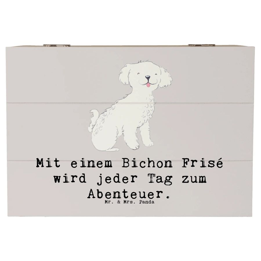 Ob Du Erinnerungen an die Kindheit, Fotos oder kleine Schätze aufbewahren möchtest, diese Erinnerungskiste bietet ausreichend Platz und sieht dabei fantastisch aus. Konzipiert mit dem süßen Motiv des Bichon Frisé und dem inspirierenden Spruch \\"Mit einem Bichon Frisé wird jeder Tag zum Abenteuer.\\", eignet sie sich ideal als Dekokiste oder Geschenkdose.