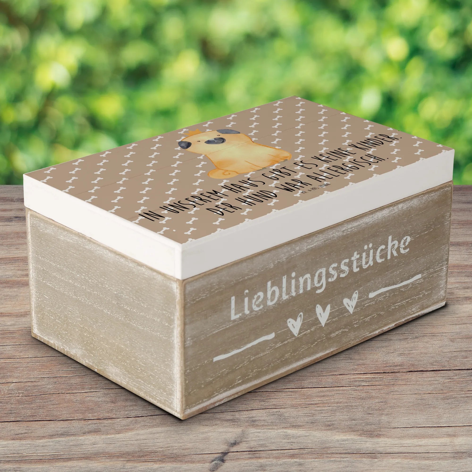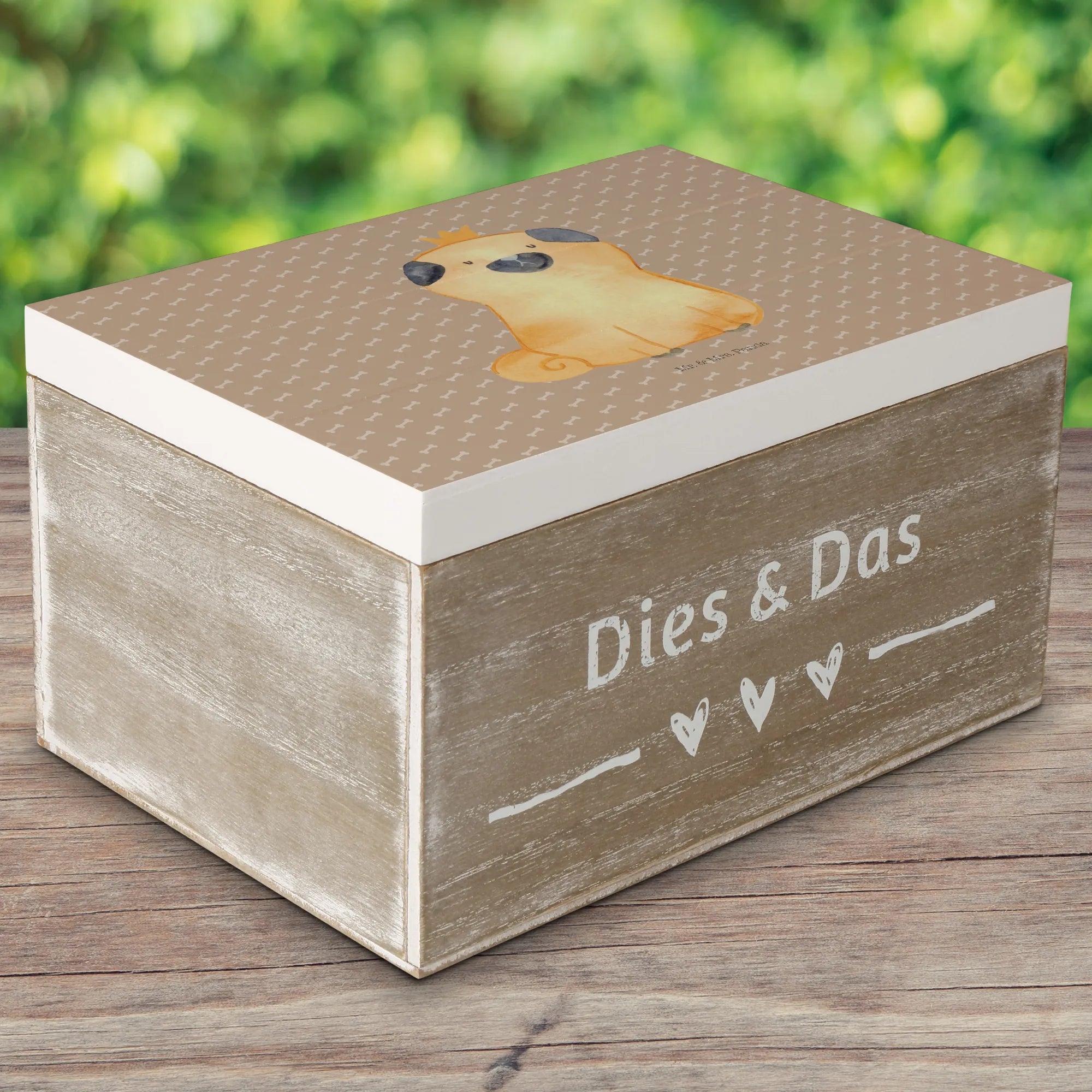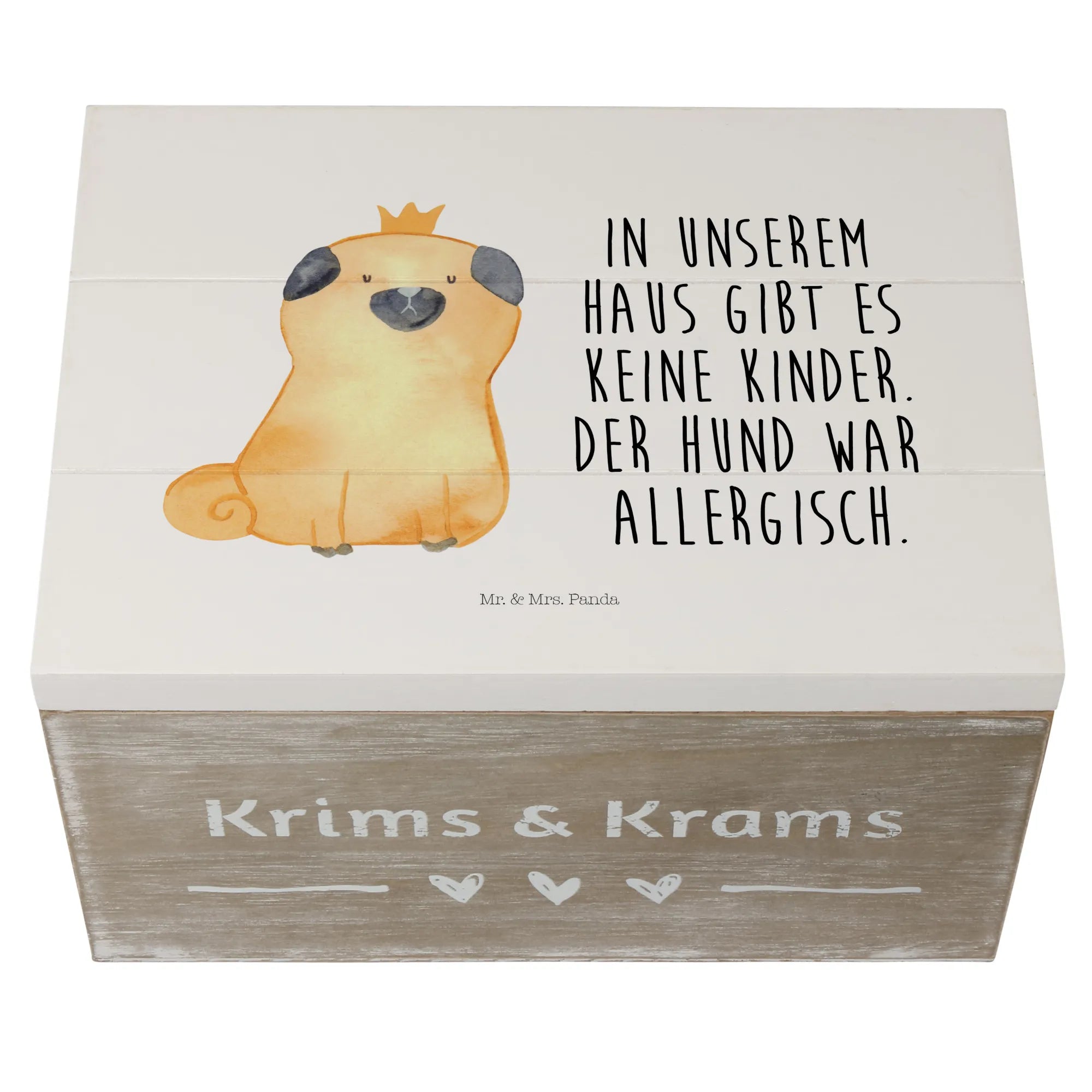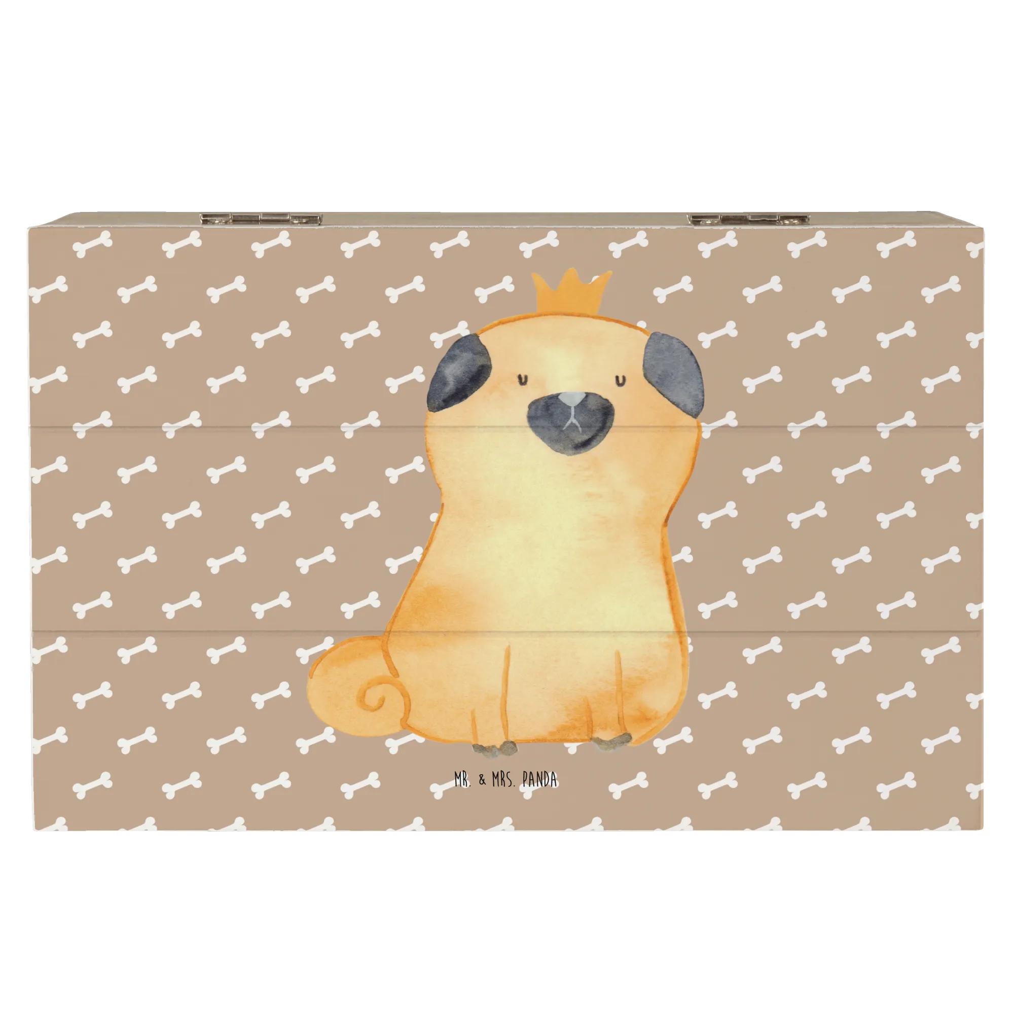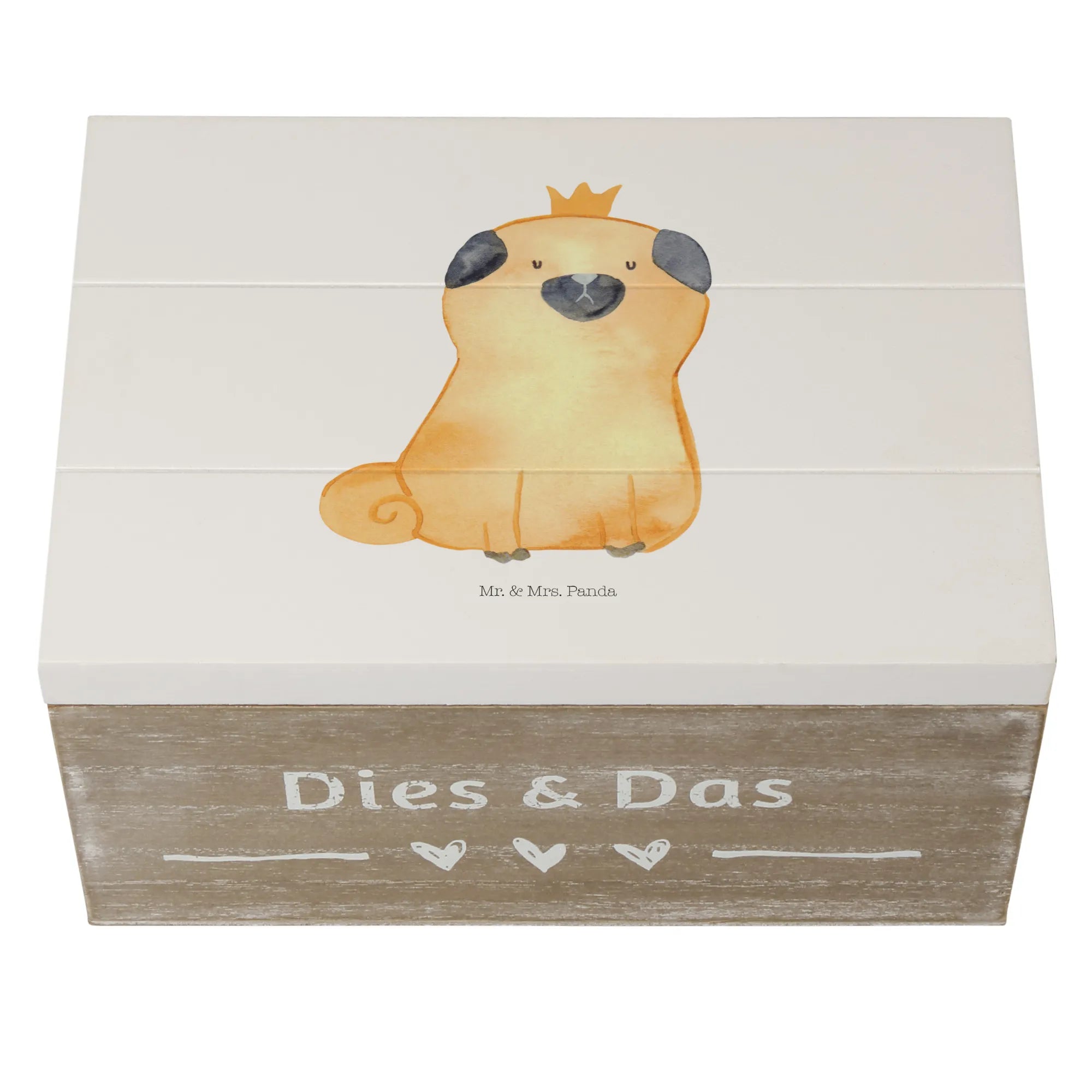 Entdecke die zauberhafte Holzkiste "Mops Krone" von Mr. & Mrs. Panda, die perfekt für alle Hundeliebhaber geeignet ist! Diese wunderschöne Kiste aus robuster Holzfaser ist nicht nur dekorativ, sondern auch äußerst praktisch.