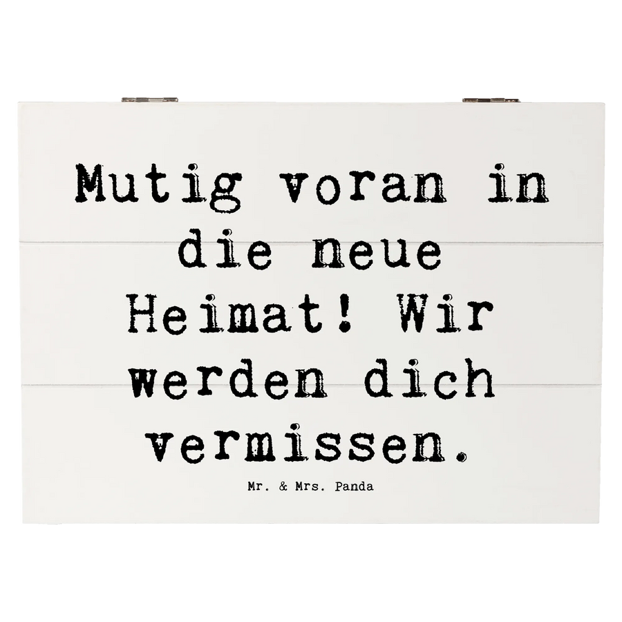 Diese wunderschöne Holzkiste von Mr. & Mrs. Panda ist das perfekte Geschenk für alle, die einen Neuanfang in einer neuen Stadt wagen. Sie trägt den ermutigenden Spruch 'Mutig voran in die neue Heimat! Wir werden dich vermissen.' und ist somit nicht nur ein hübsches Dekorationsstück, sondern auch eine Quelle der Inspiration und des Trostes.