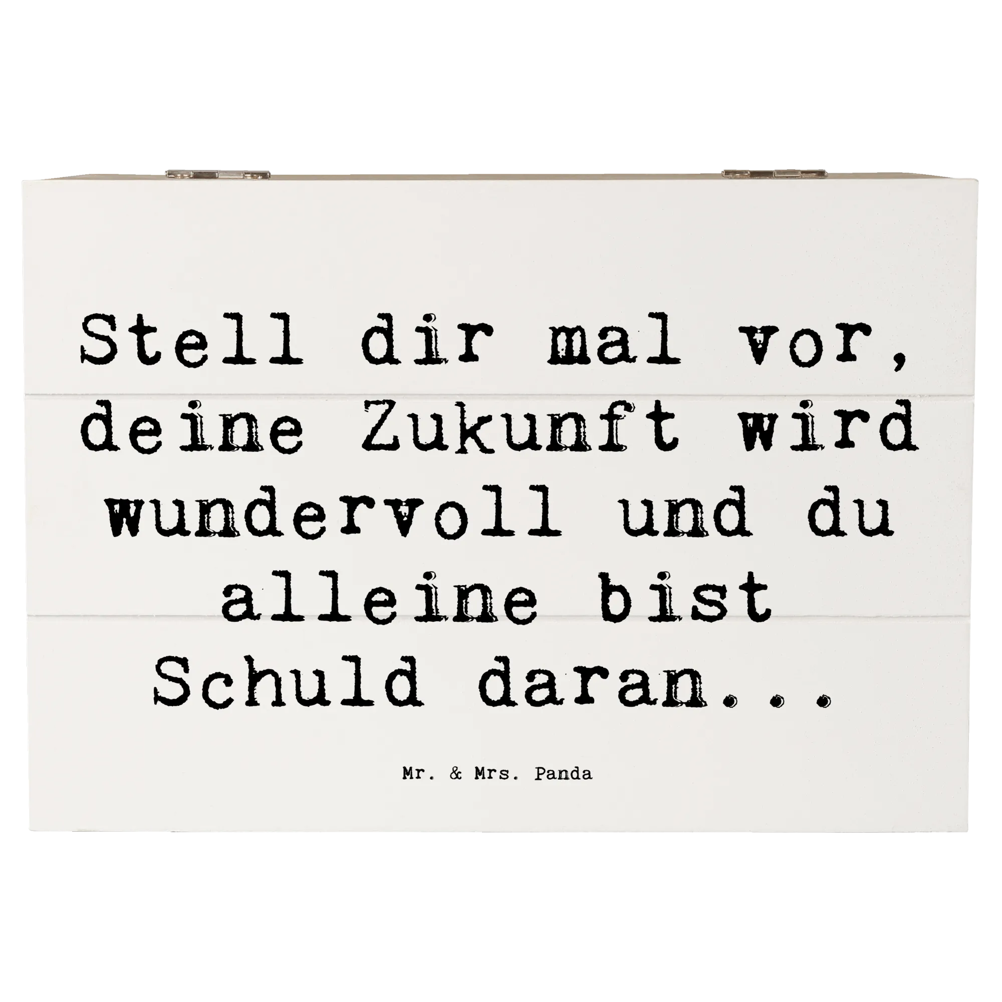 Und wie sieht es mit der Botschaft aus? Die Kiste ist mit dem inspirierenden Spruch "Stell dir mal vor, deine Zukunft wird wundervoll und du alleine bist Schuld daran..." bedruckt. Dieser Satz ist nicht nur ein Mutmacher, sondern auch eine tägliche Erinnerung daran, dass du selbst die Zügel in der Hand hast und deine Zukunft gestalten kannst.