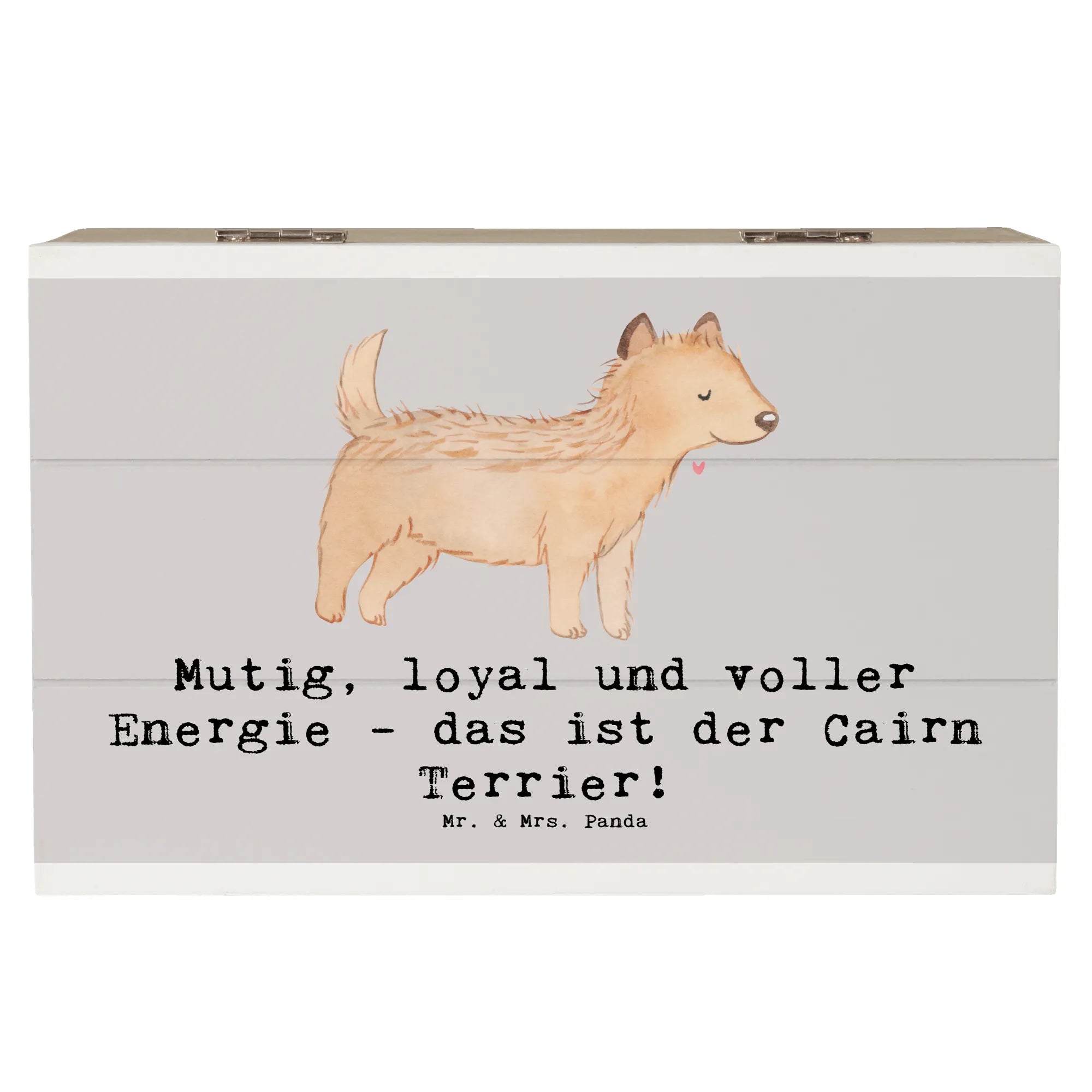 Die wunderschöne Holzkiste von Mr. & Mrs. Panda ist nicht nur ein praktischer Aufbewahrungsort, sondern auch ein ganz besonderes Geschenk für alle Hundeliebhaber! Mit dem liebevollen Motiv des Cairn Terriers und dem Spruch 'Mutig, loyal und voller Energie - das ist der Cairn Terrier!' wird jedes Herz höherschlagen.