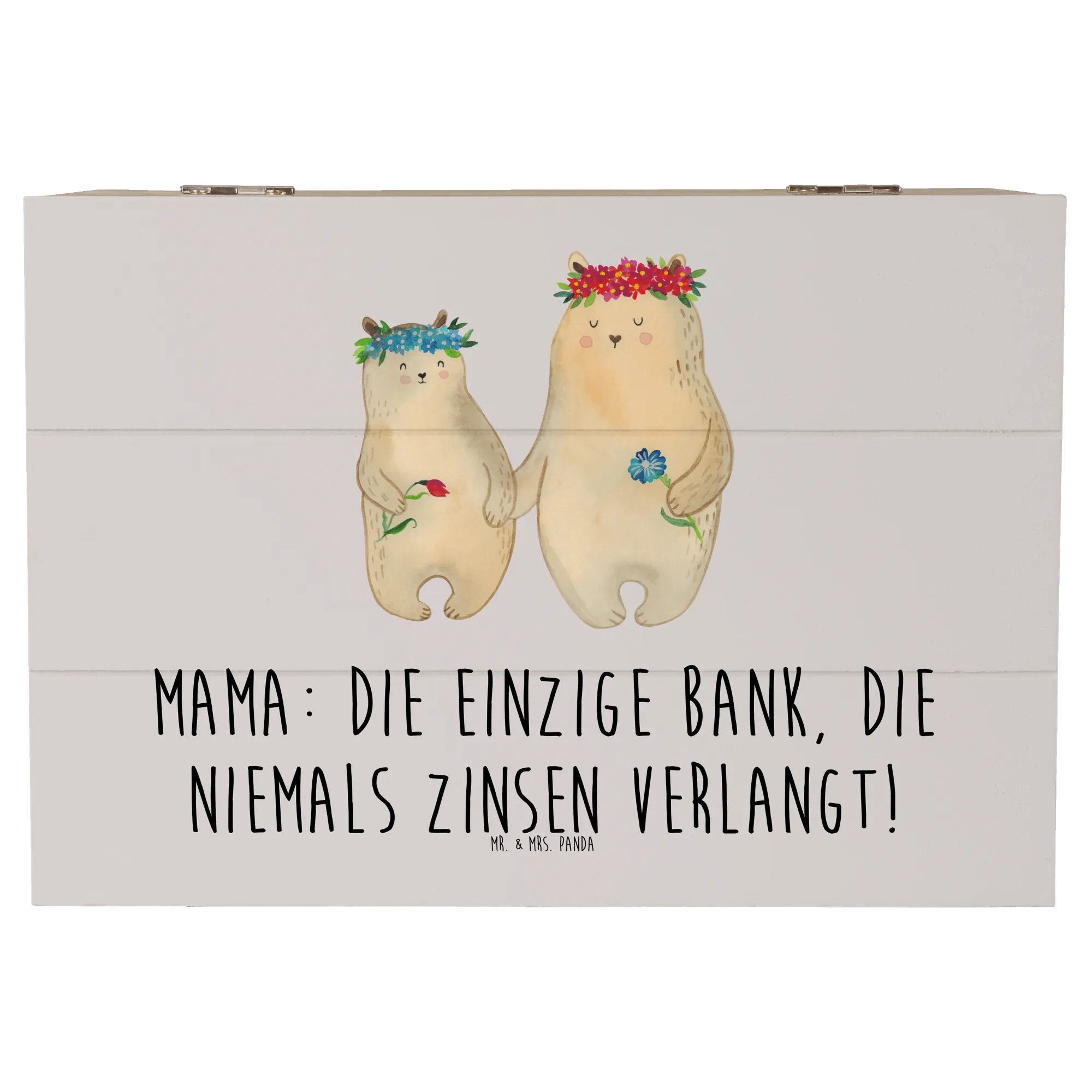 Die wunderschöne Holzkiste von Mr. & Mrs. Panda ist das perfekte Geschenk für Mütter, die man nicht genug wertschätzen kann. Mit ihrem liebevoll gestalteten Design und dem Slogan "Mama: Die einzige Bank, die niemals Zinsen verlangt!" wird sie zum idealen Aufbewahrungsort für all die kostbaren Erinnerungen, die Ihr Herz berühren.