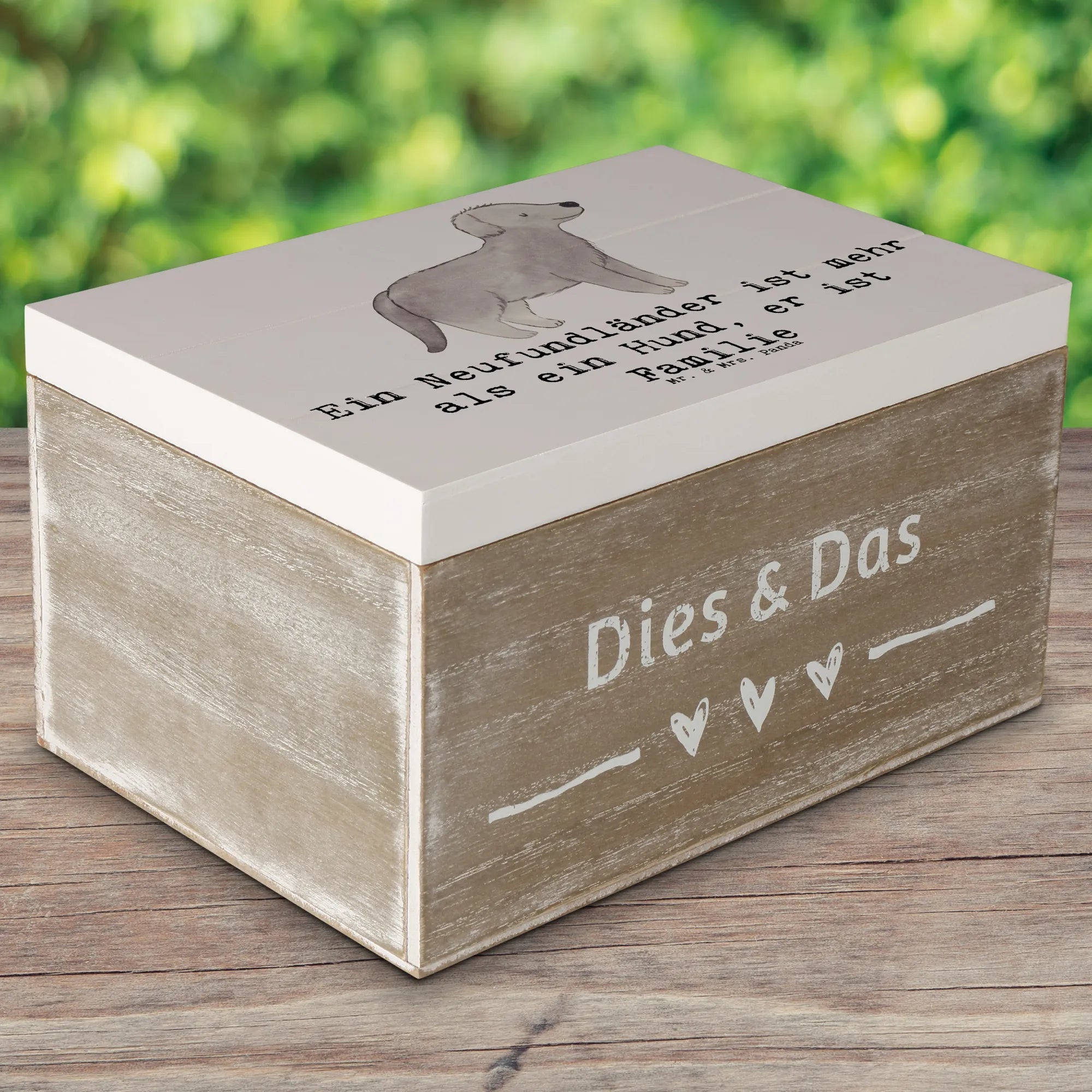 Entdecke die zauberhafte Holzkiste mit dem Motiv des Neufundländers von Mr. & Mrs. Panda! Diese wunderschöne Erinnerungskiste ist nicht nur ein echter Blickfang, sondern auch ein ideales Geschenk für alle Hundefreunde und Familien.