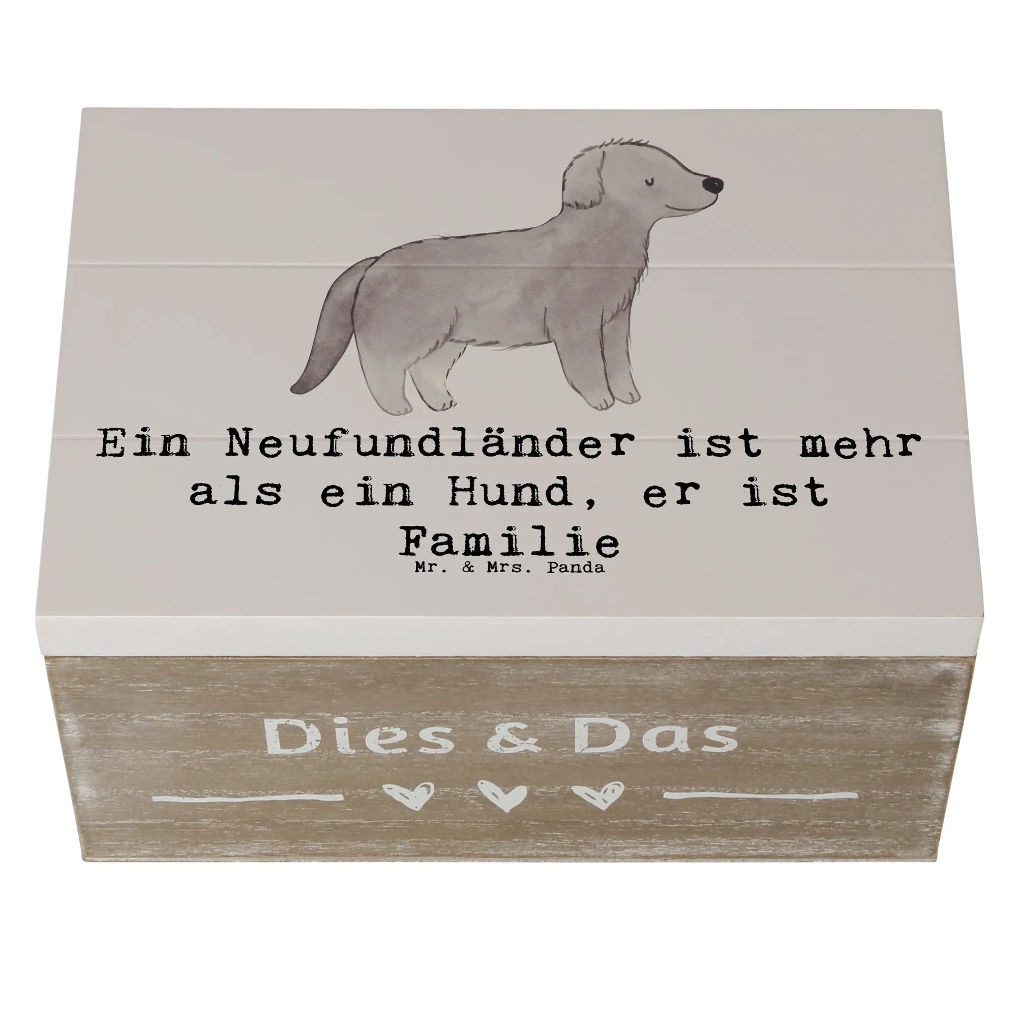 Die wunderschöne Holzkiste von Mr. & Mrs. Panda ist das perfekte Geschenk für jeden Hundefan, insbesondere für Liebhaber der Hunderasse Neufundländer. Mit ihrem süßen Motiv und dem liebevollen Slogan "Ein Neufundländer ist mehr als ein Hund, er ist Familie" bringt diese Schatzkiste nicht nur Freude, sondern auch eine persönliche Note in dein Zuhause.
