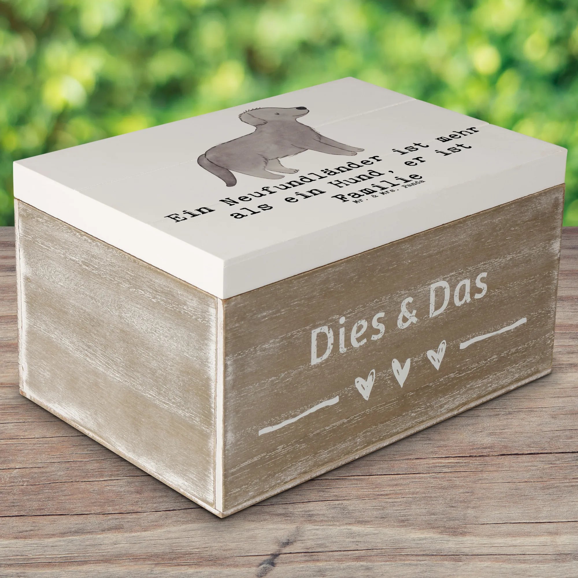 Die wunderschöne Holzkiste von Mr. & Mrs. Panda mit dem niedlichen Neufundländer-Motiv ist das perfekte Geschenk für alle Hundefans! Egal, ob du eine Erinnerungskiste für besondere Anlässe wie Geburtstage, Kommunion oder Hochzeiten suchst oder einfach nur einen schönen Ort für deine Kostbarkeiten willst, diese Schatzkiste wird deinen Bedürfnissen gerecht.