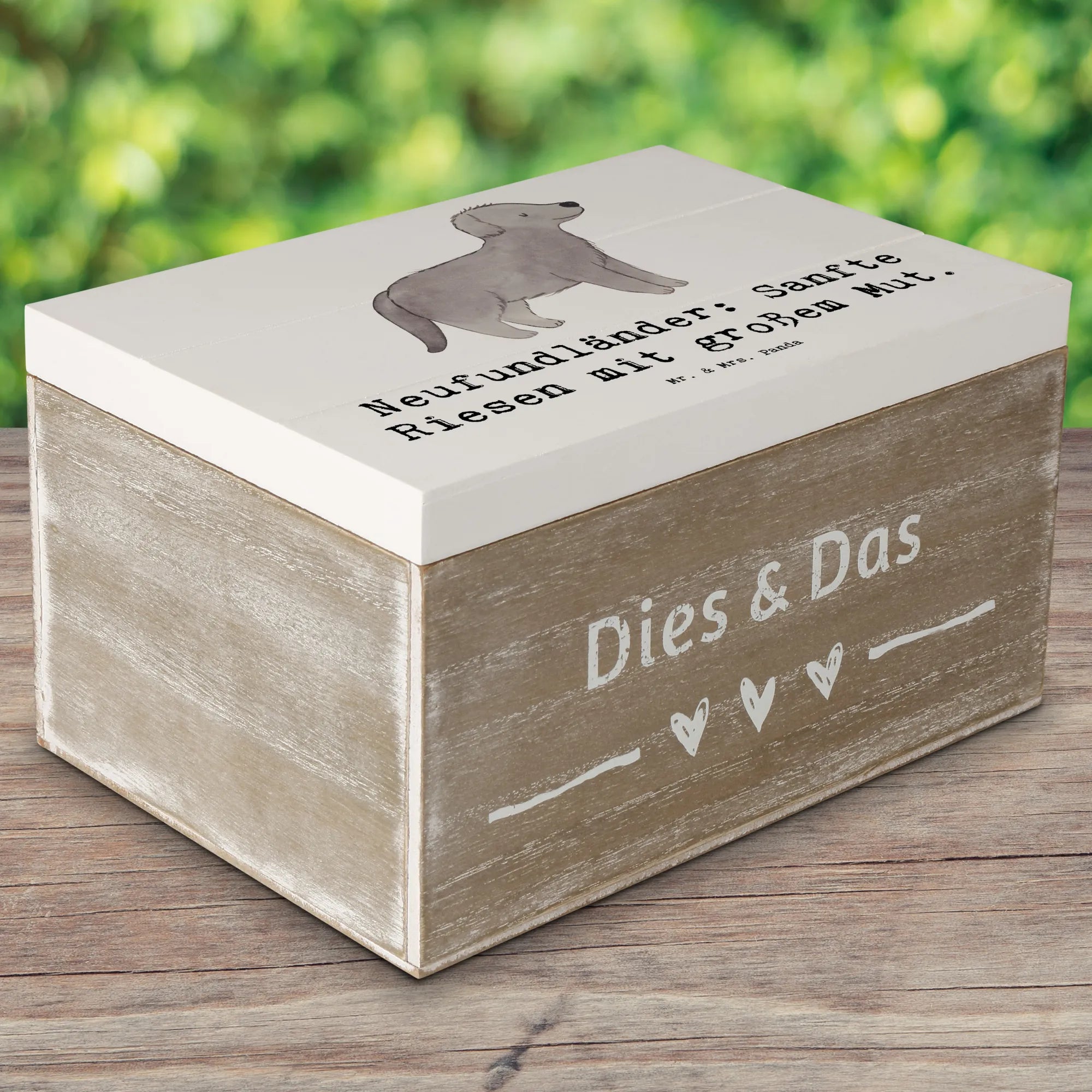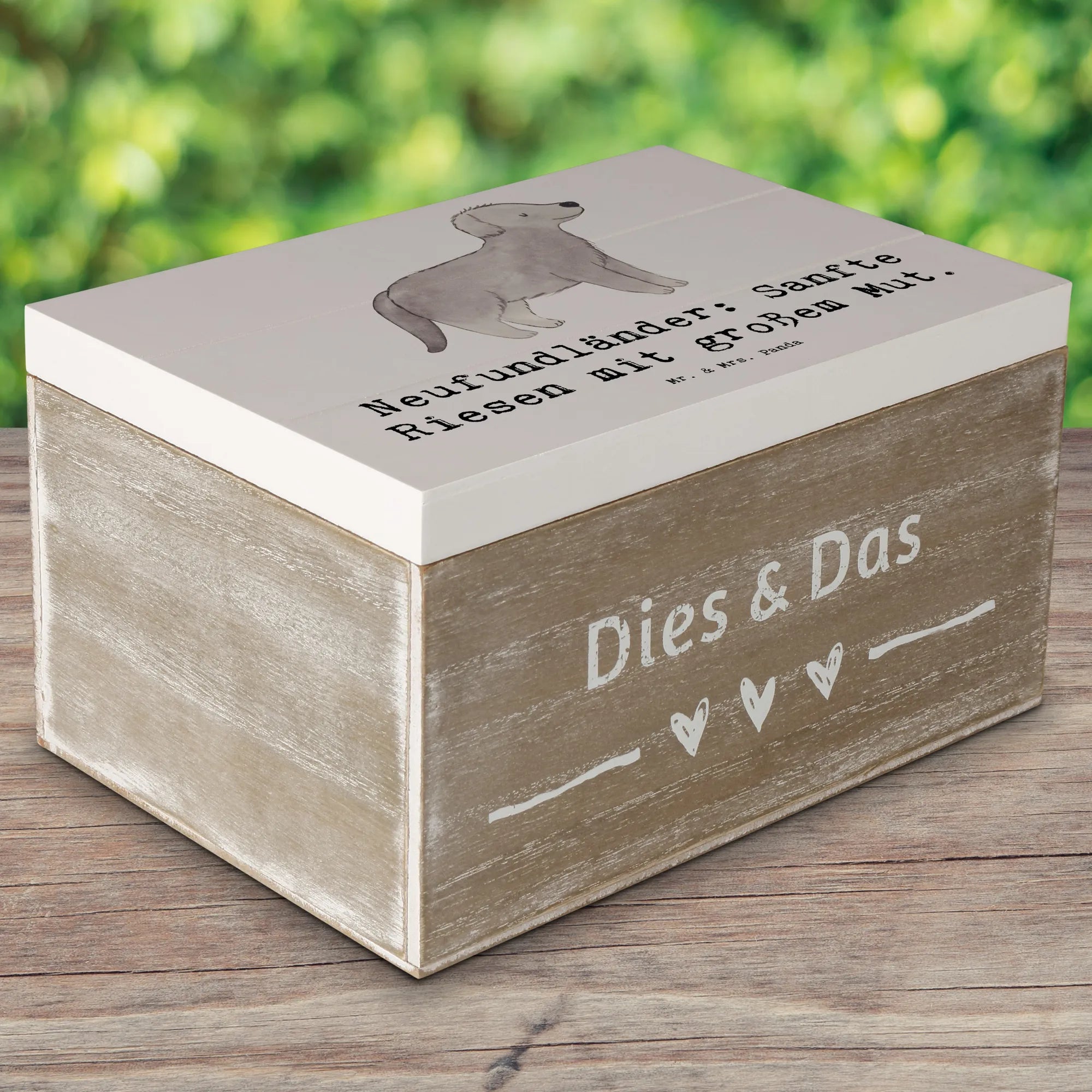 Entdecke die wunderbare Holzkiste von Mr. & Mrs. Panda, die mit einem charmanten Neufundländer Motiv verziert ist! Diese einzigartige Kiste ist mehr als nur ein Aufbewahrungsort – sie ist ein wahrer Schatz für all deine kostbaren Erinnerungen. Egal, ob du sie als praktische Aufbewahrungsbox für Fotos, Geschenke oder die besonderen Schätze deiner Kindheit nutzen möchtest, diese Holzkiste bietet dir alles, was du brauchst.
