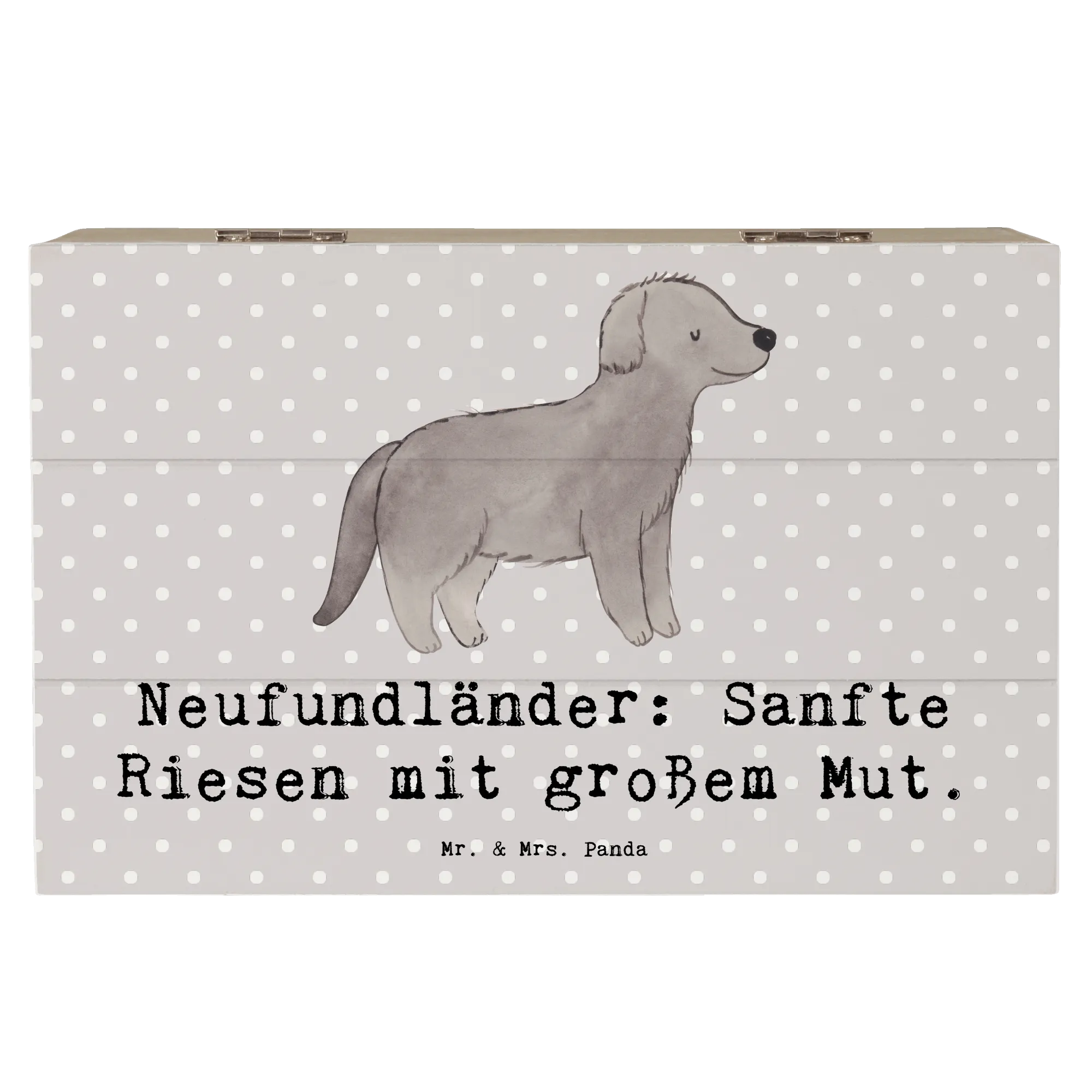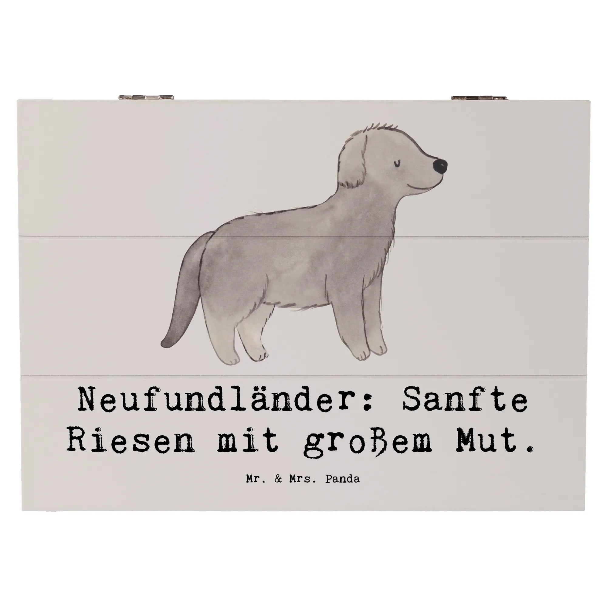 Für jeden Neufundländer-Fan bringt diese Holzkiste ein Stück Heimat ins Wohnzimmer. Das süße Design und der Spruch „Neufundländer: Sanfte Riesen mit großem Mut.“ sorgen für ein Lächeln auf jedem Gesicht. Die Hunderassen Kollektion von Mr. & Mrs. Panda bringt die schönsten Hunde aufs Papier und macht sie zu etwas ganz Besonderem. Hierbei handelt es sich nicht nur um ein Gebrauchsgegenstand, sondern auch um ein dekoratives Element, das deinem Zuhause eine persönliche Note verleiht. Die Schatulle ist zudem ein wunderbares Geschenk für die beste Freundin, die Familie oder auch für dich selbst!