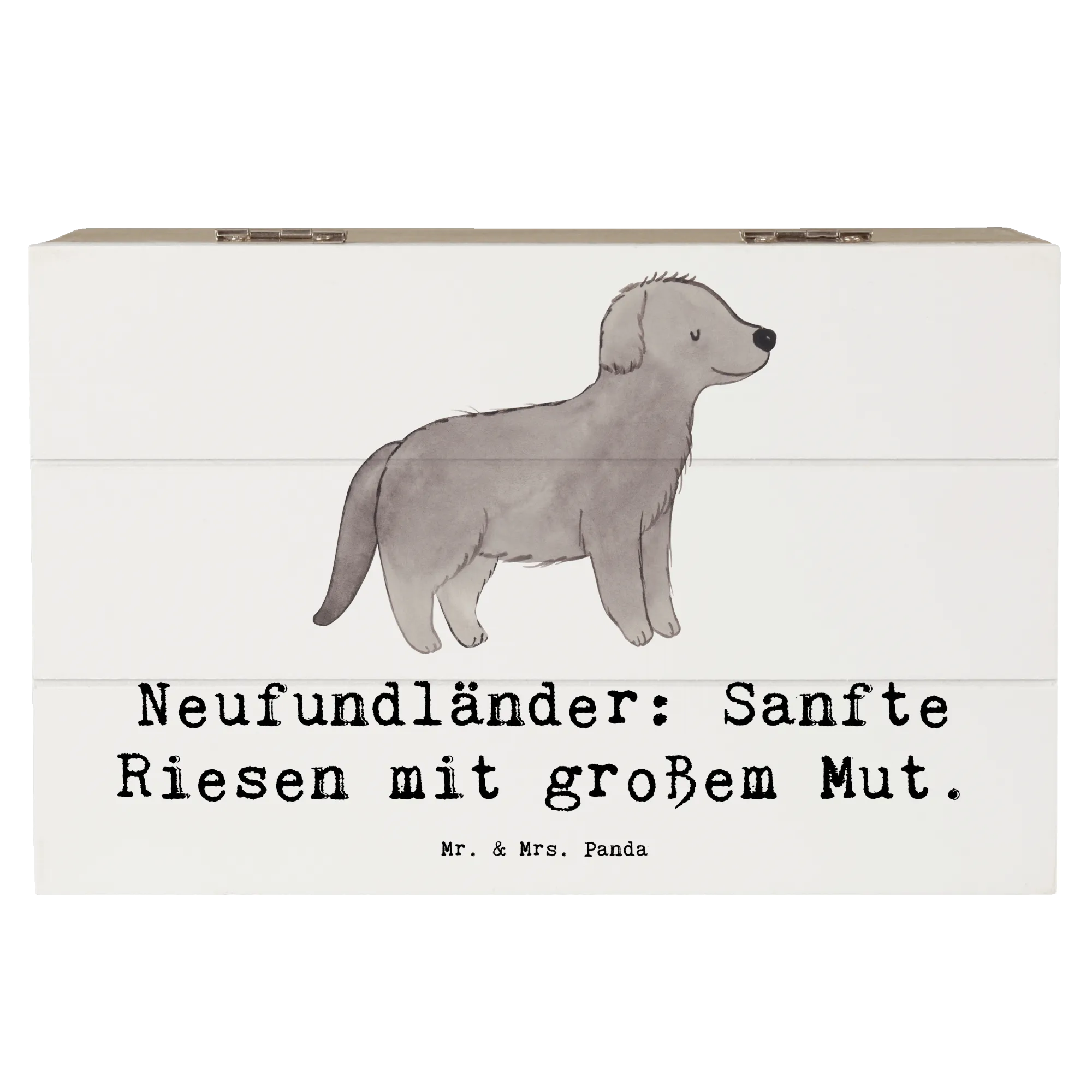 Benannt nach dem sanften Riesen unter den Hunden, dem Neufundländer, trägt die Kiste den inspirierenden Spruch „Neufundländer: Sanfte Riesen mit großem Mut.“ Diese Botschaft verleiht der Kiste eine besondere Bedeutung und macht sie zu einem absoluten Highlight für Hunde- und Neufundländerliebhaber.