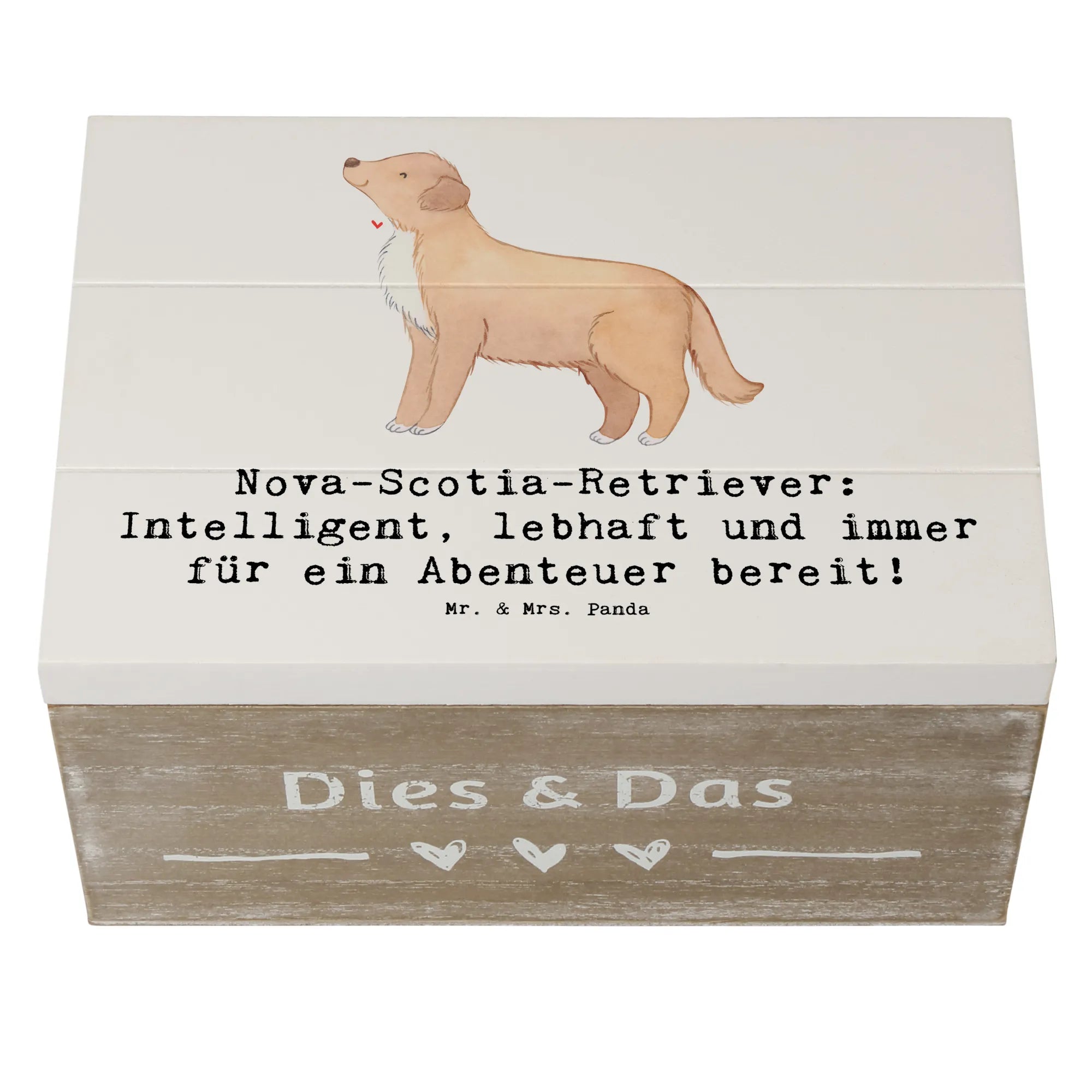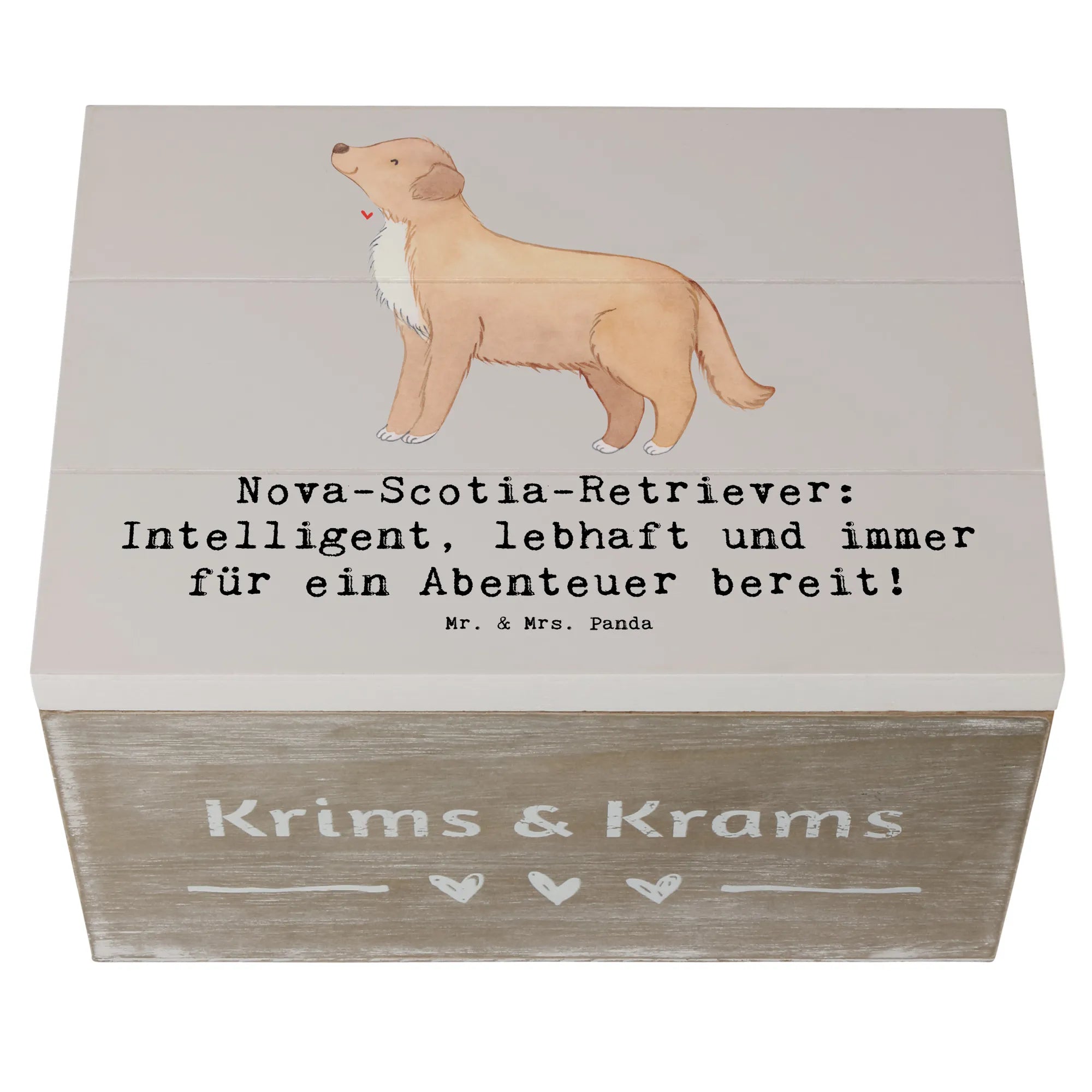 Mit dem liebevollen Spruch 'Nova-Scotia-Retriever: Intelligent, lebhaft und immer für ein Abenteuer bereit!' ziert ein einzigartiges Design diese Kiste, die speziell für die Hunderassen Kollektion kreiert wurde.