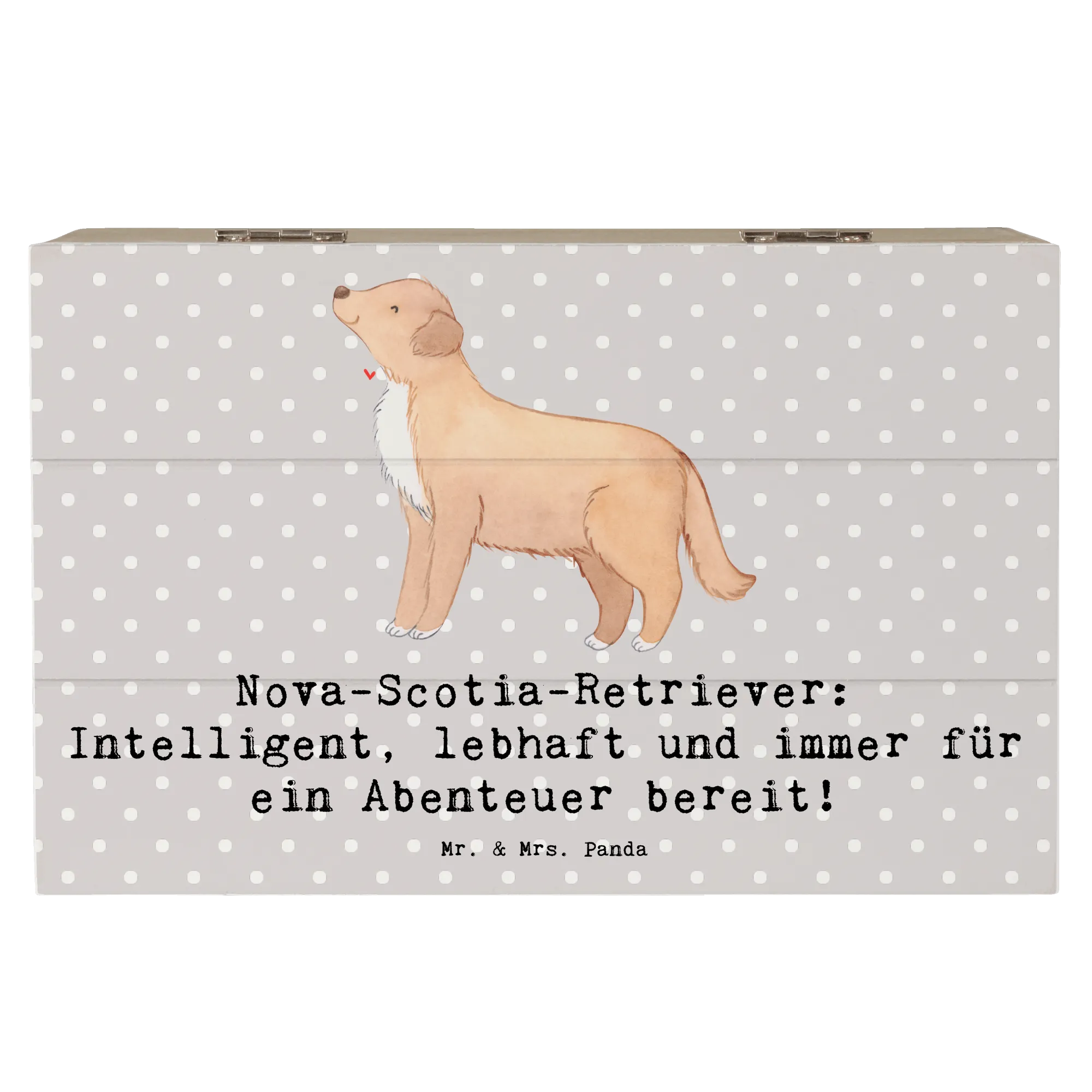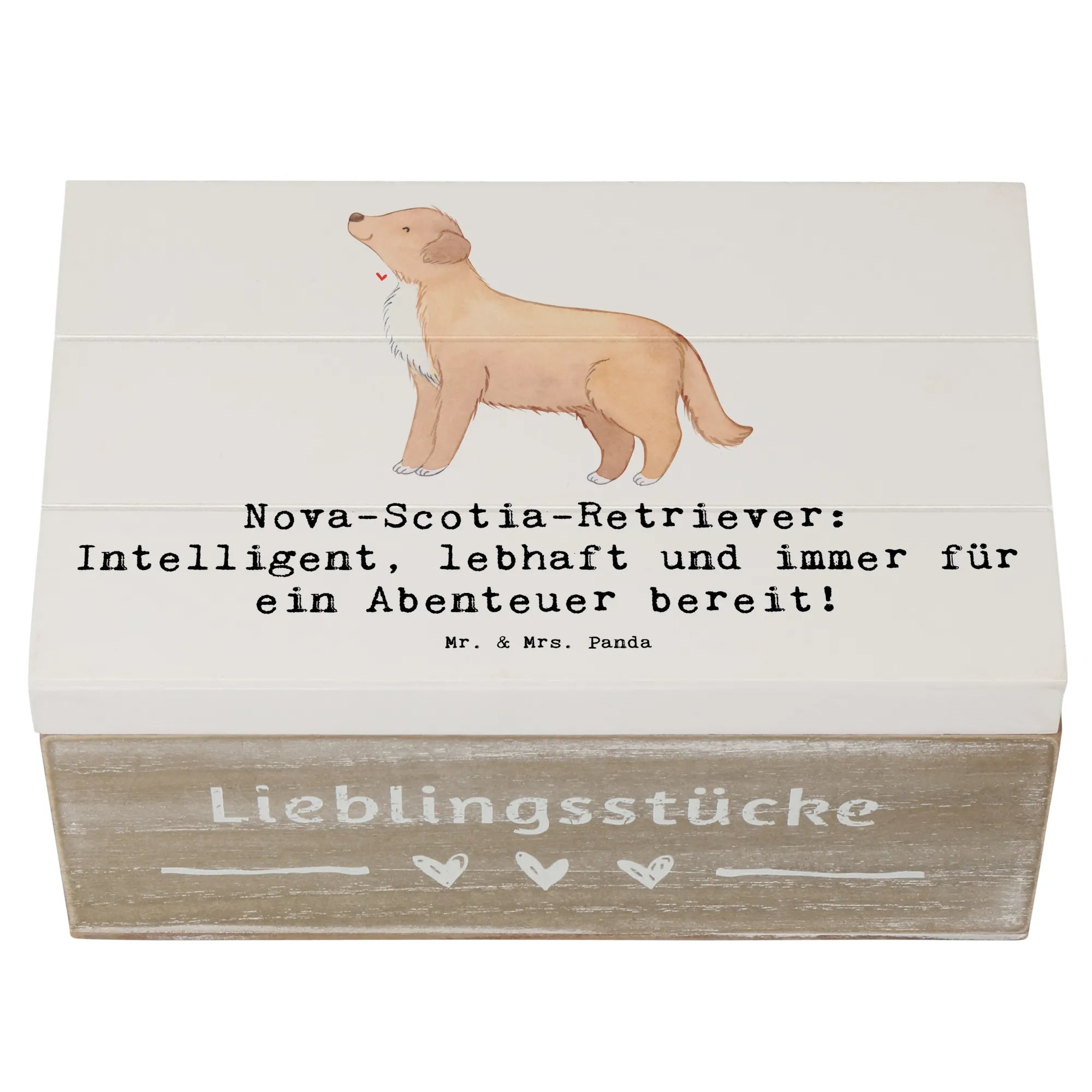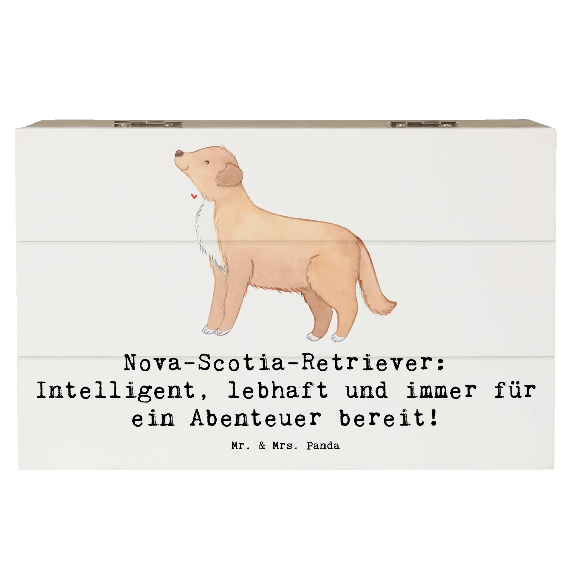 Entdecke die wunderschöne Holzkiste von Mr. & Mrs. Panda, die mit einem liebevollen Motiv des Nova Scotia Duck Tolling Retriever verziert ist. Diese bezaubernde Schatzkiste ist nicht nur ein perfekter Aufbewahrungsort für all deine wertvollen Erinnerungen, sondern auch ein echtes Schmuckstück in jedem Raum.