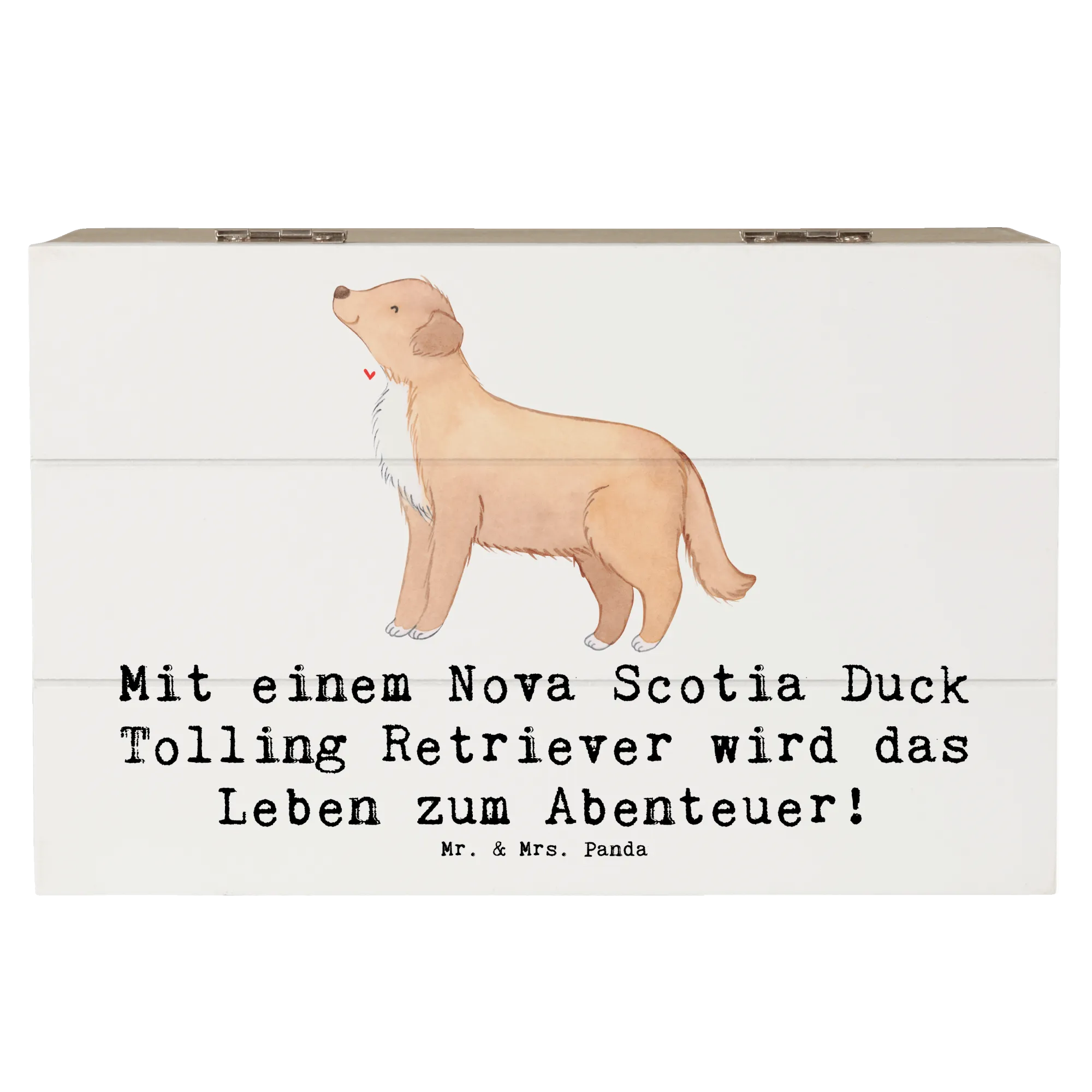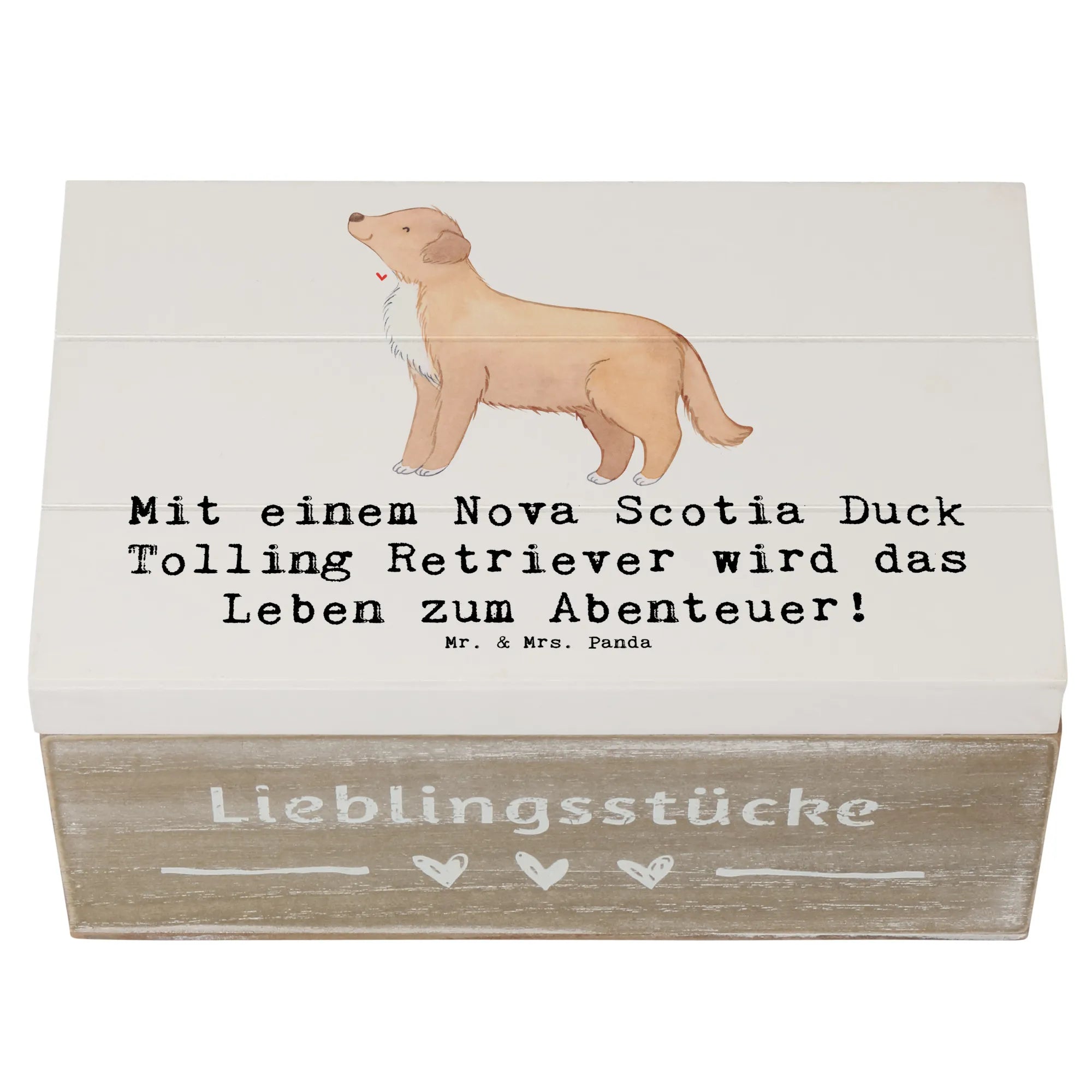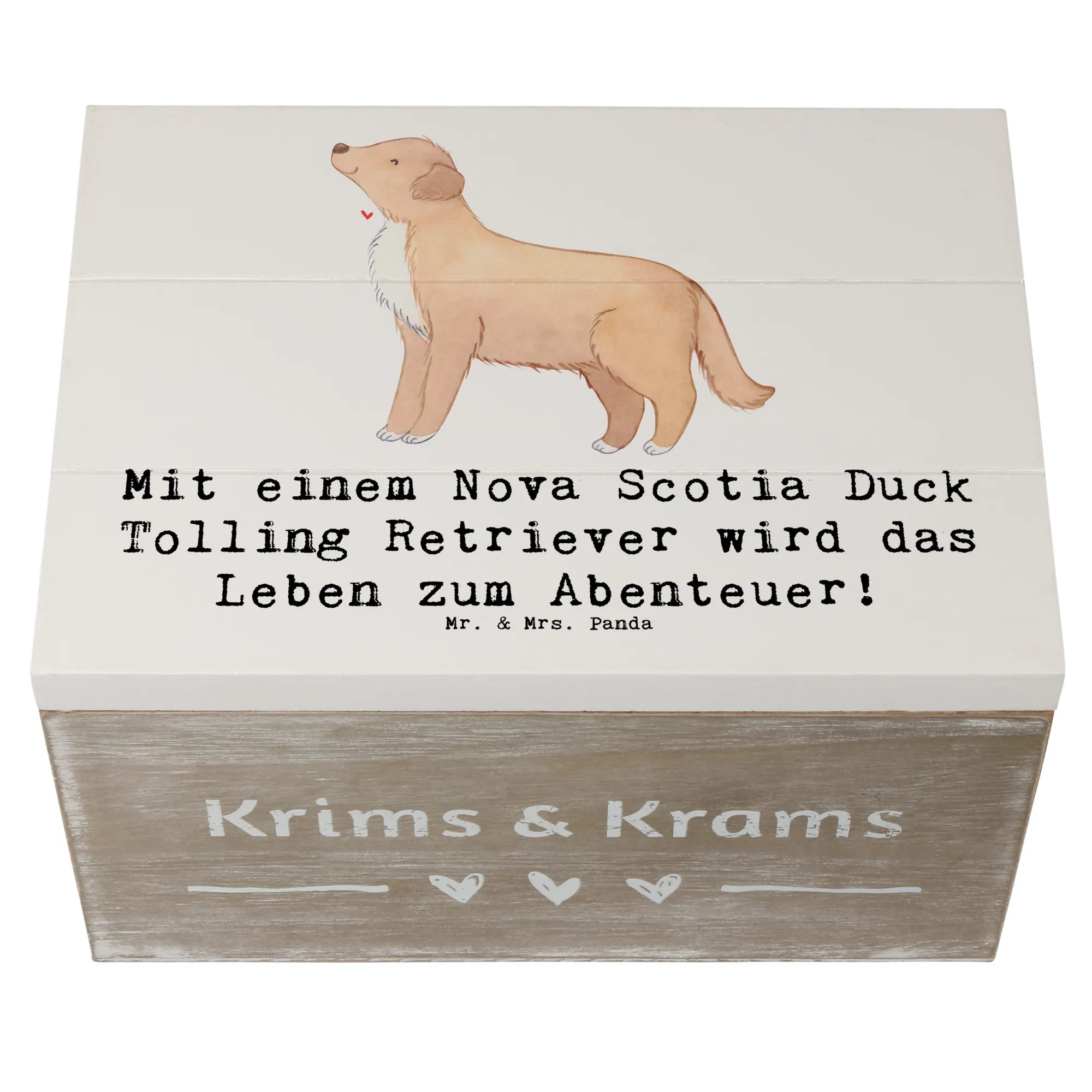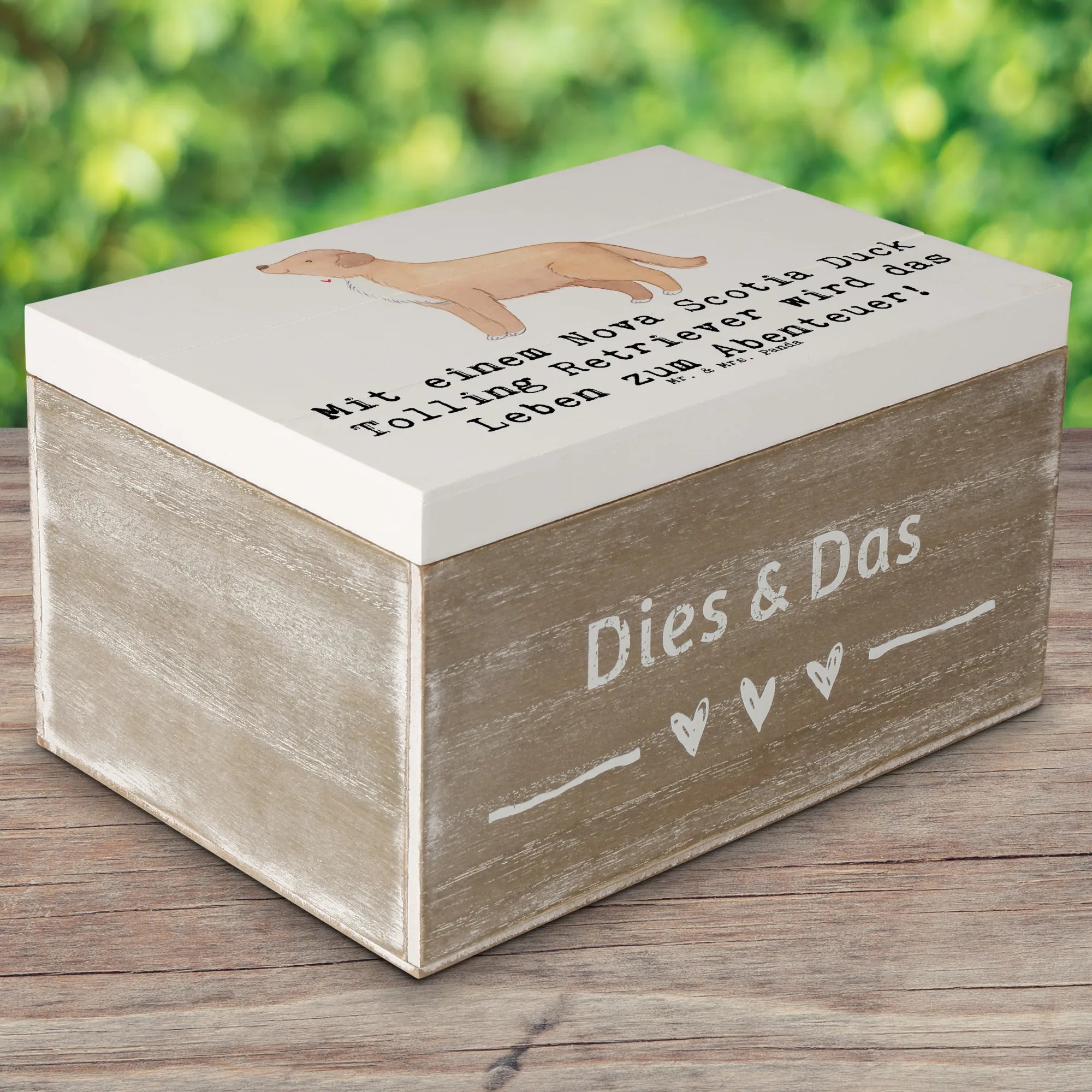 Diese wunderschöne Holzkiste, bedruckt mit einem niedlichen Motiv des Nova Scotia Duck Tolling Retrievers und dem Spruch 'Mit einem Nova Scotia Duck Tolling Retriever wird das Leben zum Abenteuer!', ist ein absolutes Muss für alle Hundefans.