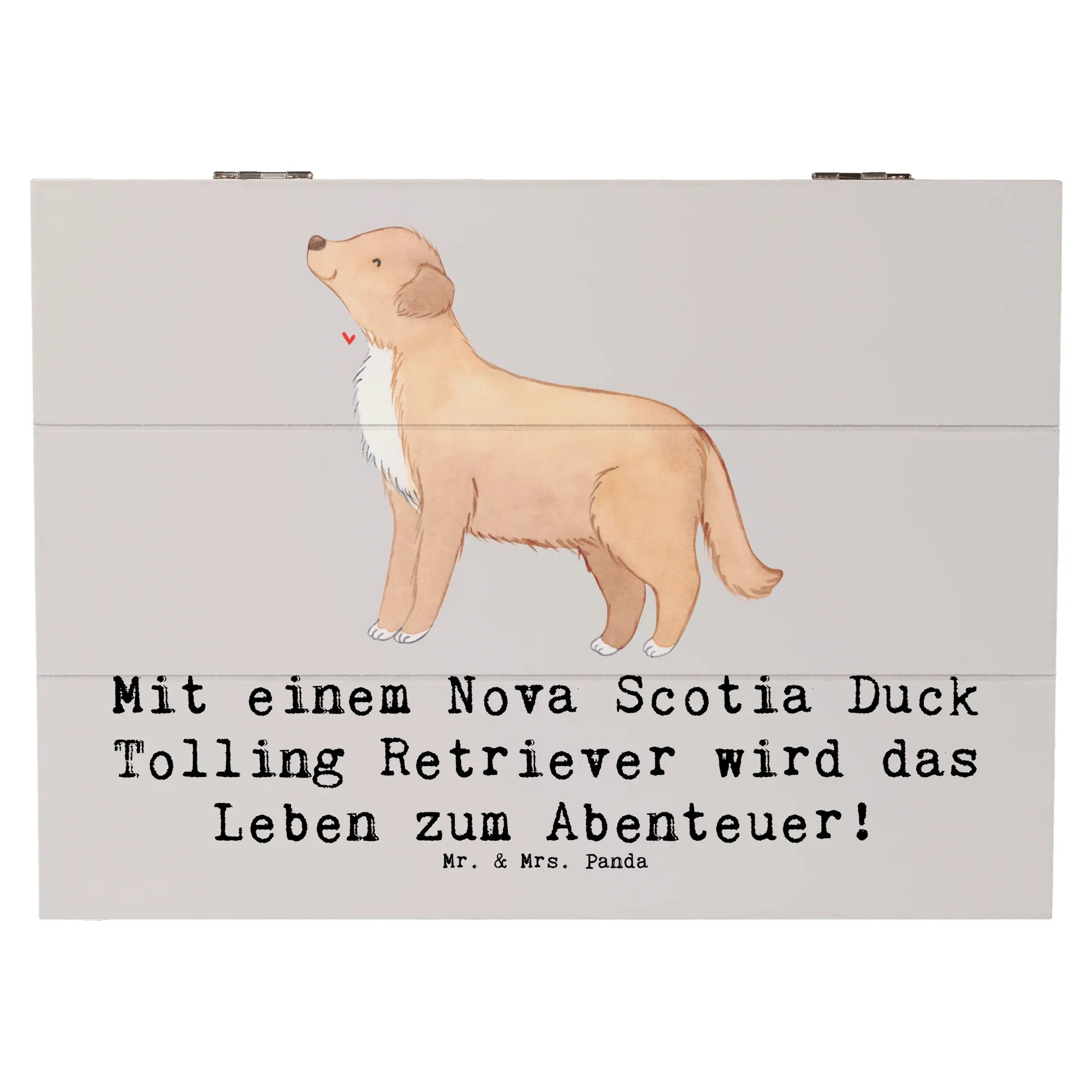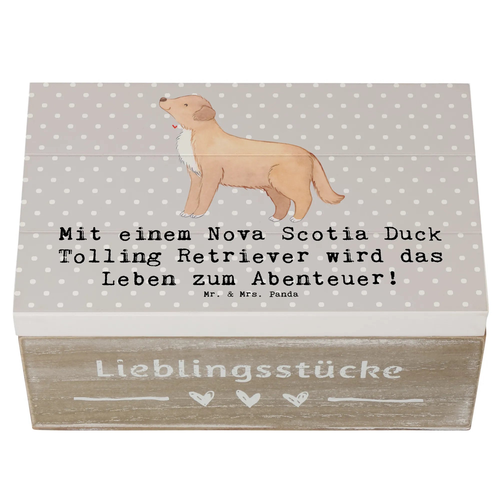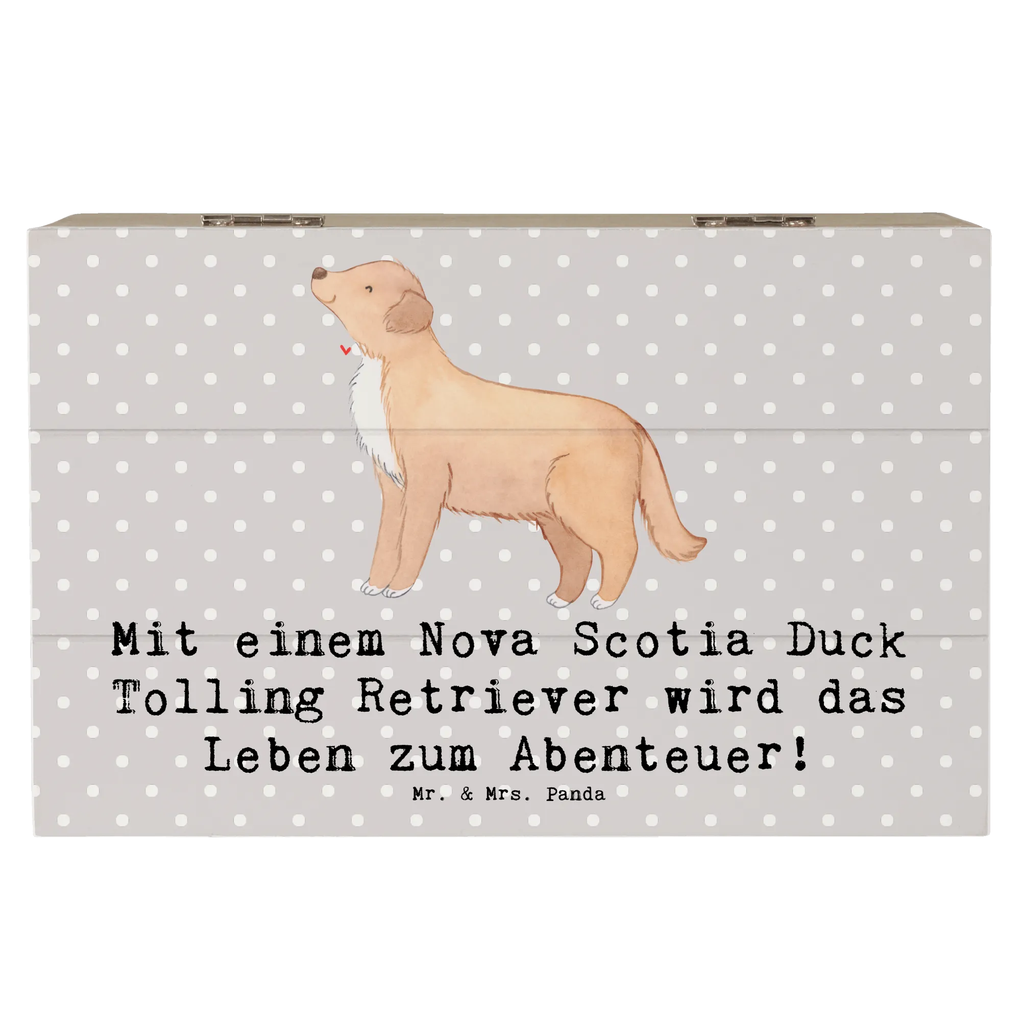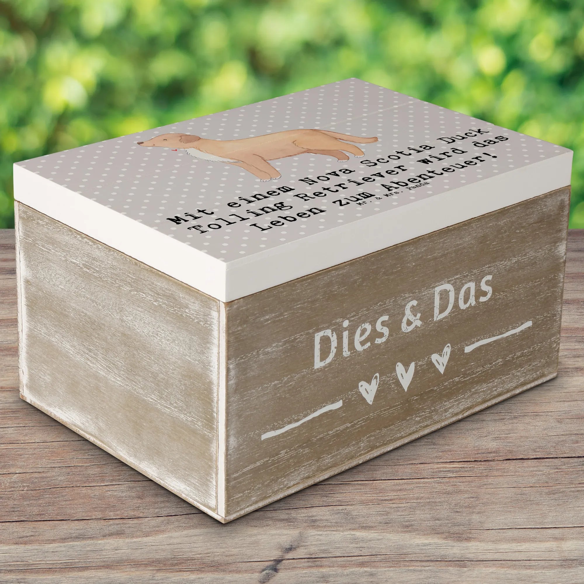 Diese wunderschöne Holzkiste, bedruckt mit einem niedlichen Motiv des Nova Scotia Duck Tolling Retrievers und dem Spruch 'Mit einem Nova Scotia Duck Tolling Retriever wird das Leben zum Abenteuer!', ist ein absolutes Muss für alle Hundefans.