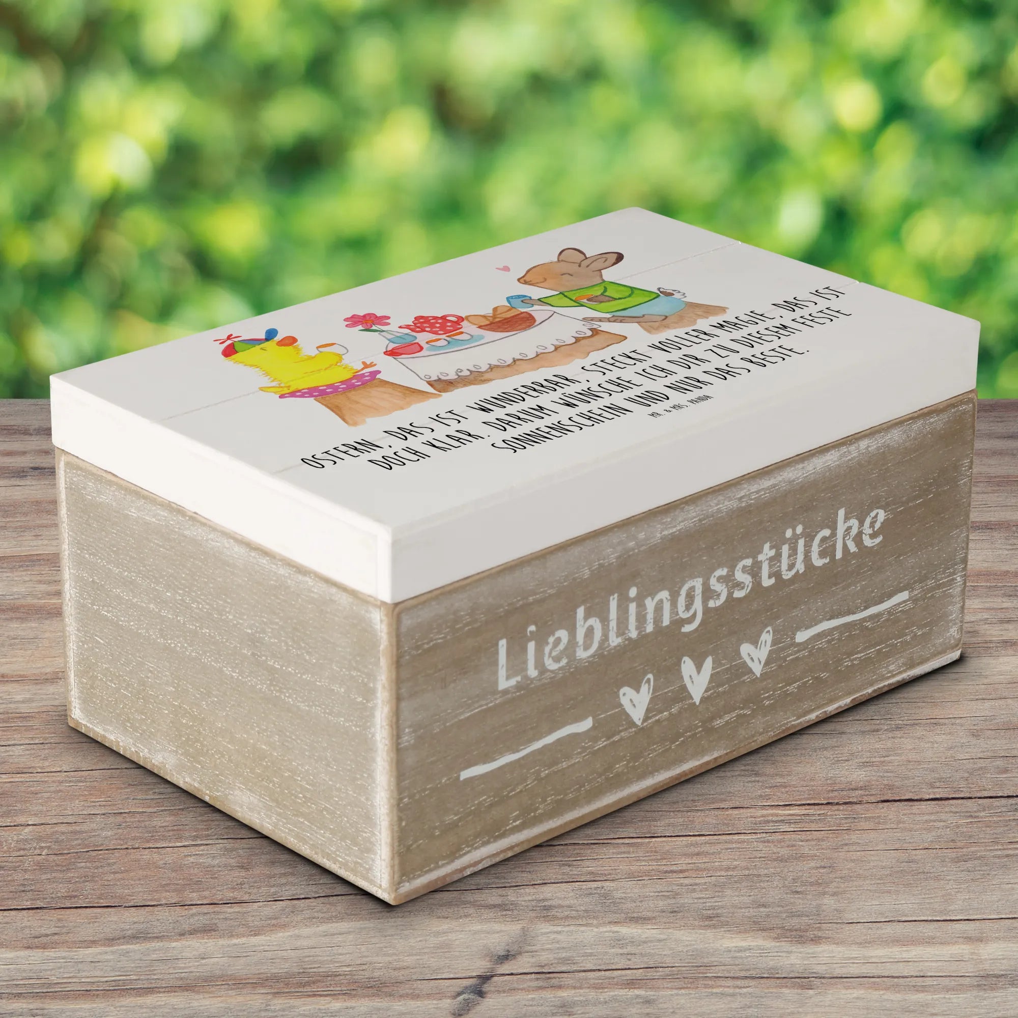 Egal ob du Ostergeschenke für Kinder suchst oder eine entzückende Osterdeko zaubern möchtest, diese Kiste ist die perfekte Wahl. Der Slogan: "Ostern, das ist wunderbar, steckt voller Magie, das ist doch klar..." bringt die magische Stimmung des Osterfestes direkt zu dir nach Hause.