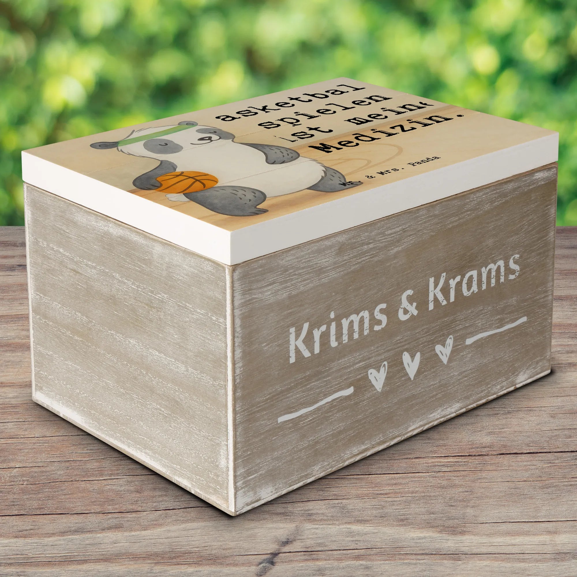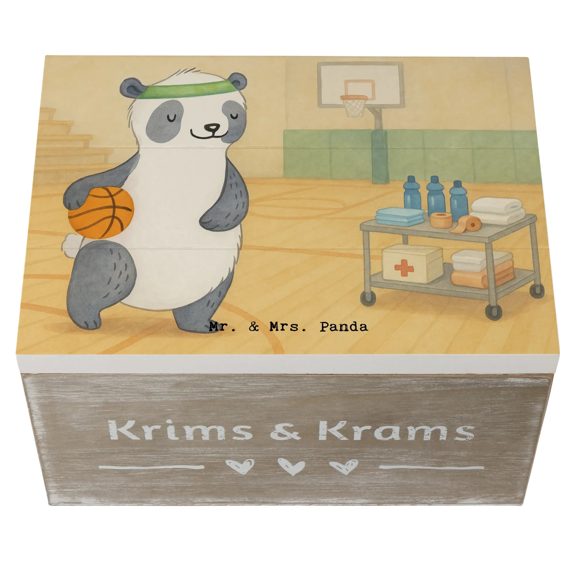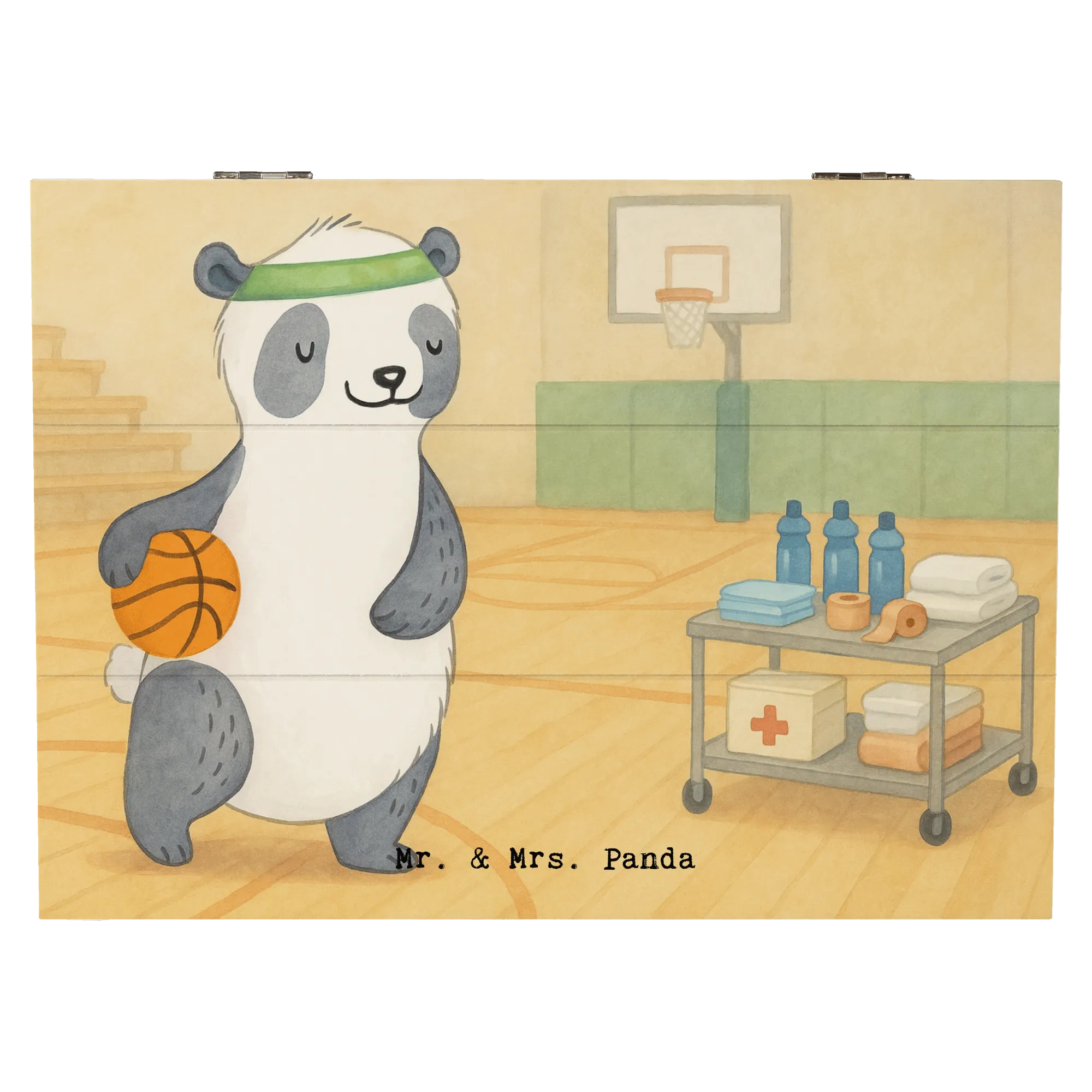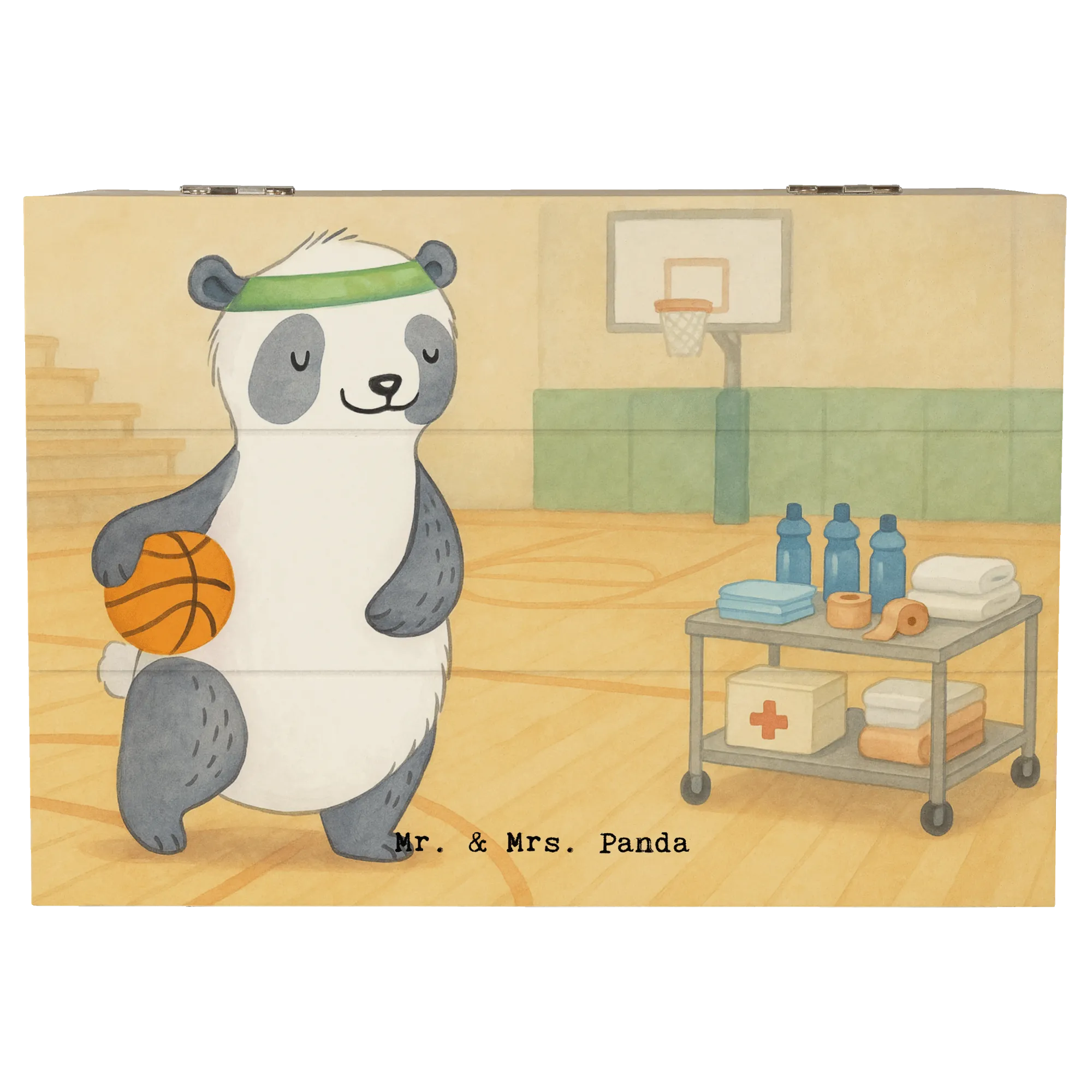 Holzkiste Panda Basketball Design - 22 x 15 cm - mit Spruch