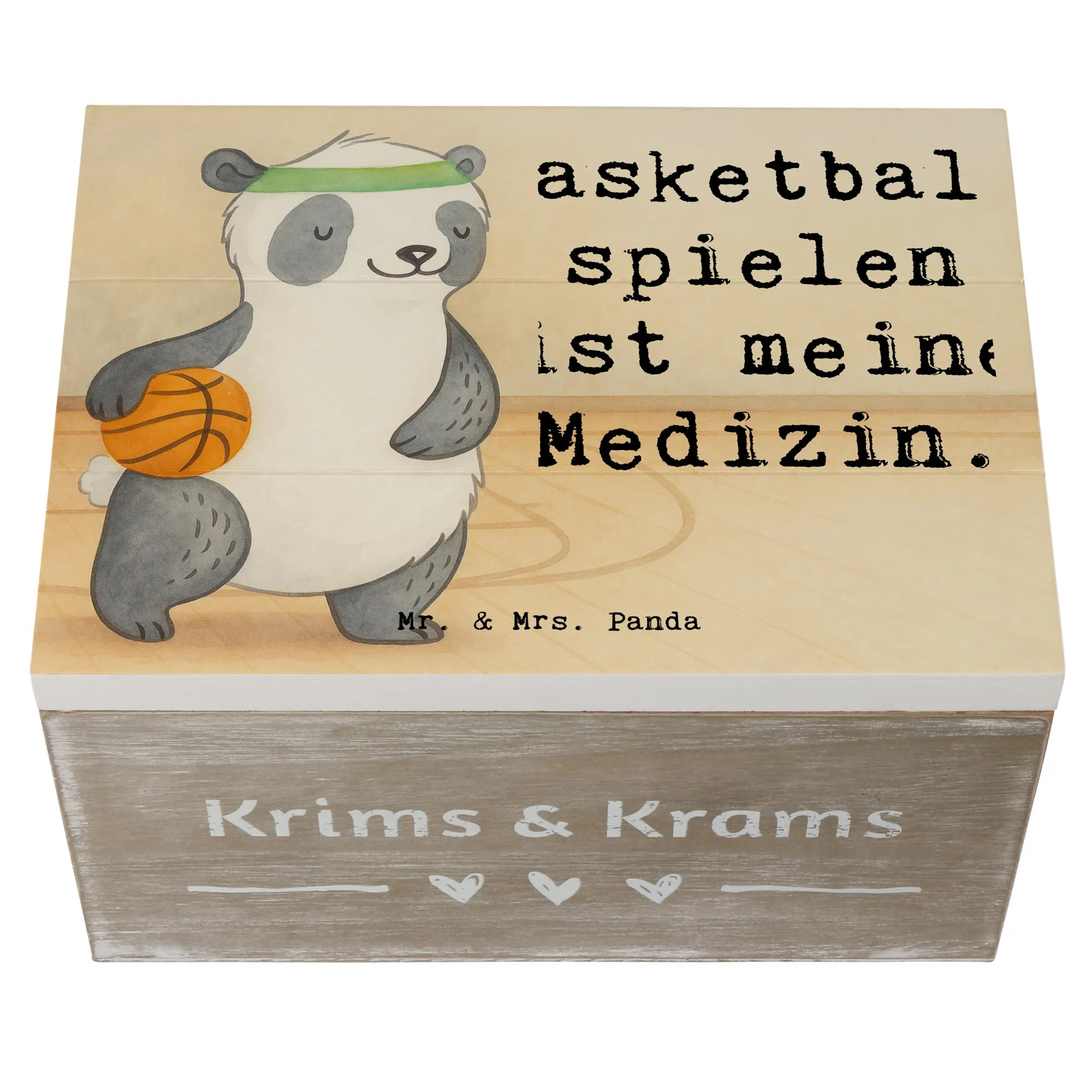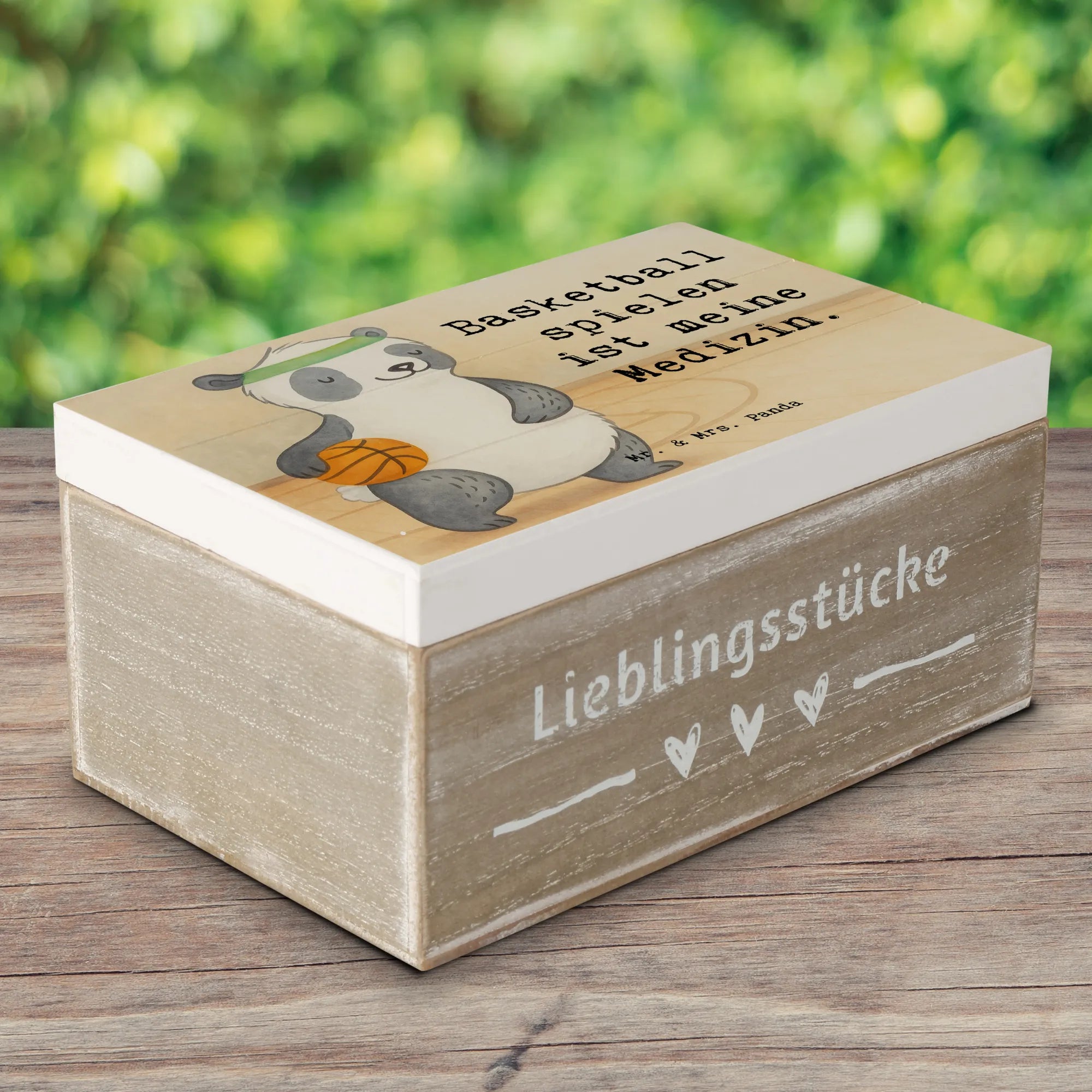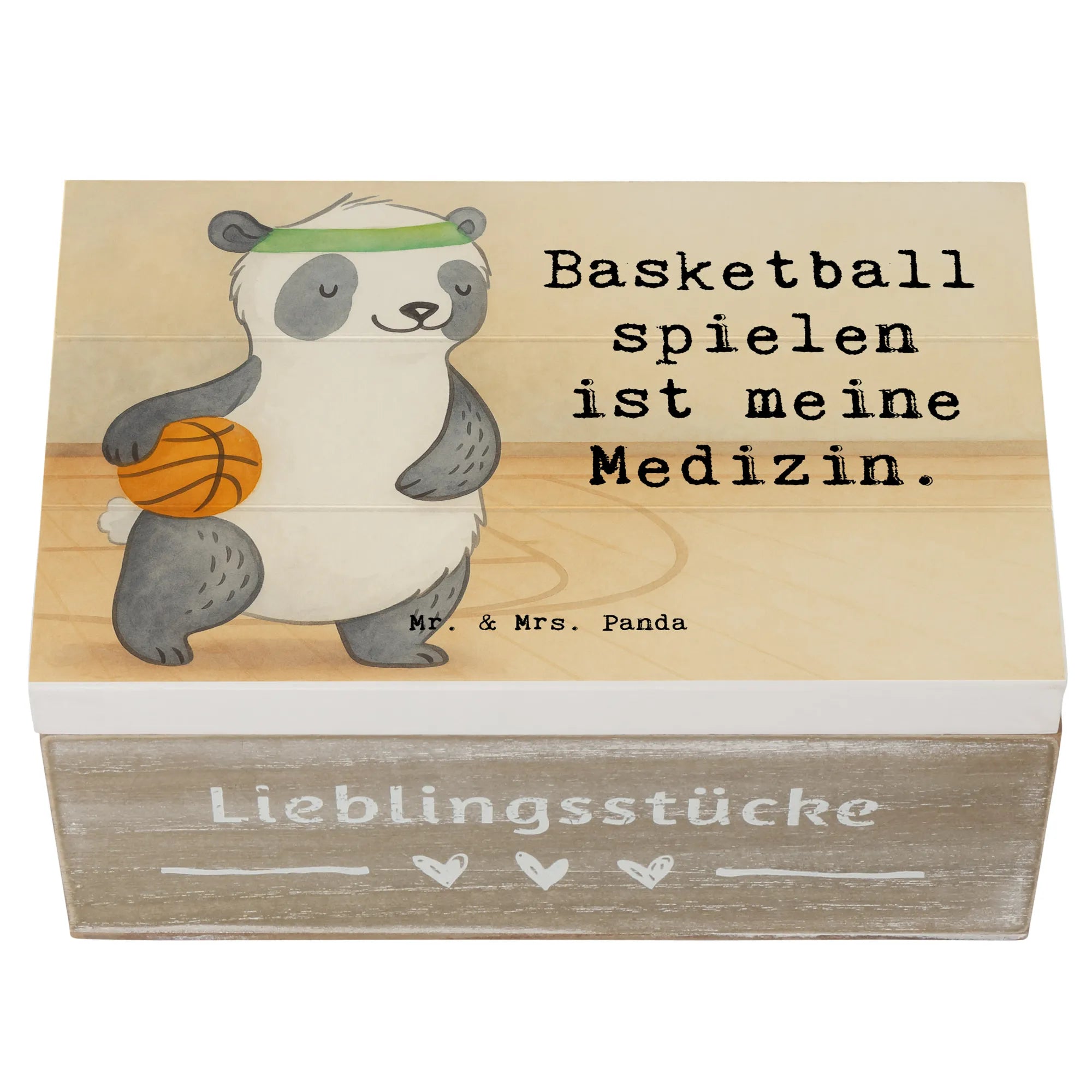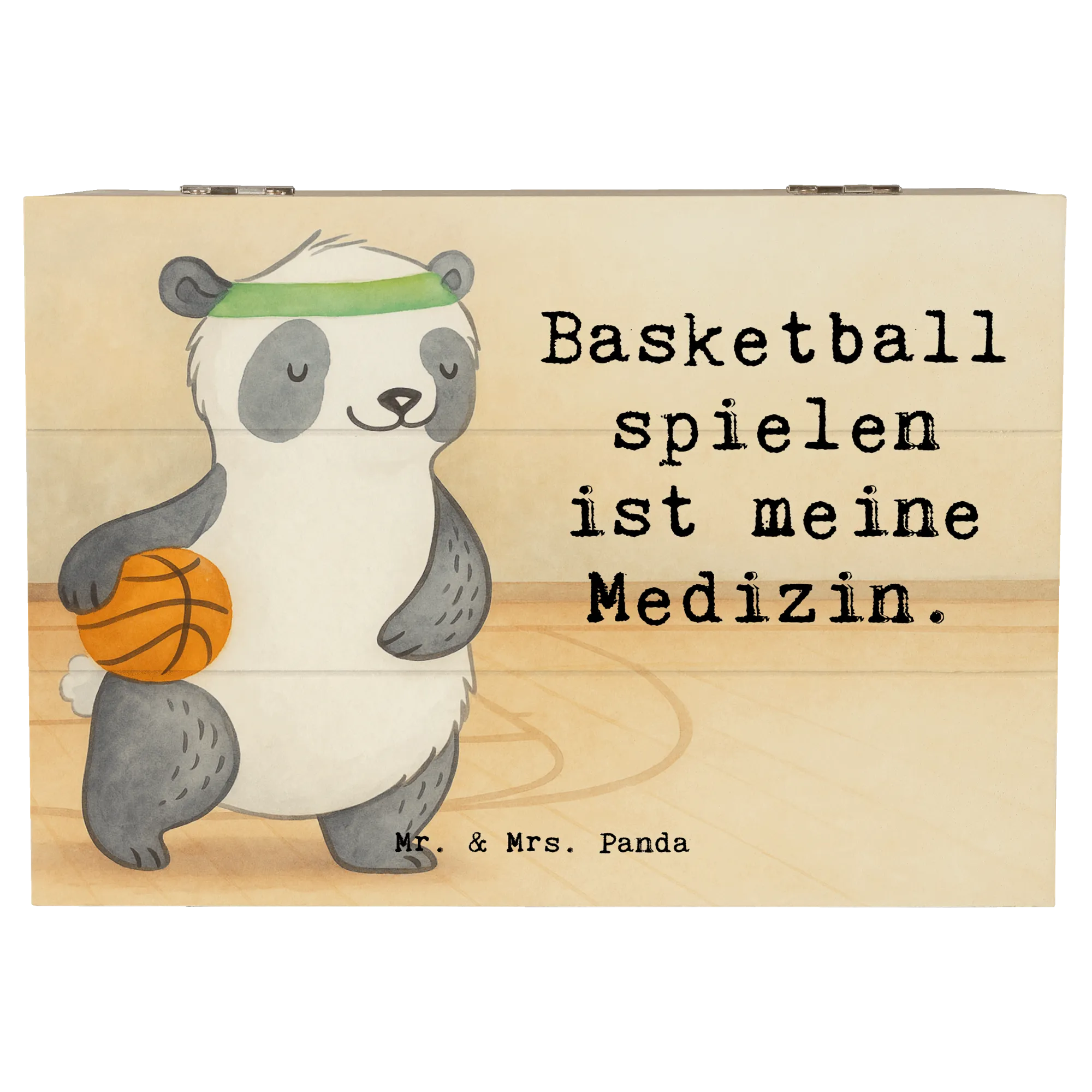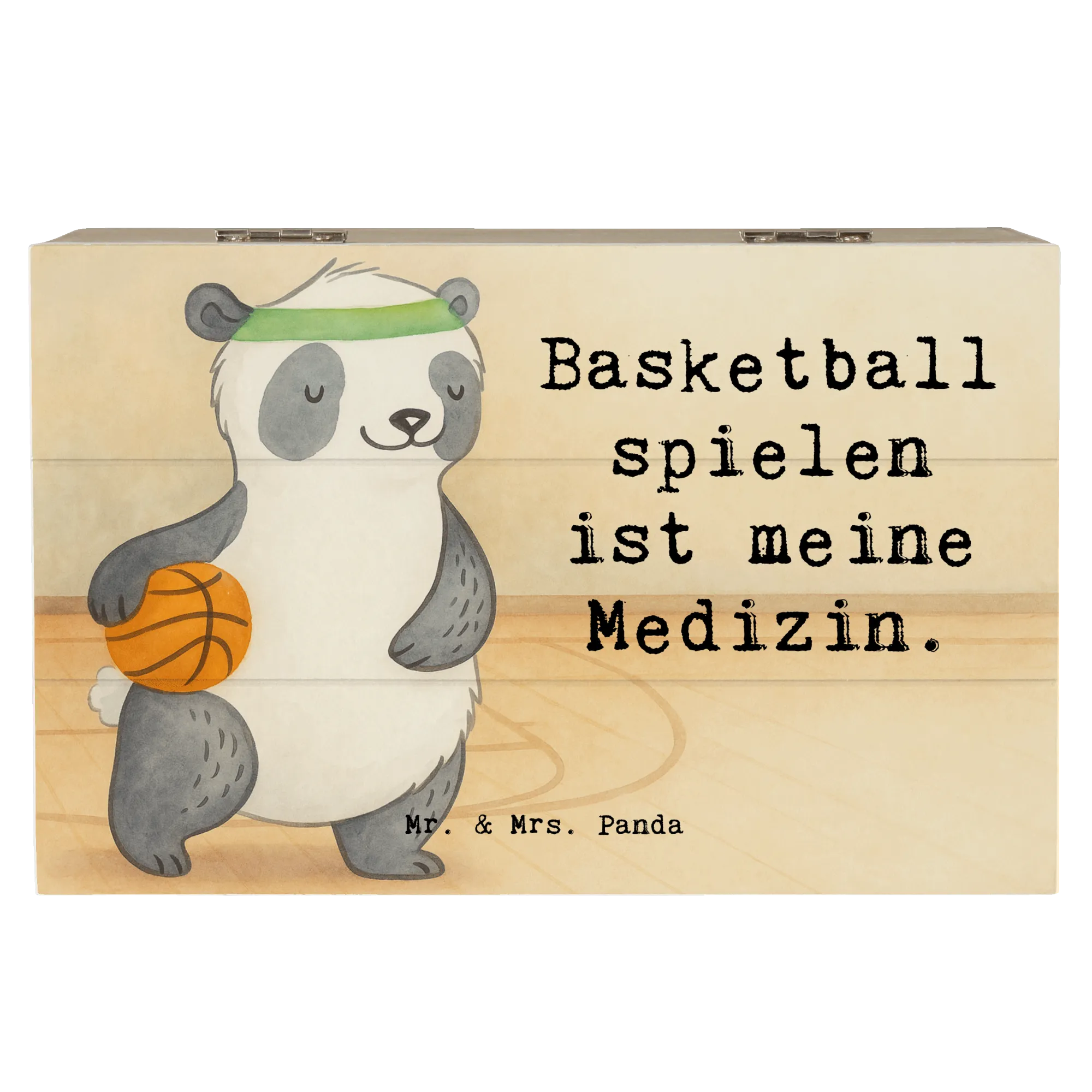Holzkiste Panda Basketball Design - 22 x 15 cm - mit Spruch