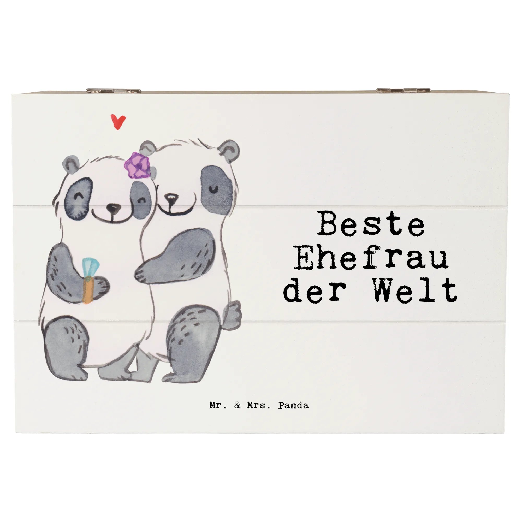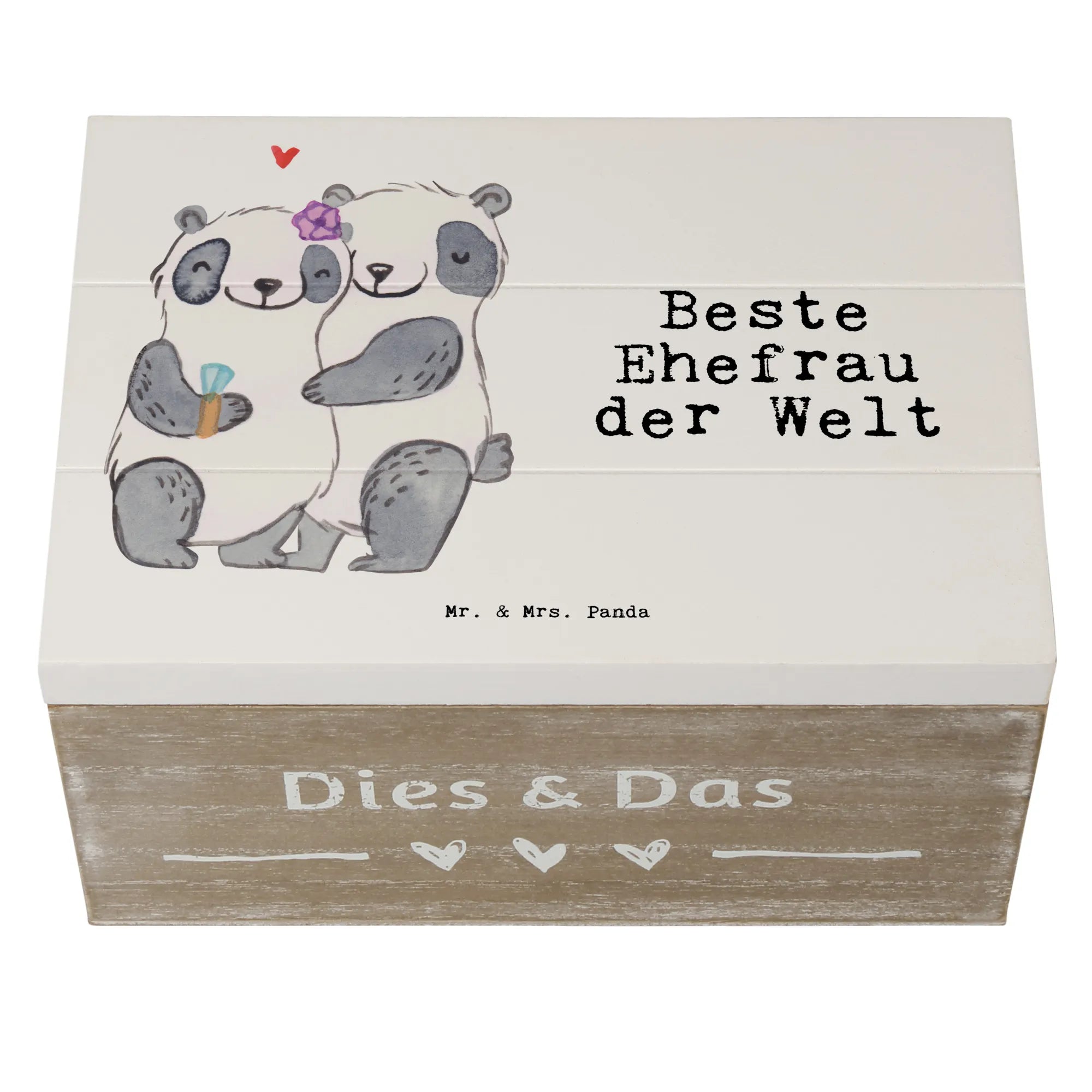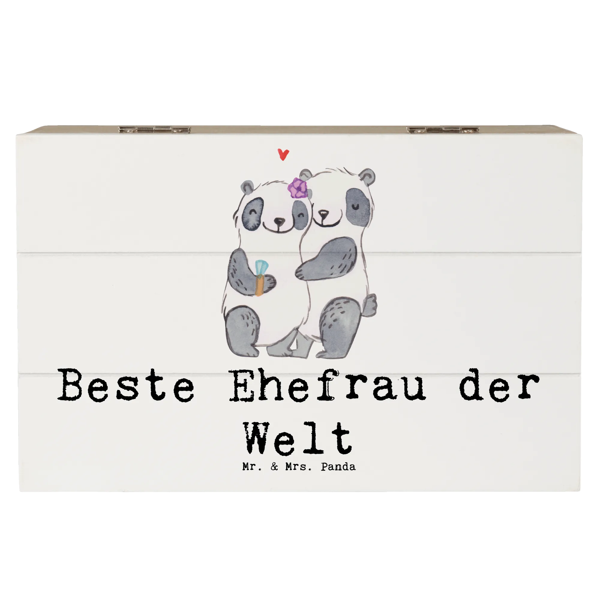 Holzkiste Panda Beste Ehefrau der Welt - 22 x 15 cm - Weiß