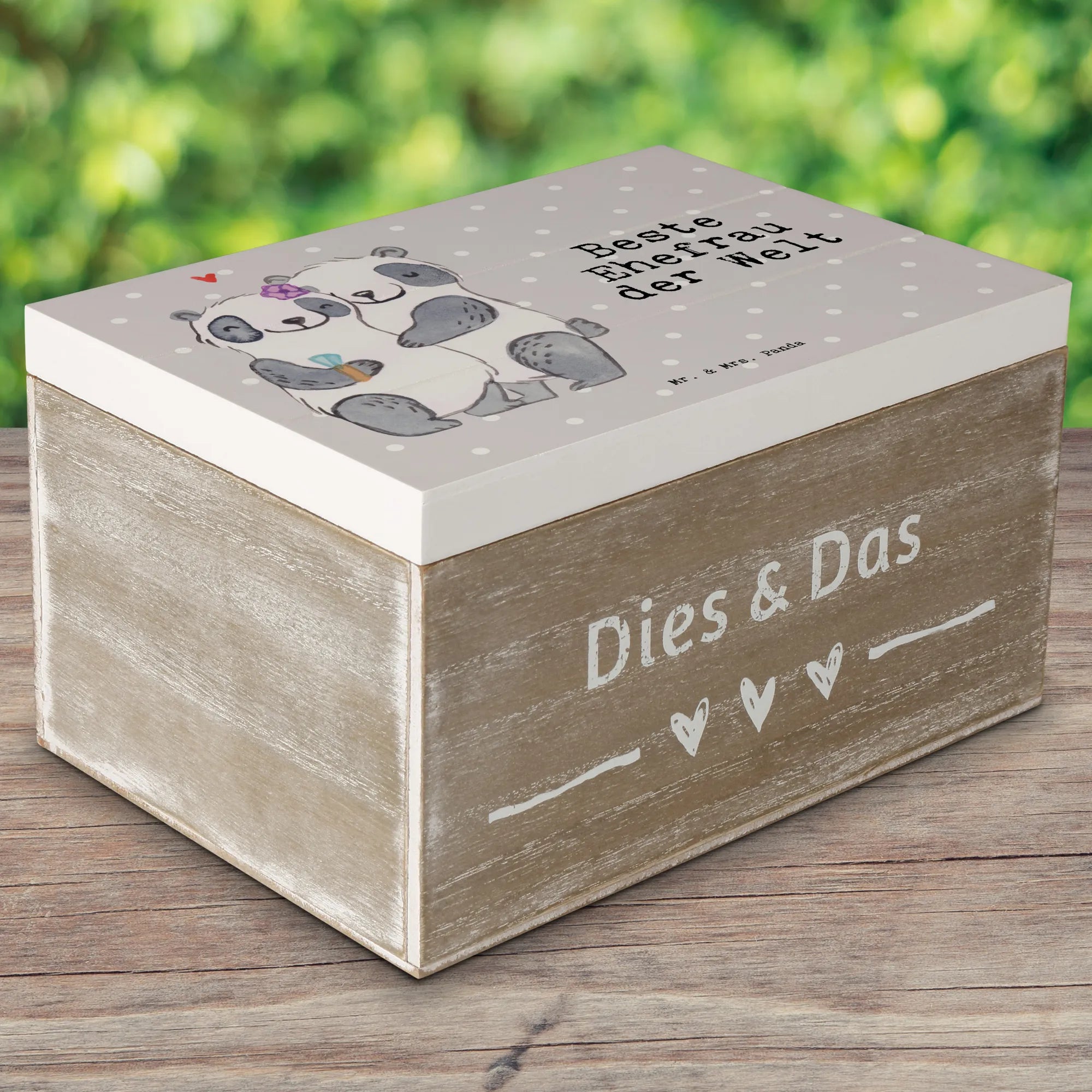 Die wunderschöne Holzkiste von Mr. & Mrs. Panda mit dem Motiv 'Beste Ehefrau der Welt' ist die perfekte Geschenkidee für alle, die ihrer Partnerin eine besondere Freude machen möchten. Egal ob zum Geburtstag, als kleines Dankeschön oder als traumhaftes Hochzeitsgeschenk – diese besondere Kiste wird mit garantiertem Staunen und Freude überreicht.