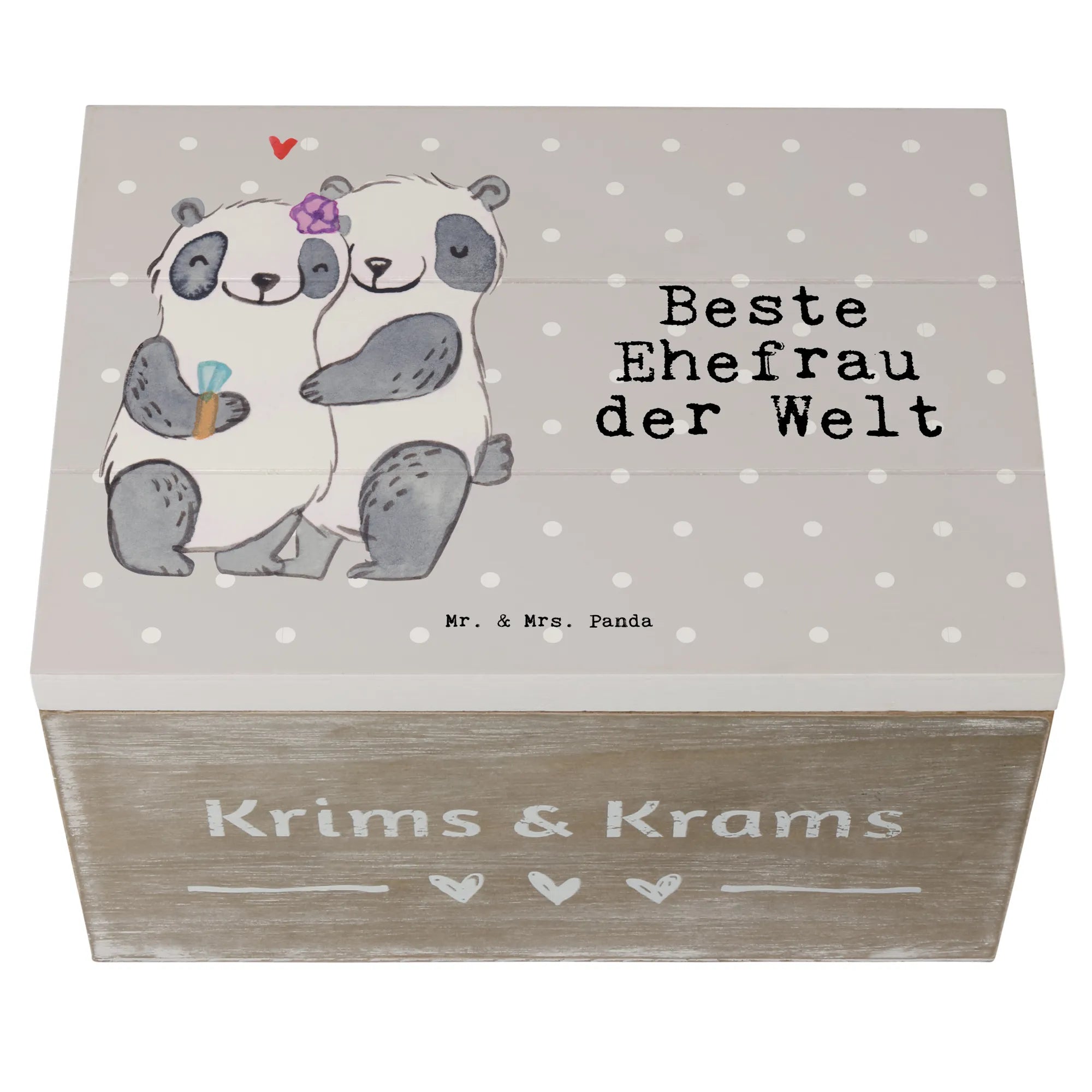 Die Holzkiste "Beste Ehefrau der Welt" von Mr. & Mrs. Panda ist das perfekte Geschenk für die liebe Ehefrau, die du wertschätzt. Diese wunderschöne Aufbewahrungsbox hat die Maße 190 mm x 120 mm x 100 mm und bietet genug Platz für all die kleinen Schätze und Erinnerungen, die sich im Laufe der Zeit angesammelt haben.
