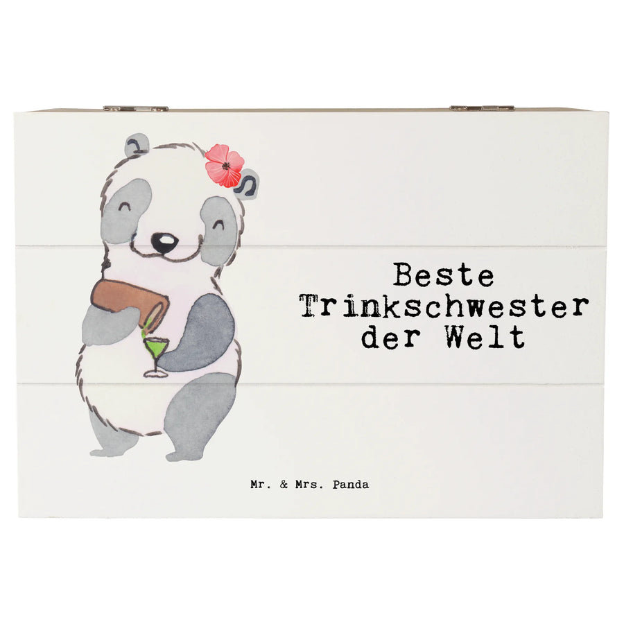 Holzkiste Panda Beste Trinkschwester der Welt - 22 x 15 cm - Weiß