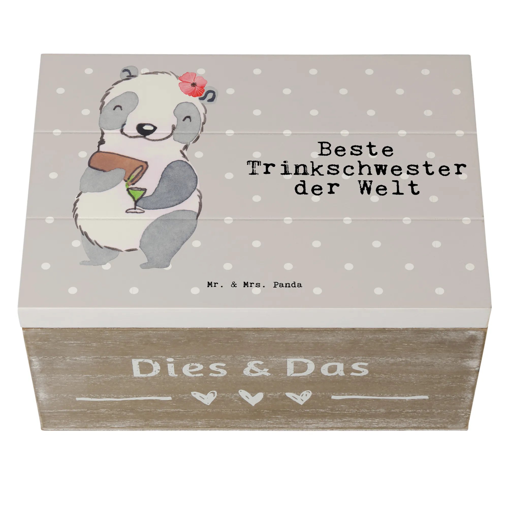 Mit dem süßen Panda-Motiv und dem liebevollen Spruch "Beste Trinkschwester der Welt" bringst du nicht nur ein Lächeln auf ihr Gesicht, sondern schaffst auch einen besonderen Ort für all ihre Schätze und Erinnerungen. Ob für die nächste Party, den Geburtstag deiner besten Freundin oder einfach als kleine Aufmerksamkeit – diese Kiste ist stets das ideale Mitbringsel!