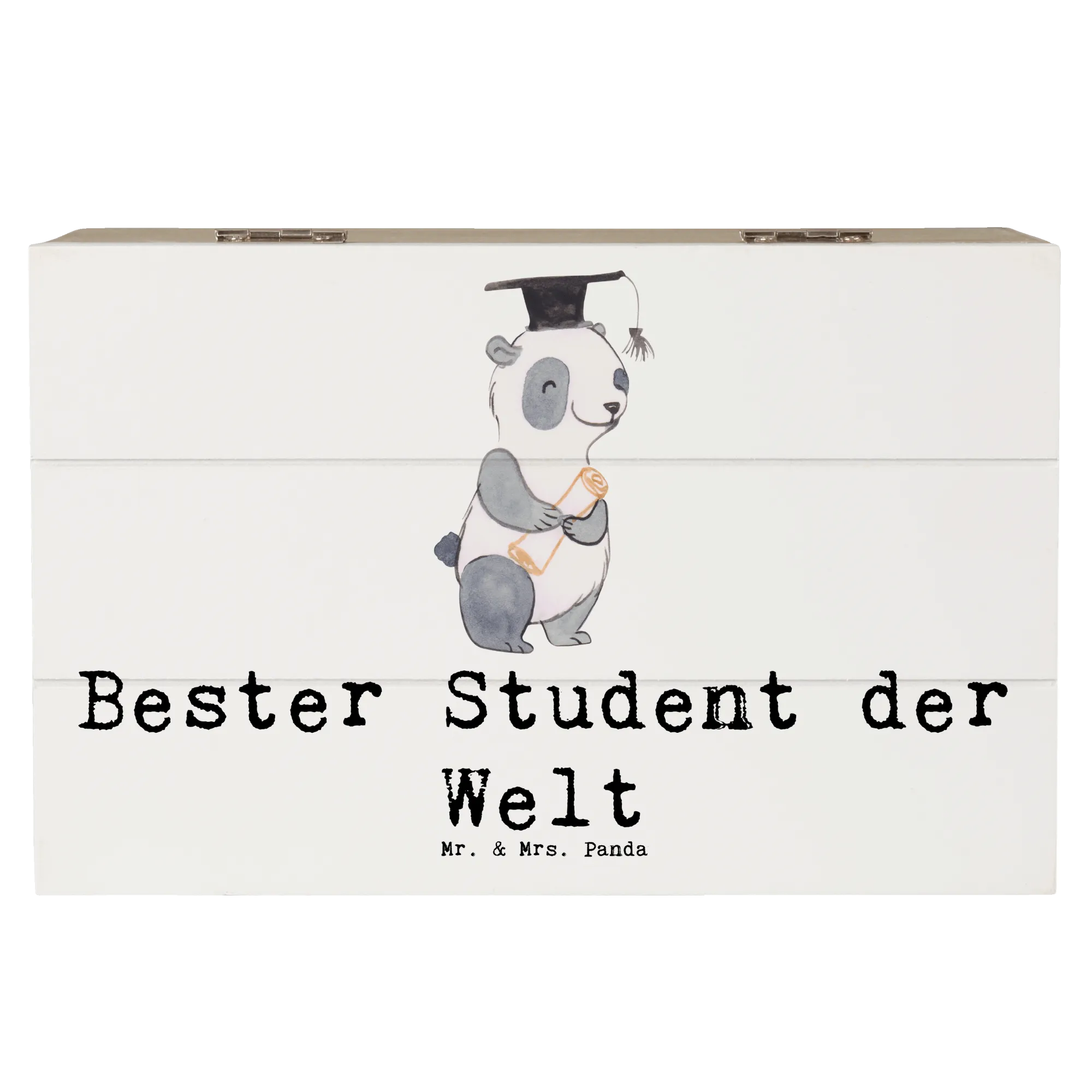 Holzkiste Panda Bester Student der Welt - 22 x 15 cm - Weiß
