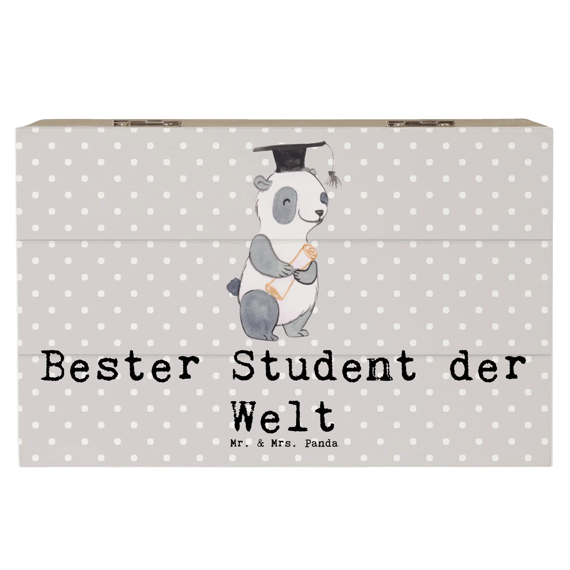 Mit einem tollen Motiv, das einen süßen Panda zeigt, der stolz die Auszeichnung 'Bester Student der Welt' trägt, wird diese Kiste zu einem ganz besonderen Aufbewahrungsort für Fotos, Dokumente oder Andenken an die Studienzeit.
