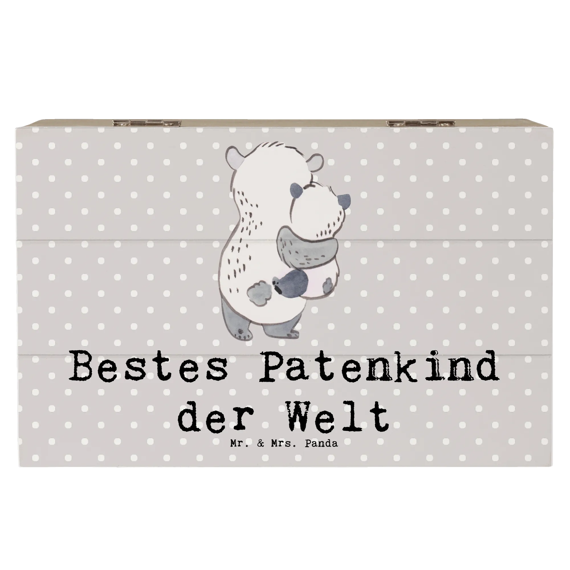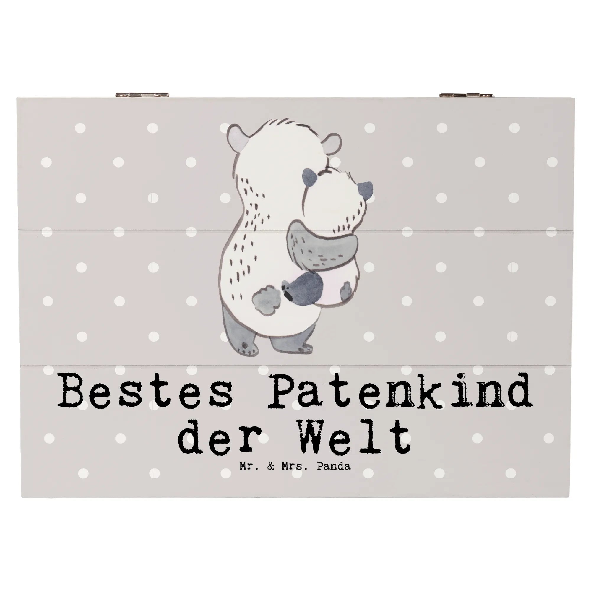 Durch ihr liebevolles Design, das einen süßen Panda zeigt, der sein Patenkind umarmt, wird sie nicht nur zu einem praktischen Aufbewahrungsort für all die kleinen Schätze, die das Patenkind sammelt, sondern auch zu einem einzigartigen Erinnerungsstück voller Emotionen.