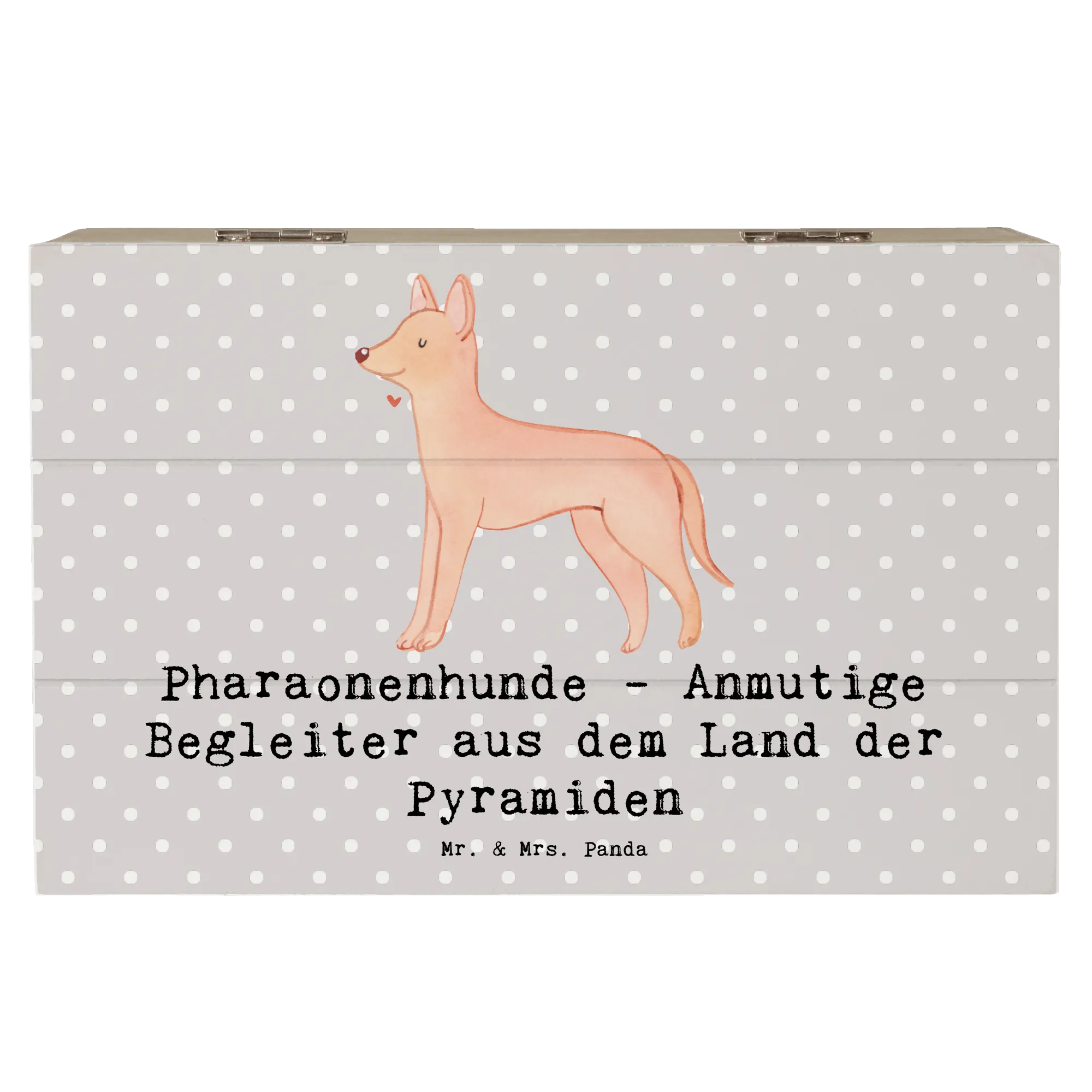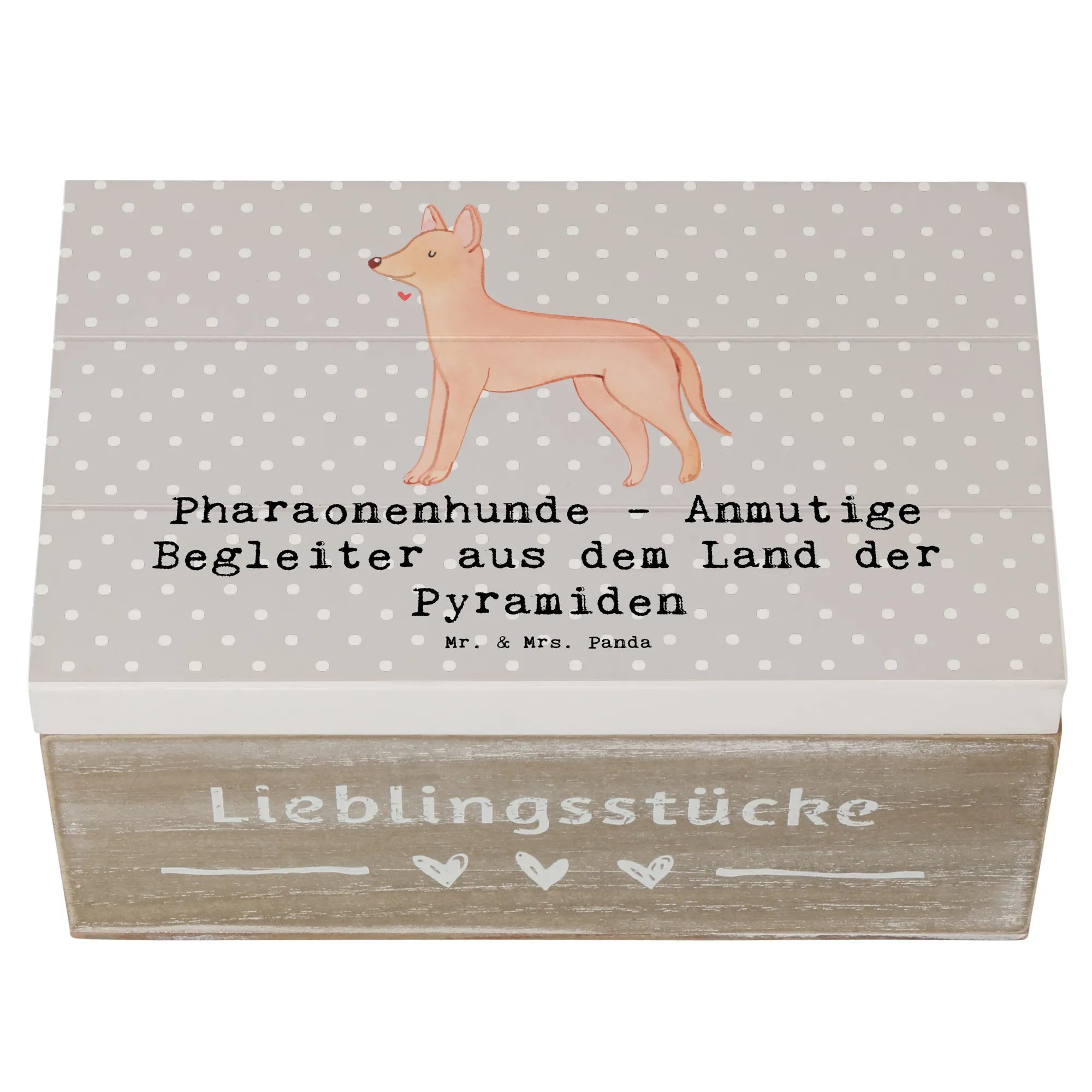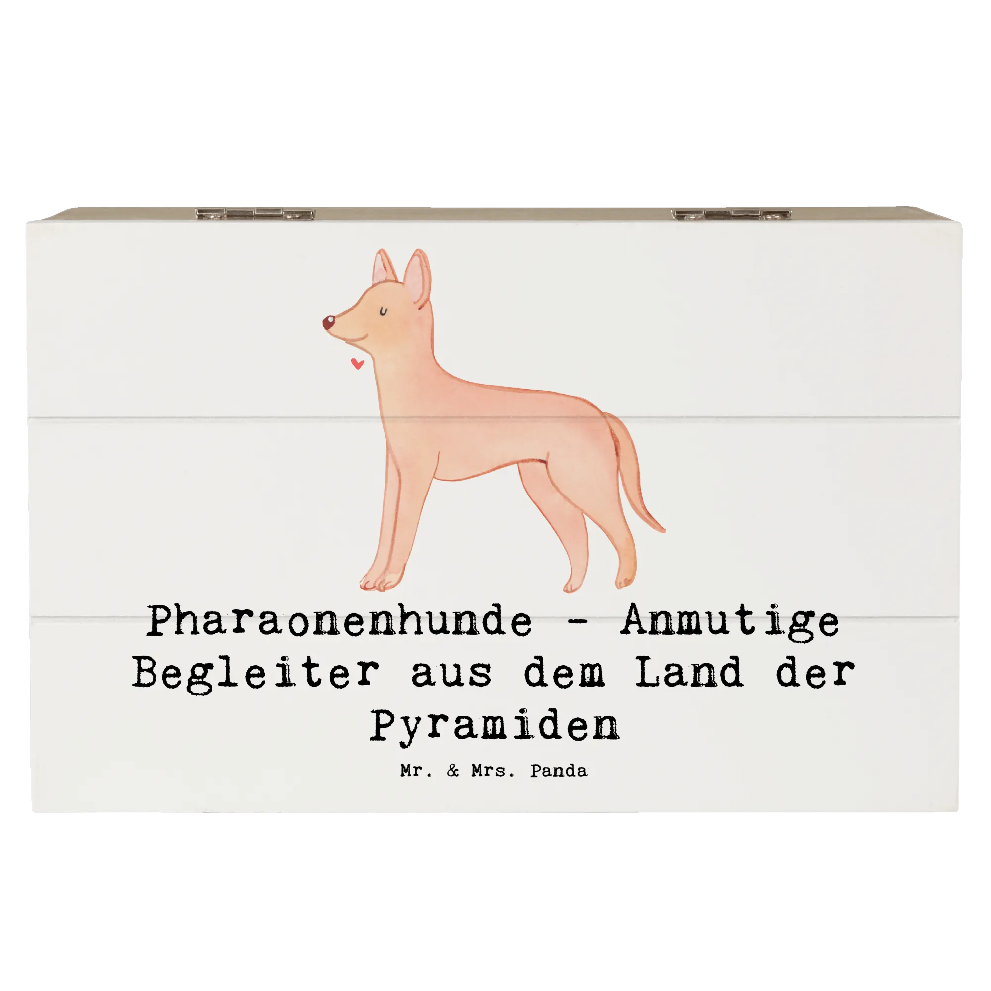 Die wunderschöne Holzkiste von Mr. & Mrs. Panda mit dem Motiv "Pharaonenhund - Anmutige Begleiter aus dem Land der Pyramiden" ist das perfekte Geschenk für alle Hundefans und Tierliebhaber. Diese stabile und langlebige Kiste eignet sich ideal als Erinnerungskiste für die besonderen Anlässe im Leben, sei es für die Kindheit, die Kommunion oder die Konfirmation.