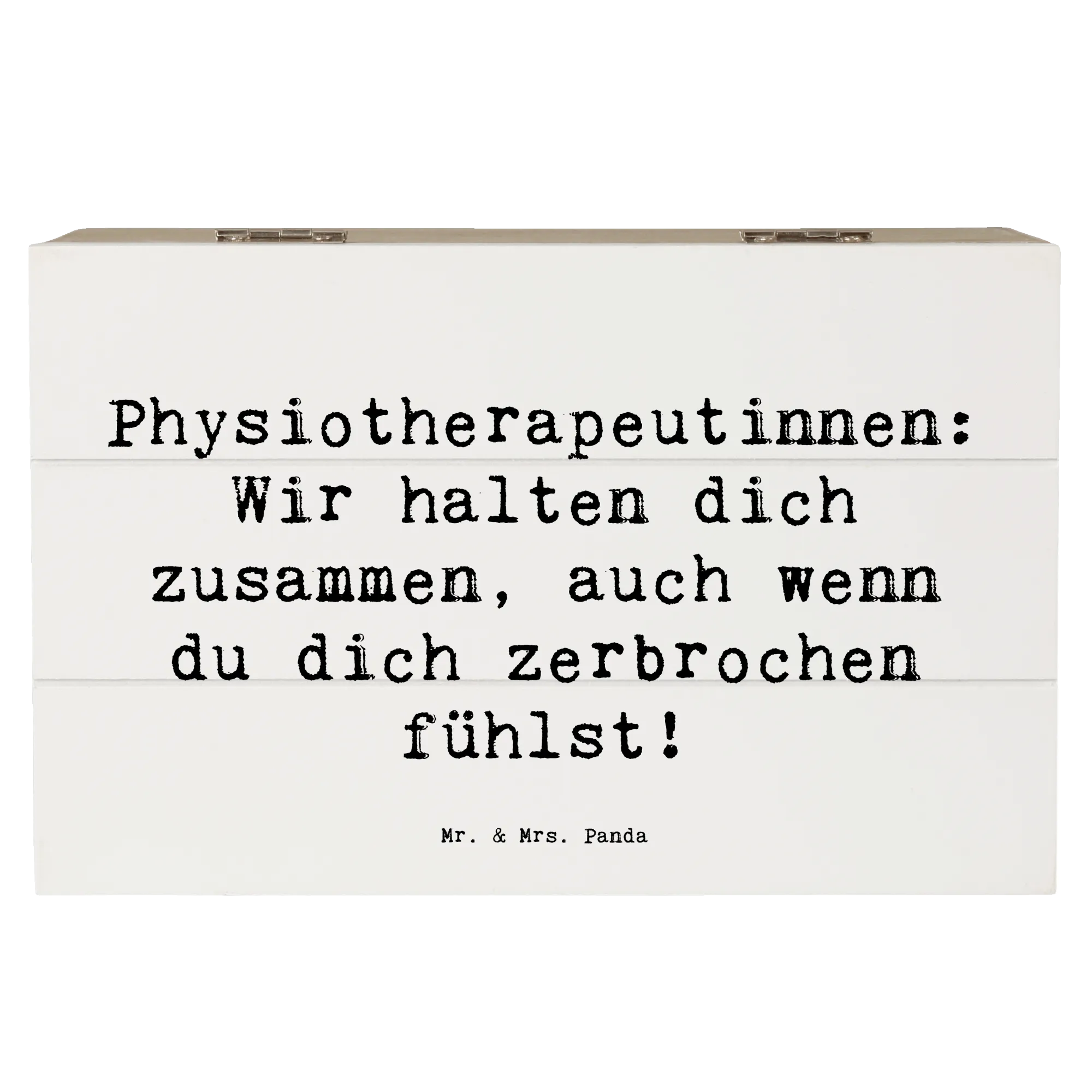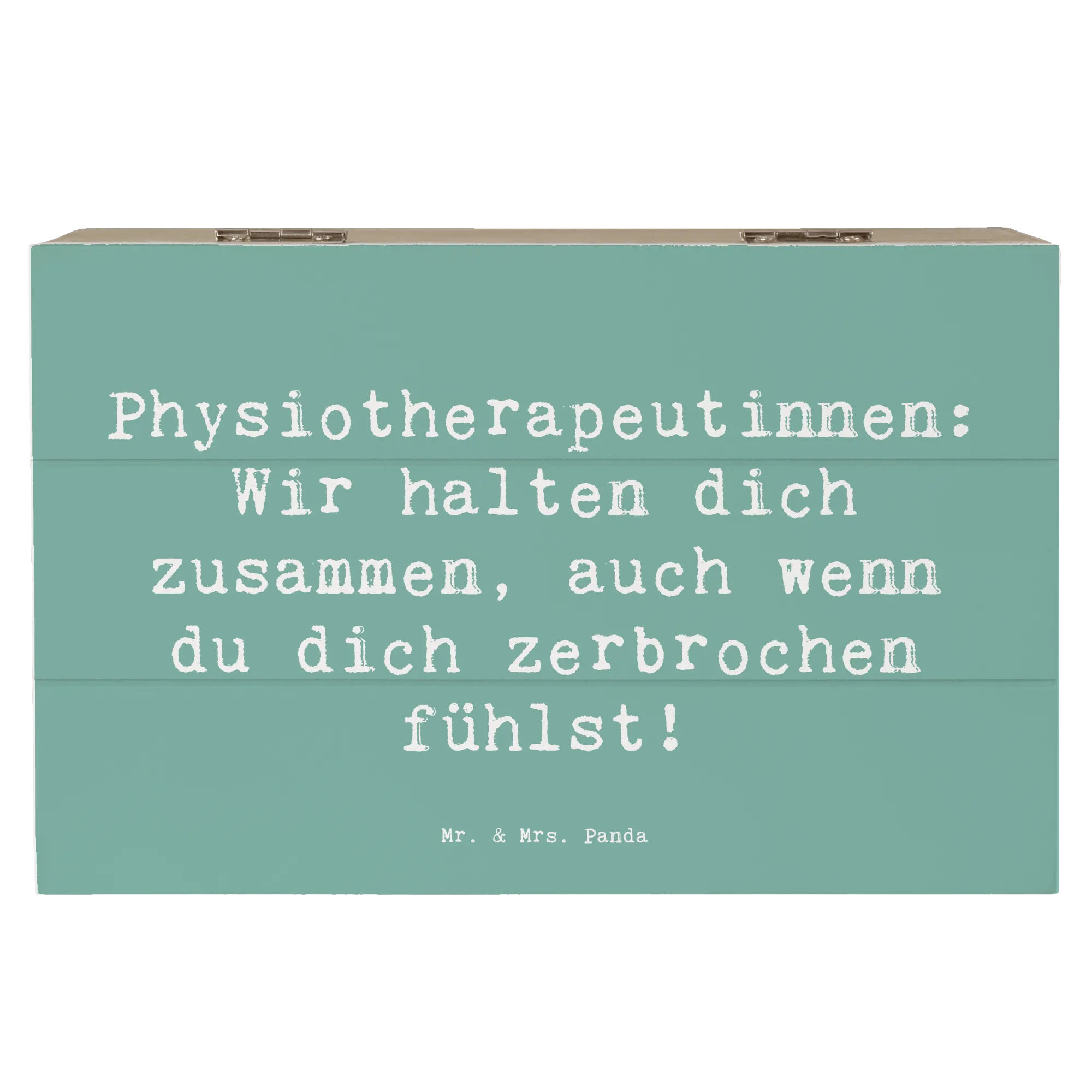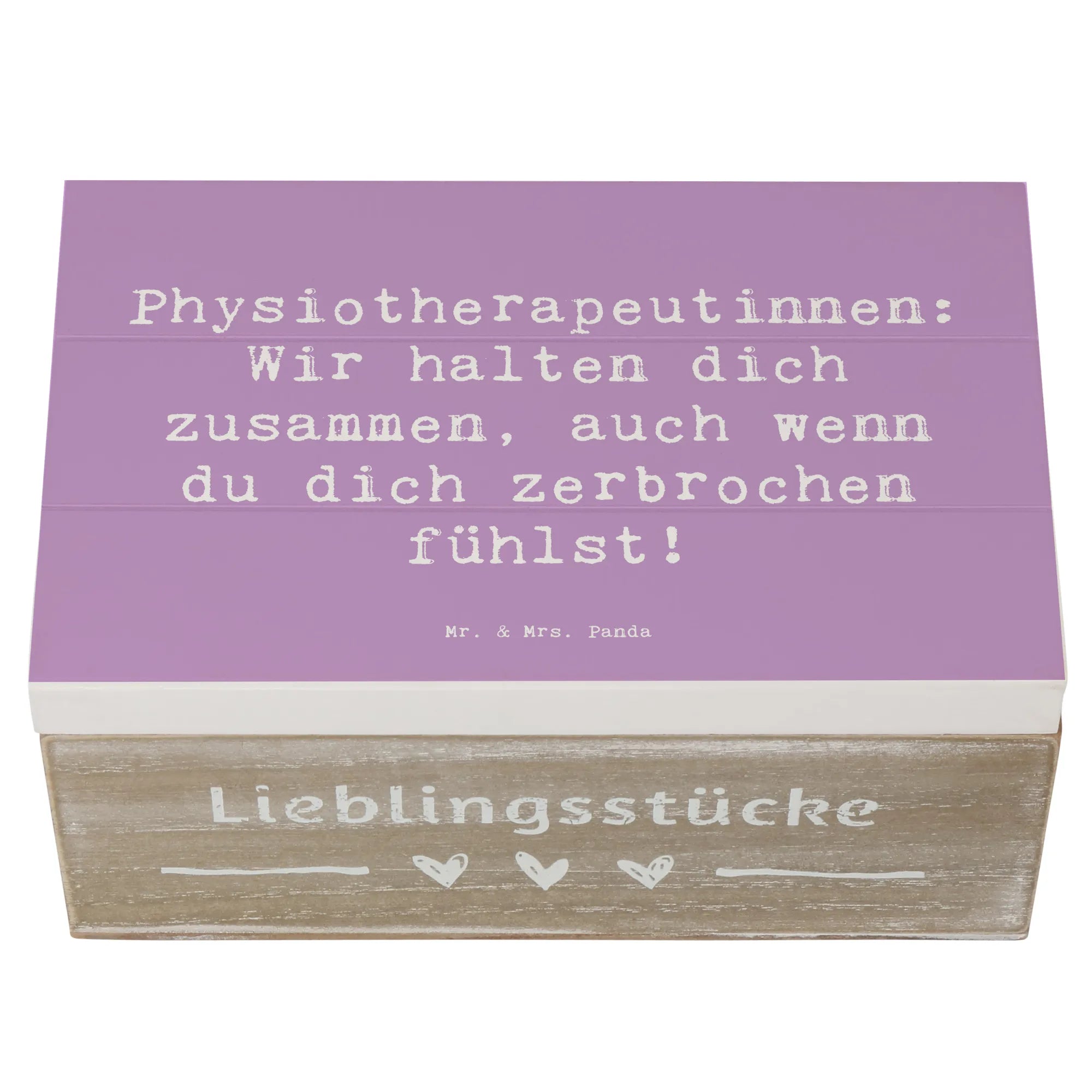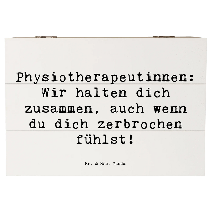 Die Holzkiste „Physiotherapeutin“ von Mr. & Mrs. Panda ist das perfekte Geschenk für alle, die in diesem anspruchsvollen Beruf tätig sind. Sie ist nicht nur ein wunderschöner Aufbewahrungsort für Erinnerungen, sondern auch ein liebevolles Statement. Mit dem originellen Spruch "Physiotherapeutinnen: Wir halten dich zusammen, auch wenn du dich zerbrochen fühlst!" vermittelt diese Kiste Wertschätzung und Anerkennung.