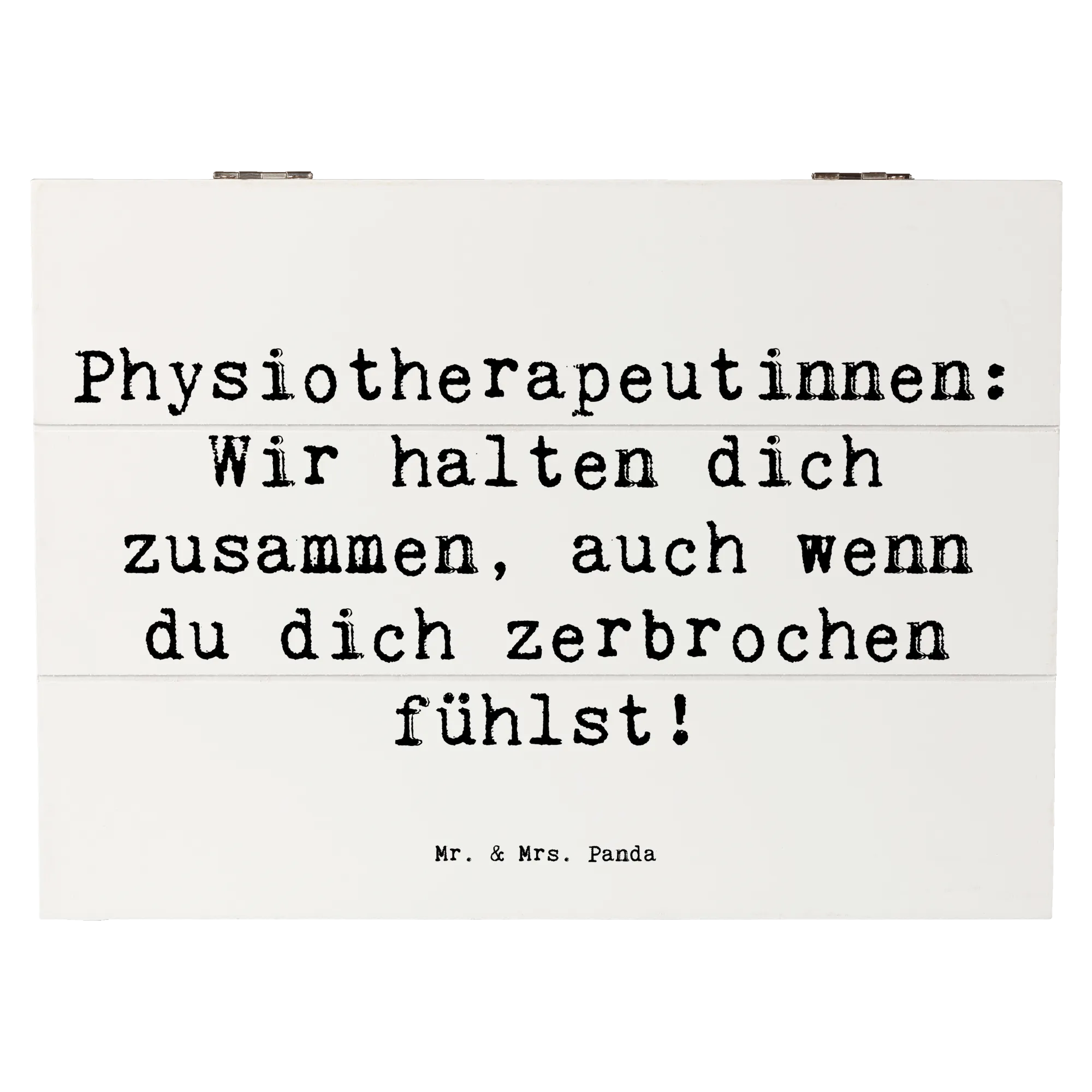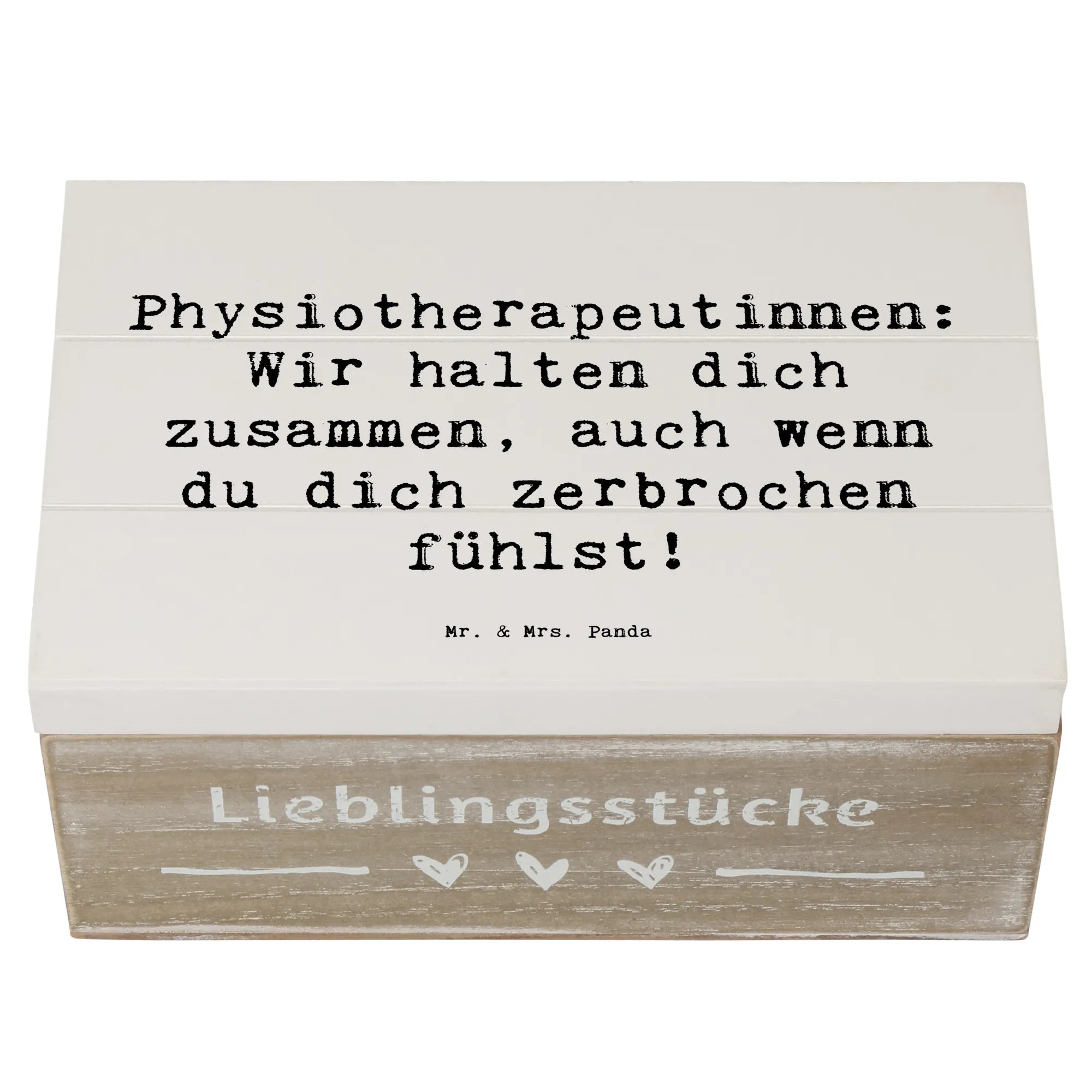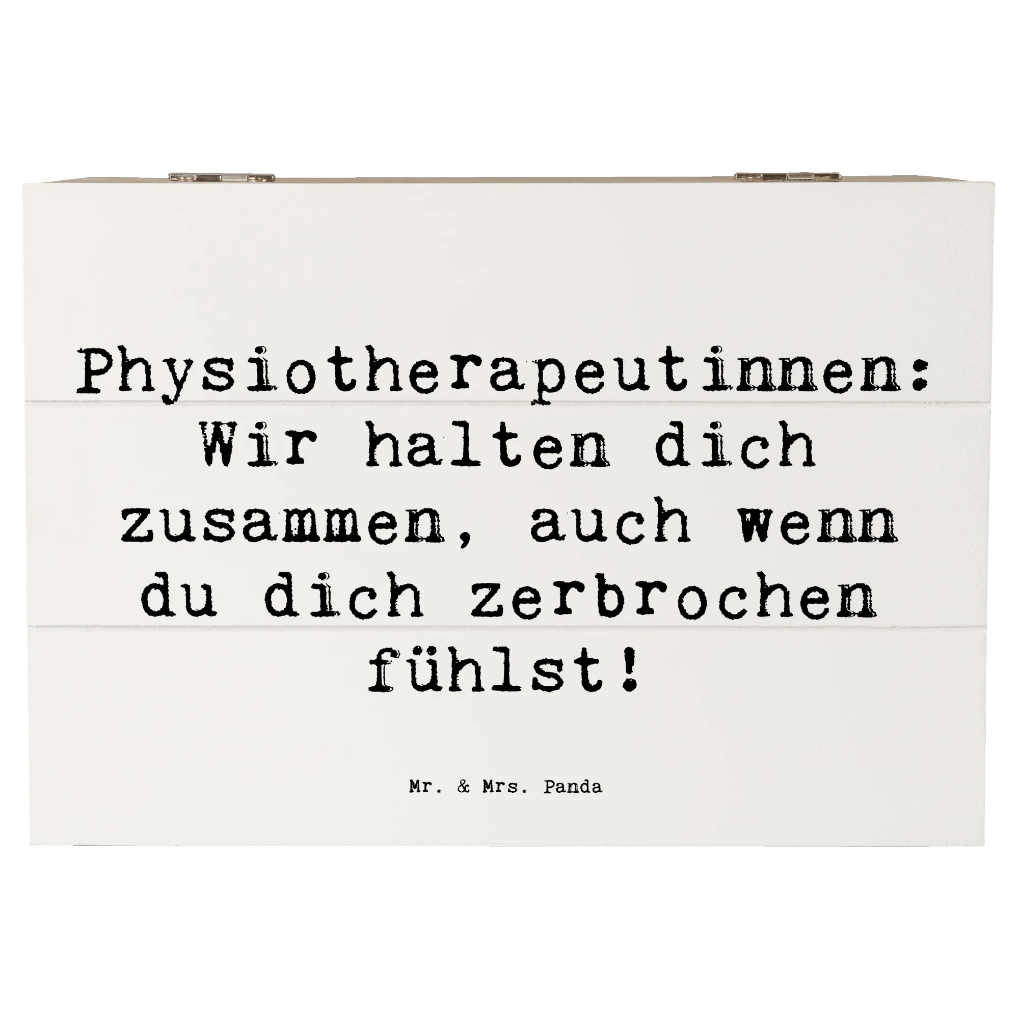 Die Holzkiste „Physiotherapeutin“ von Mr. & Mrs. Panda ist das perfekte Geschenk für alle, die in diesem anspruchsvollen Beruf tätig sind. Sie ist nicht nur ein wunderschöner Aufbewahrungsort für Erinnerungen, sondern auch ein liebevolles Statement. Mit dem originellen Spruch "Physiotherapeutinnen: Wir halten dich zusammen, auch wenn du dich zerbrochen fühlst!" vermittelt diese Kiste Wertschätzung und Anerkennung.