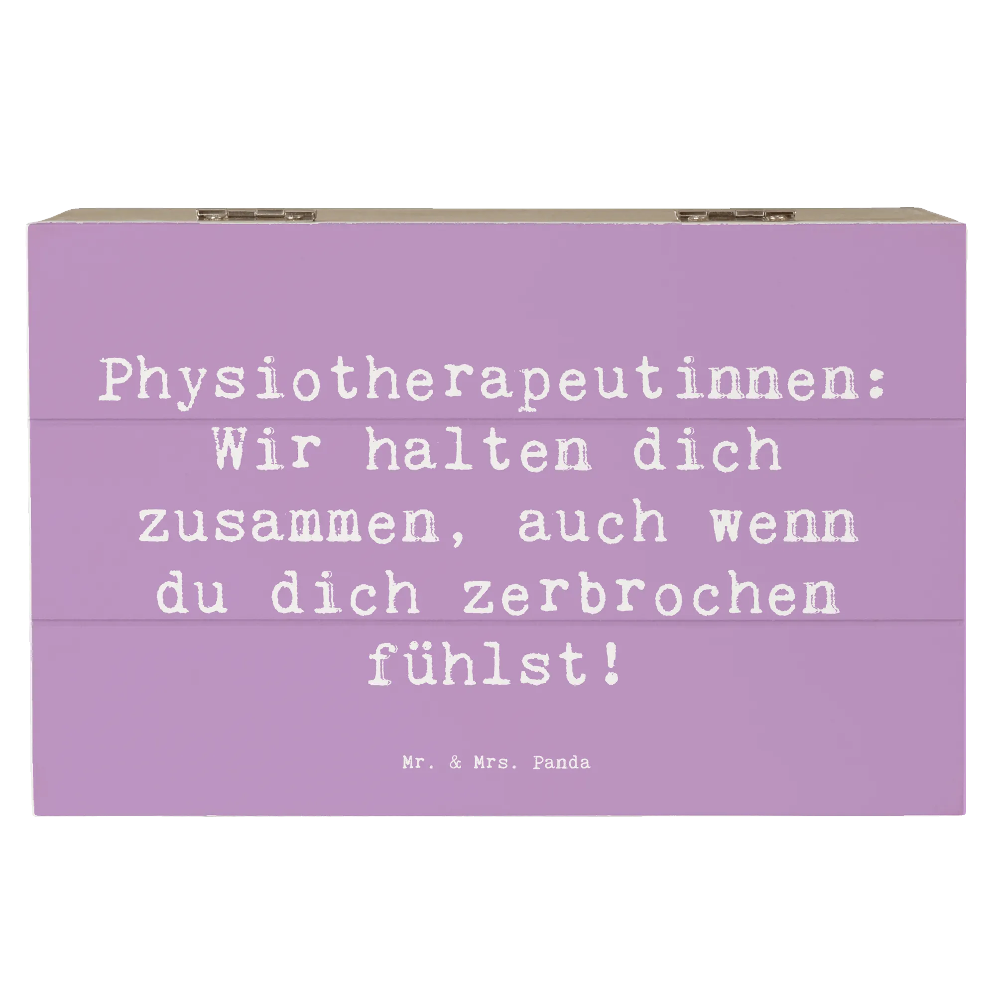 Diese liebevoll gestaltete Holzkiste von Mr. & Mrs. Panda trägt den Spruch: „Physiotherapeutinnen: Wir halten dich zusammen, auch wenn du dich zerbrochen fühlst!“ und ist damit das perfekte Geschenk für alle, die im Bereich Physiotherapie arbeiten. Das zarte Lavendeltraum-Design und die handgezeichneten Aquarell-Illustrationen verleihen der Box einen warmen, persönlichen Charakter.