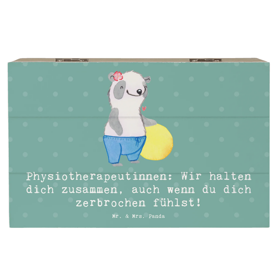Die Holzkiste von Mr. & Mrs. Panda ist ein wahres Schmuckstück für Physiotherapeutinnen! Mit dem liebevoll gestalteten Motto "Physiotherapeutinnen: Wir halten dich zusammen, auch wenn du dich zerbrochen fühlst!" ist diese Kiste nicht nur ein praktischer Aufbewahrungsort, sondern auch eine wunderbare Erinnerung an die harte und wertvolle Arbeit in diesem Beruf.