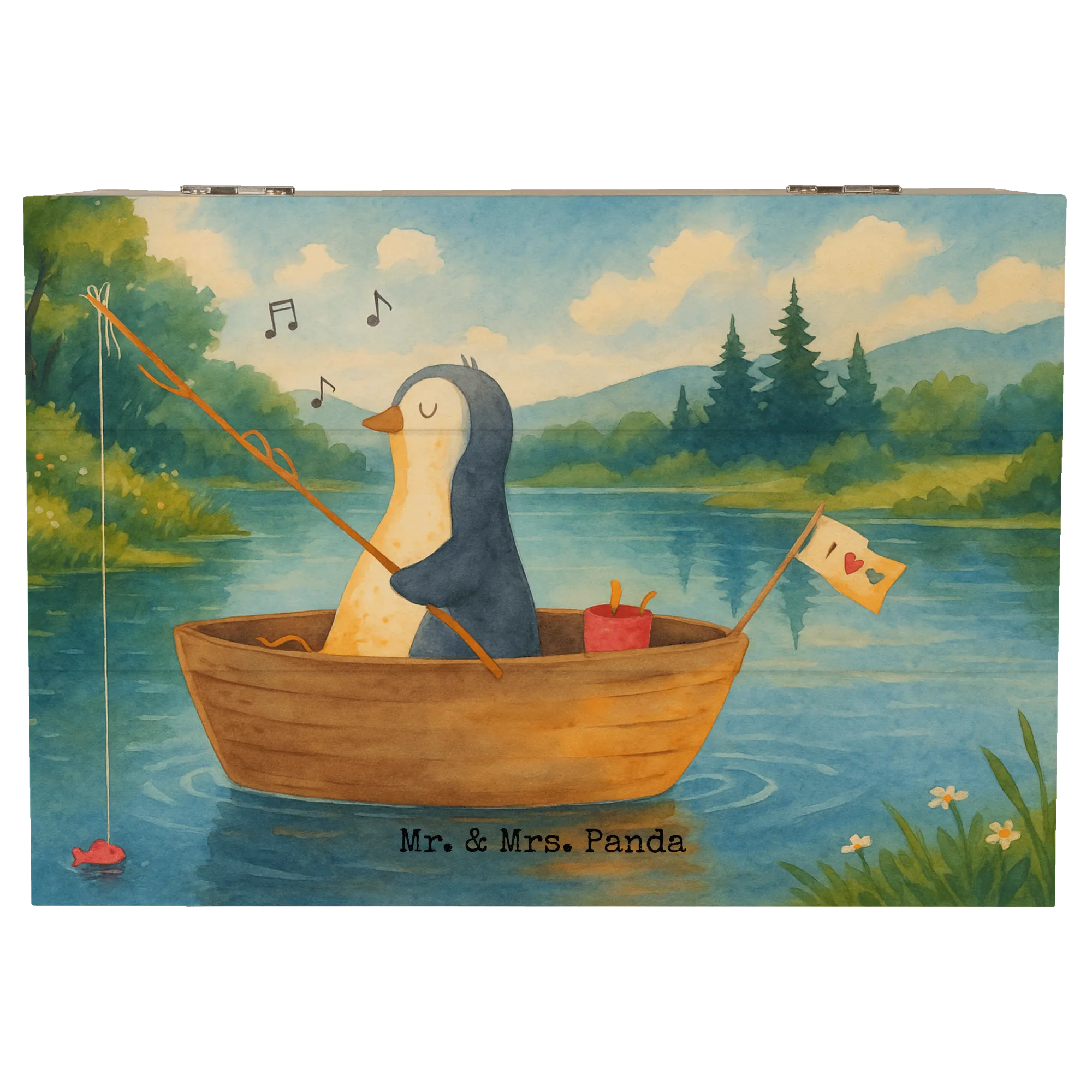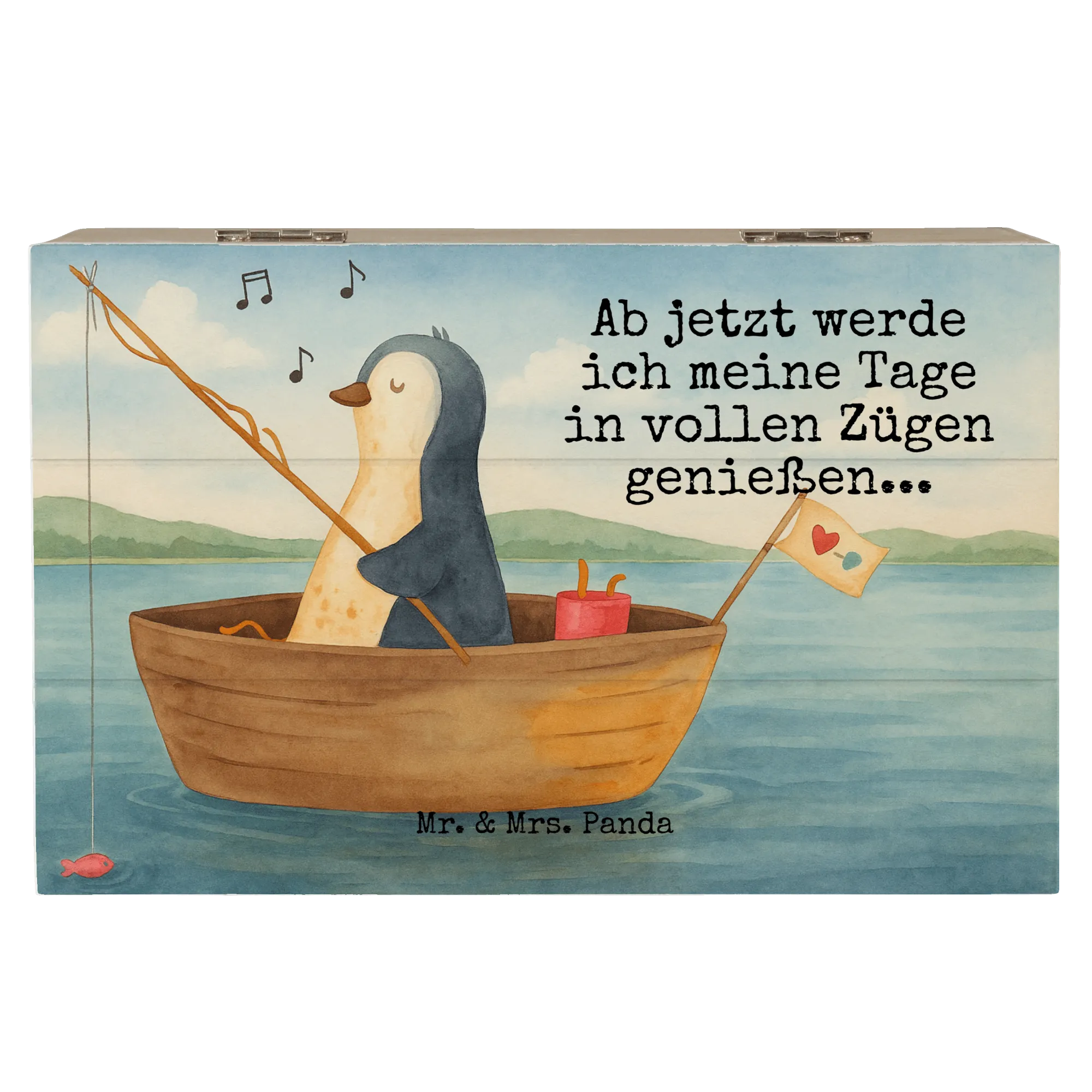 Holzkiste Pinguin Angelboot Design - 22 x 15 cm - mit Spruch