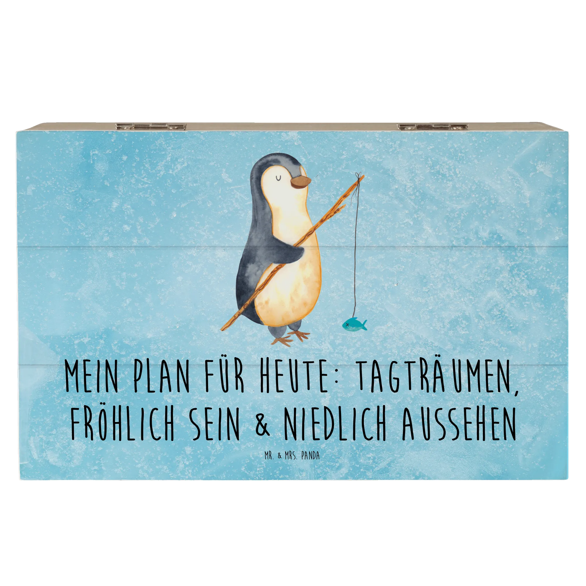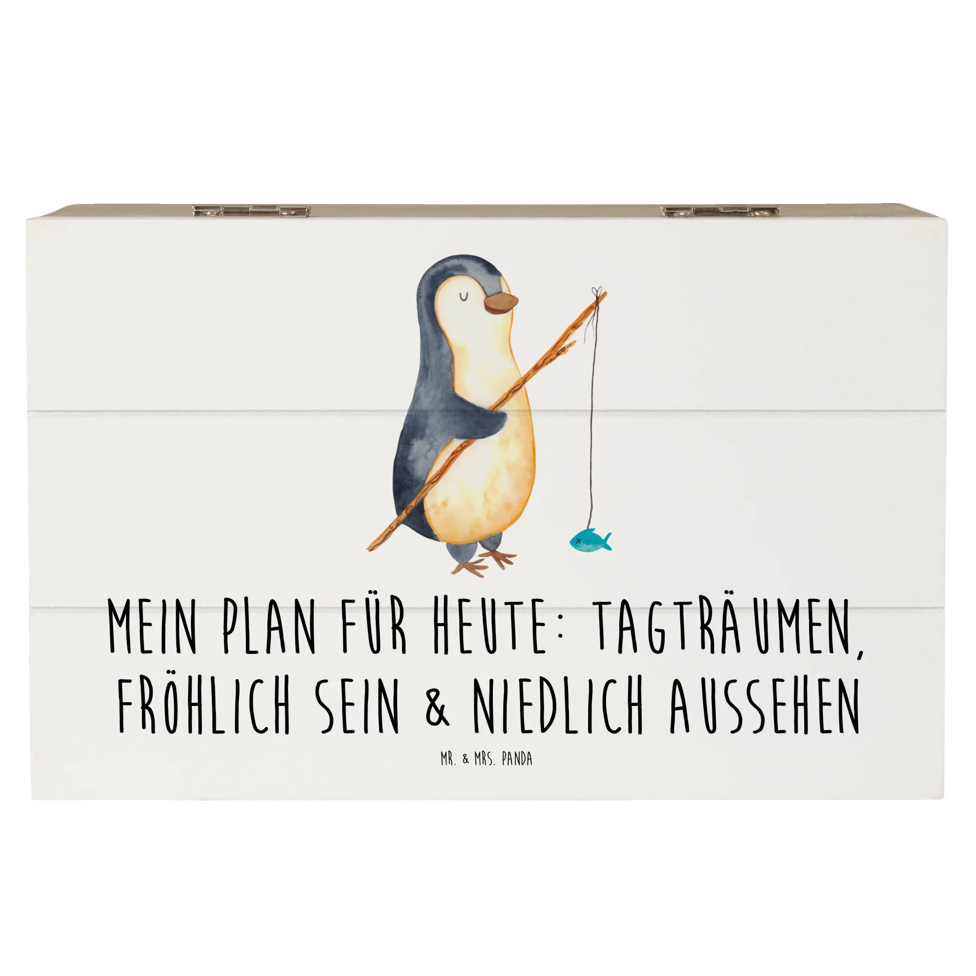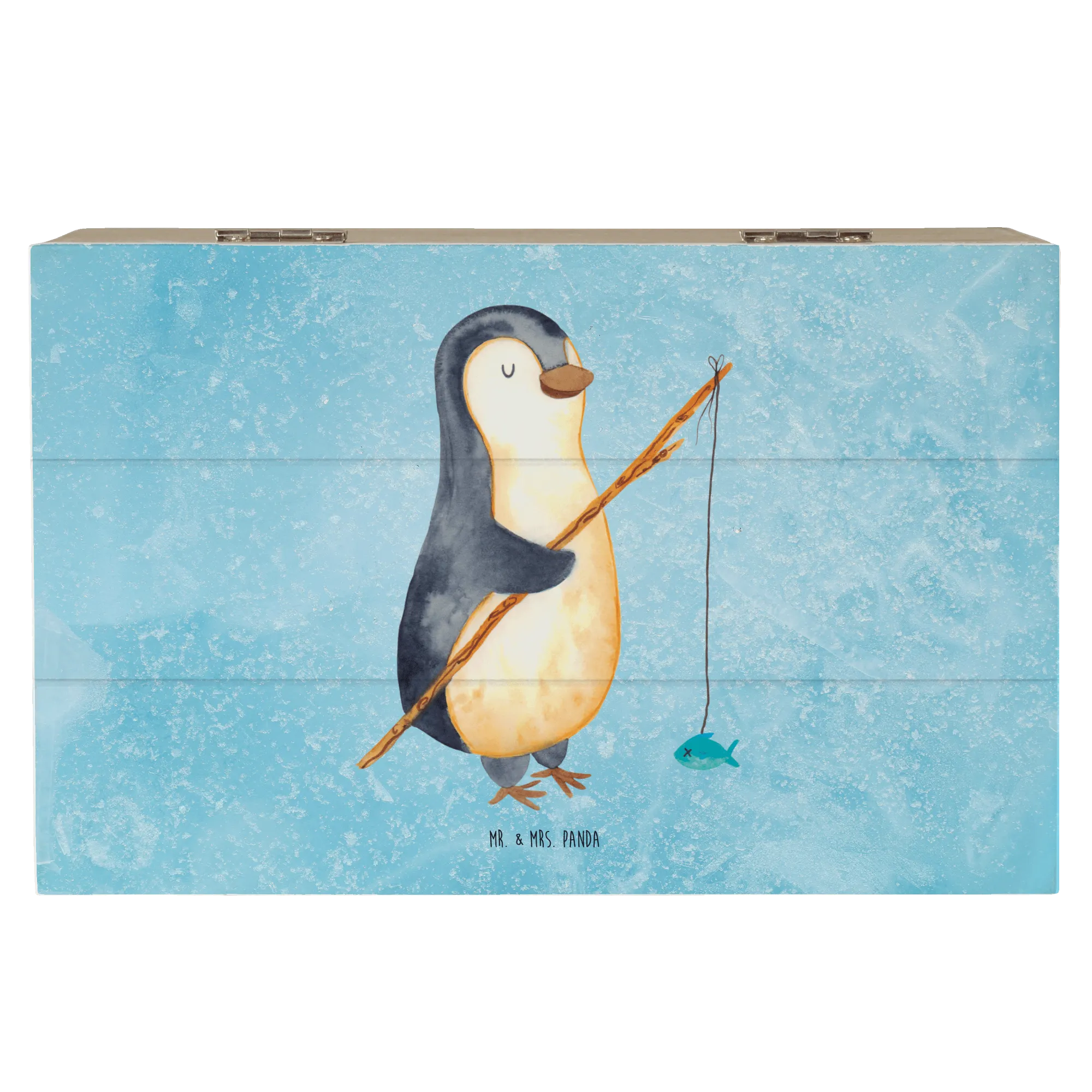 Du suchst nach dem perfekten Geschenk für einen Pinguinliebhaber oder jemanden, der gerne Zeit am Wasser verbringt? Unsere einzigartige Holzkiste mit dem fröhlichen Pinguin Angler Motiv aus der Mr. & Mrs. Panda Pinguin-Kollektion ist der ideale Begleiter dafür!